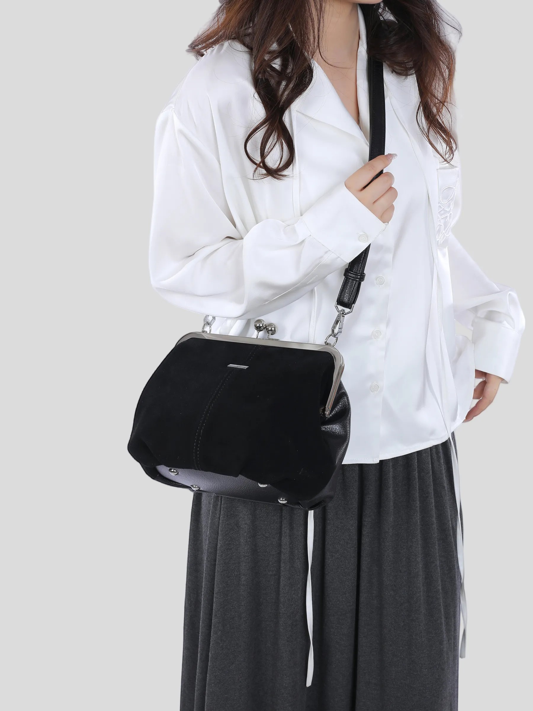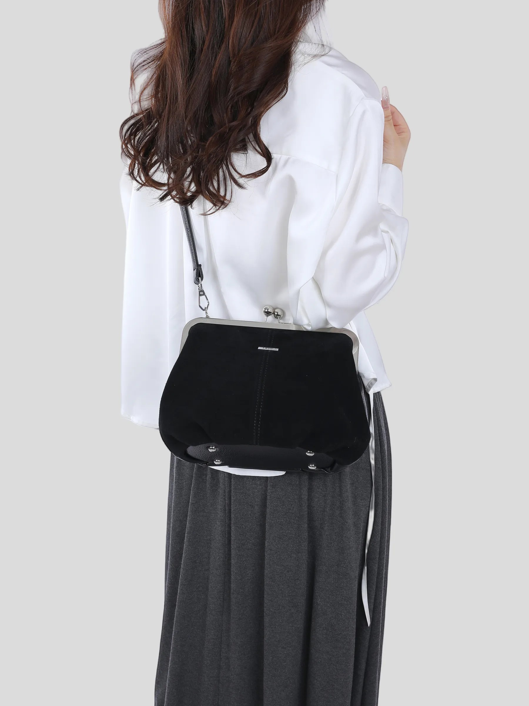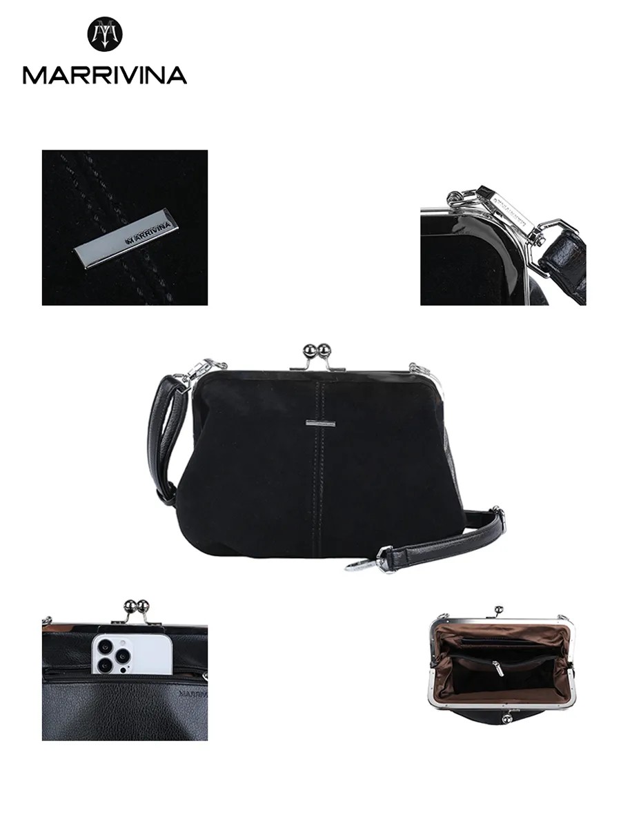 Сумка замшевая поцелуйчик через плечо кросс-боди арт. 7883-F-black