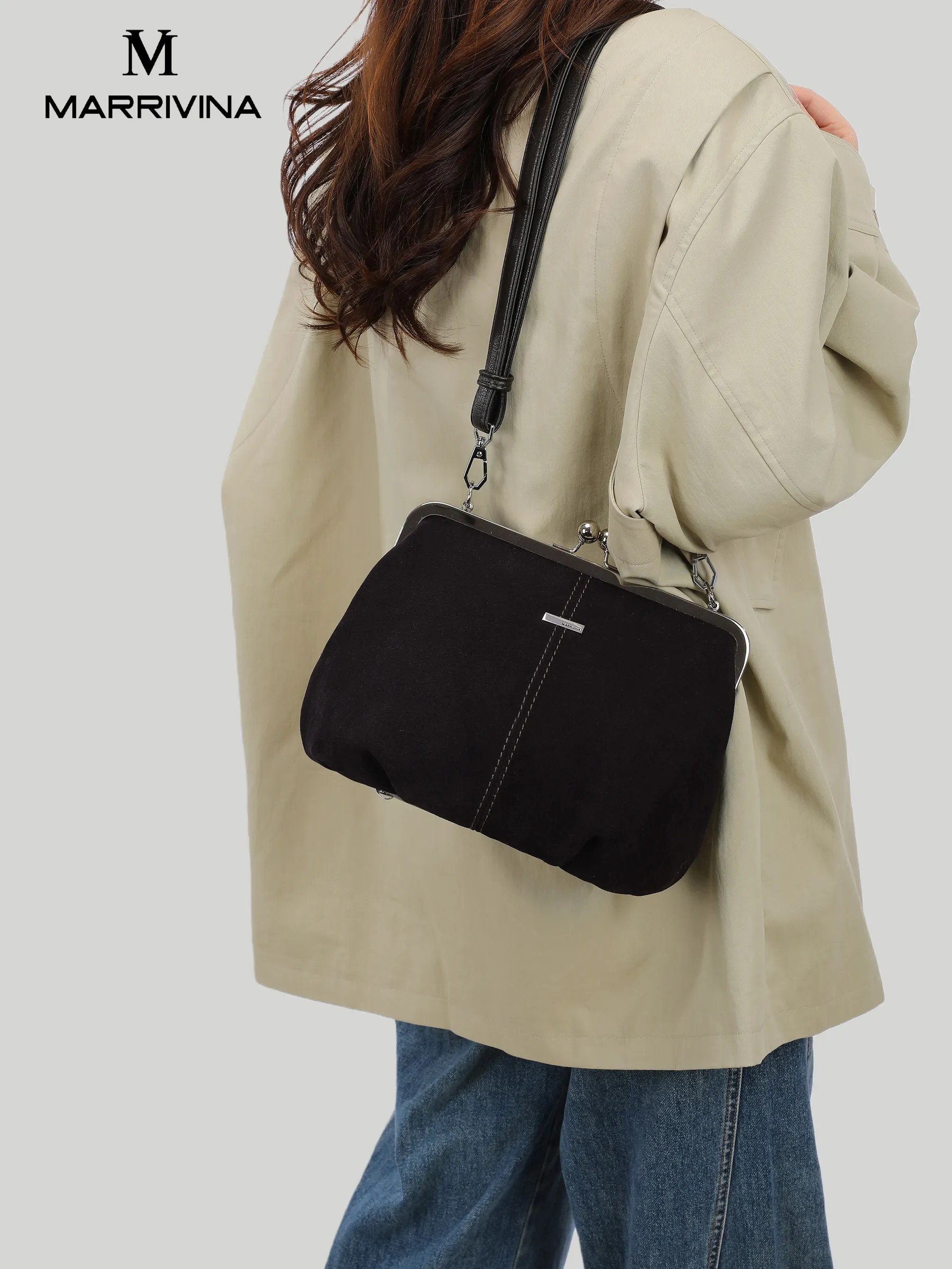 Сумка замшевая поцелуйчик через плечо кросс-боди арт. 7883-F-brown