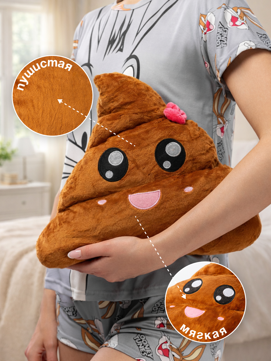 Подушка смешная выполнена в стиле какашки эмодзи, что добавляет ей индивидуальности. Она подходит для малышей или взрослых, которым важно расслабиться и быстро восстановить силы во время сна. Какаха — популярный образ среди молодежи, поэтому подушка пранк станет трендовым элементом в комнате подростка или геймера. Такой подарок другу на др прикольный легко станет частью ежедневной игры или даже элементом для турбо-отдыха после долгого дня за компьютером.