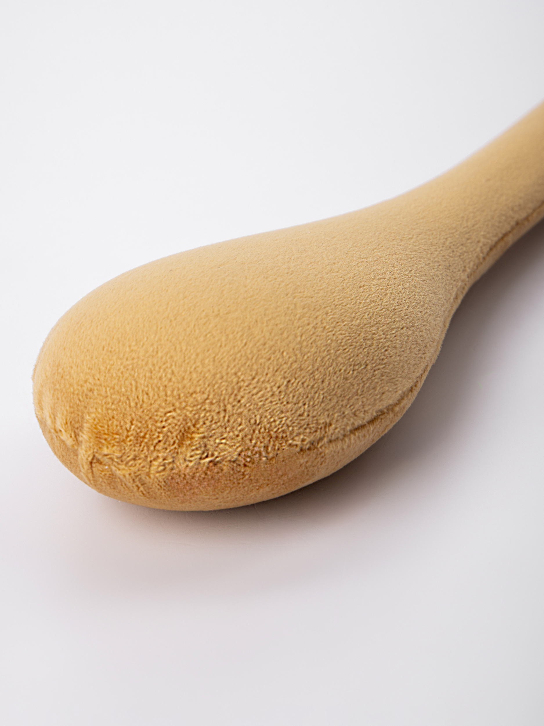 Ручной массажер выполнен в форме вытянутой палочки с утолщенным округлым концом, что делает его универсальным инструментом для точечного и профессионального воздействия на различные части тела. Поверхность обладает мягкой, приятной на ощупь текстурой, напоминающей велюр или замшу. Такой материал обеспечивает комфорт при использовании и не скользит в руке, позволяя проводить как бытовой, так и спортивный массаж в домашних условиях. Конструкция массажного предмета достаточно простая и надежная, без лишних деталей, что подчеркивает его практичность и долговечность. Массажная палка хорошо ложится в руку, благодаря чему подходит для мужчин и женщин, а также для взрослых любого возраста.