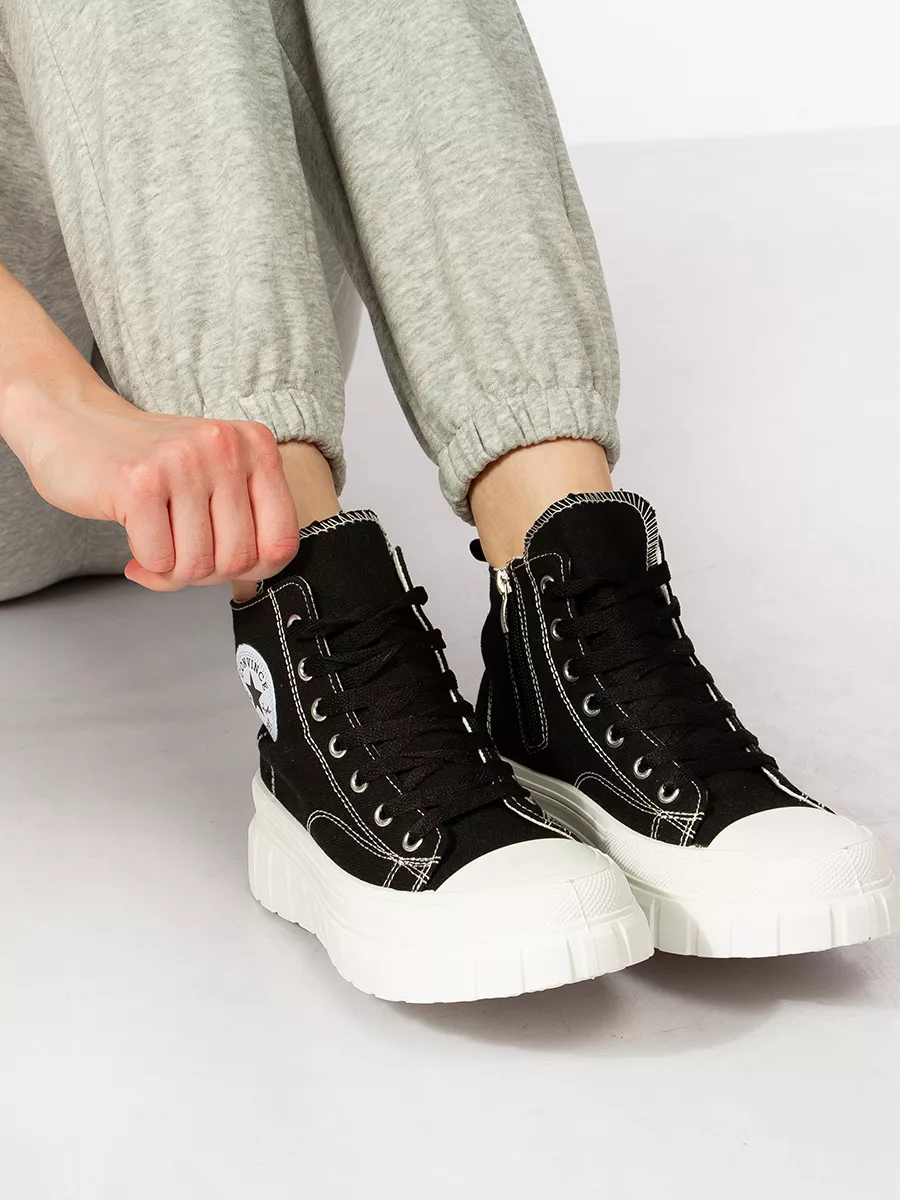 Женские кеды на высокой платформе — отличное решение для женского гардероба. Эти женские кеды подходит как для повседневного образа, так и для спортивного стиля. Благодаря текстильным материалам они обеспечивают легкость и комфорт во время носки. Такие демисезонные кеды подходят не только девушкам и девочкам, но также идеально вписываются в подростковый стиль. Высокая платформа добавляет несколько сантиметров роста без потери комфорта. Эти женские кроссовки могут стать прекрасным выбором для прогулок или посещения школы. Стильный дизайн позволяет сочетать их с различной одеждой от классических джинс до летних платьев, создавая неповторимый образ на каждый день. В то же время, привлекательный внешний вид делает их подходящими даже для офиса, если дресс-код позволяет элементы спортивного стиля. Шнурки позволяют регулировать степень фиксации кедов на ноге, обеспечивая удобство при длительной носке. Это особенно важно для людей, которые ведут активный образ жизни или занимаются физкультурой в зале. Летний характер модели делает её актуальной весной и ранней осенью, когда погода требует легкой обуви. Демисезонные кеды с высокой подошвой сочетают в себе эстетическую привлекательность и функциональность. Высокие женские кеды отлично подойдут также школьникам в подростковом возрасте благодаря устойчивости конструкции и современному дизайну. Подростковые кеды способны выдержать ритм городской жизни благодаря качественному исполнению каждой детали. Большая популярность этой обуви среди молодежи объясняется универсальностью её применения: от учебы до вечерних прогулок по городу или встречи с друзьями в кафе. Выбирая подобные модели, вы приобретаете не просто удобные базовые кеды для бега или физкультуры, но настоящий элемент стиля. Подошва обеспечивает отличное сцепление с любой поверхностью — будь то асфальтированные дорожки города или пол спортзала школы. Благодаря этому спортивная обувь безопасна и удобна во время любых активных занятий.