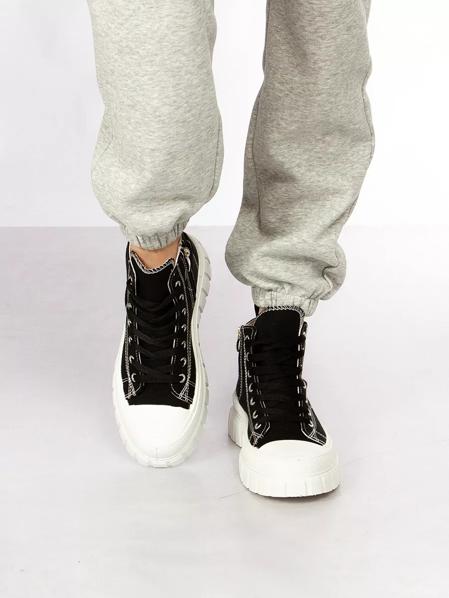 Женские кеды на высокой платформе — отличное решение для женского гардероба. Эти женские кеды подходит как для повседневного образа, так и для спортивного стиля. Благодаря текстильным материалам они обеспечивают легкость и комфорт во время носки. Такие демисезонные кеды подходят не только девушкам и девочкам, но также идеально вписываются в подростковый стиль. Высокая платформа добавляет несколько сантиметров роста без потери комфорта. Эти женские кроссовки могут стать прекрасным выбором для прогулок или посещения школы. Стильный дизайн позволяет сочетать их с различной одеждой от классических джинс до летних платьев, создавая неповторимый образ на каждый день. В то же время, привлекательный внешний вид делает их подходящими даже для офиса, если дресс-код позволяет элементы спортивного стиля. Шнурки позволяют регулировать степень фиксации кедов на ноге, обеспечивая удобство при длительной носке. Это особенно важно для людей, которые ведут активный образ жизни или занимаются физкультурой в зале. Летний характер модели делает её актуальной весной и ранней осенью, когда погода требует легкой обуви. Демисезонные кеды с высокой подошвой сочетают в себе эстетическую привлекательность и функциональность. Высокие женские кеды отлично подойдут также школьникам в подростковом возрасте благодаря устойчивости конструкции и современному дизайну. Подростковые кеды способны выдержать ритм городской жизни благодаря качественному исполнению каждой детали. Большая популярность этой обуви среди молодежи объясняется универсальностью её применения: от учебы до вечерних прогулок по городу или встречи с друзьями в кафе. Выбирая подобные модели, вы приобретаете не просто удобные базовые кеды для бега или физкультуры, но настоящий элемент стиля. Подошва обеспечивает отличное сцепление с любой поверхностью — будь то асфальтированные дорожки города или пол спортзала школы. Благодаря этому спортивная обувь безопасна и удобна во время любых активных занятий.