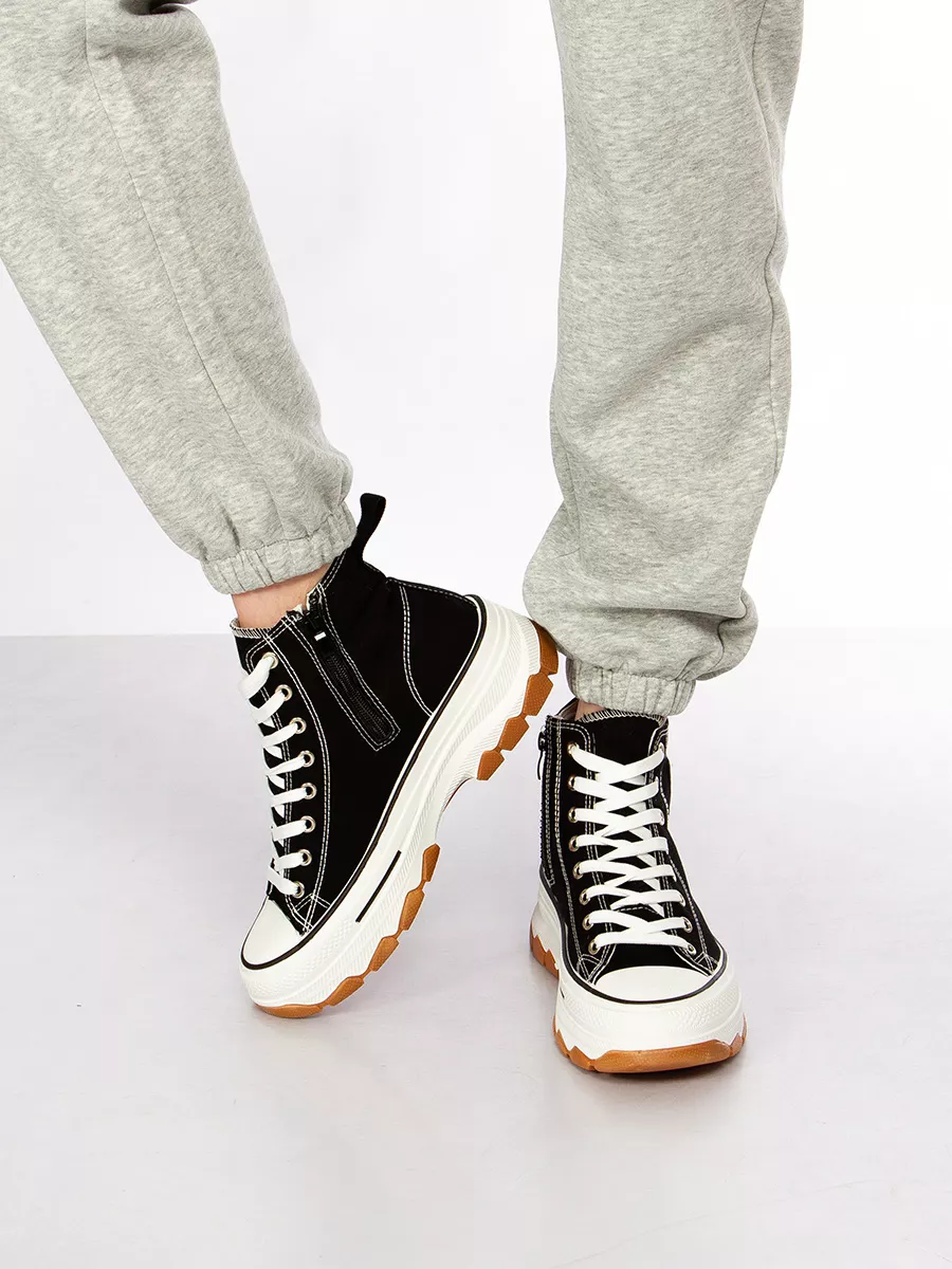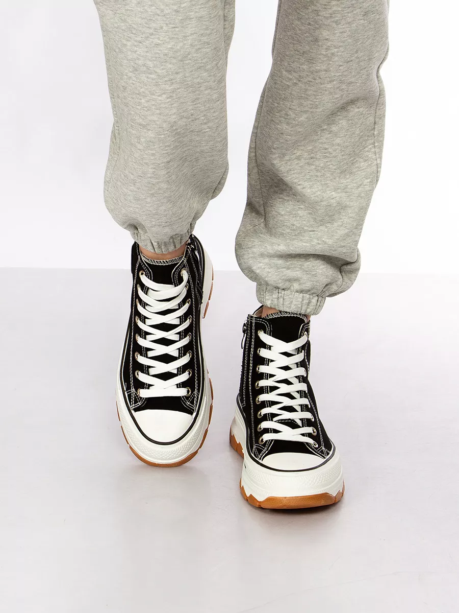 Женские кеды на высокой платформе — отличное решение для женского гардероба. Эти женские кеды подходит как для повседневного образа, так и для спортивного стиля. Благодаря текстильным материалам они обеспечивают легкость и комфорт во время носки. Такие демисезонные кеды подходят не только девушкам и девочкам, но также идеально вписываются в подростковый стиль. Высокая платформа добавляет несколько сантиметров роста без потери комфорта. Эти женские кроссовки могут стать прекрасным выбором для прогулок или посещения школы. Стильный дизайн позволяет сочетать их с различной одеждой от классических джинс до летних платьев, создавая неповторимый образ на каждый день. В то же время, привлекательный внешний вид делает их подходящими даже для офиса, если дресс-код позволяет элементы спортивного стиля. Шнурки позволяют регулировать степень фиксации кедов на ноге, обеспечивая удобство при длительной носке. Это особенно важно для людей, которые ведут активный образ жизни или занимаются физкультурой в зале. Летний характер модели делает её актуальной весной и ранней осенью, когда погода требует легкой обуви. Демисезонные кеды с высокой подошвой сочетают в себе эстетическую привлекательность и функциональность. Высокие женские кеды отлично подойдут также школьникам в подростковом возрасте благодаря устойчивости конструкции и современному дизайну. Подростковые кеды способны выдержать ритм городской жизни благодаря качественному исполнению каждой детали. Большая популярность этой обуви среди молодежи объясняется универсальностью её применения: от учебы до вечерних прогулок по городу или встречи с друзьями в кафе. Выбирая подобные модели, вы приобретаете не просто удобные базовые кеды для бега или физкультуры, но настоящий элемент стиля. Подошва обеспечивает отличное сцепление с любой поверхностью — будь то асфальтированные дорожки города или пол спортзала школы. Благодаря этому спортивная обувь безопасна и удобна во время любых активных занятий.