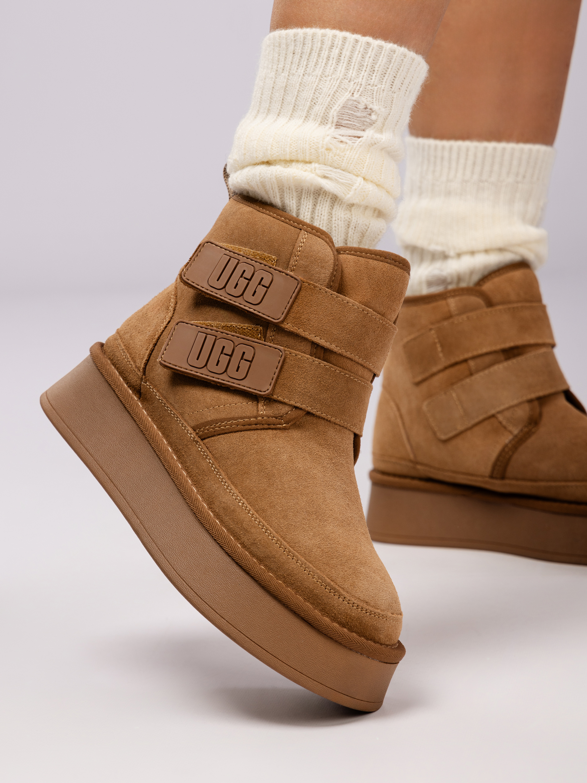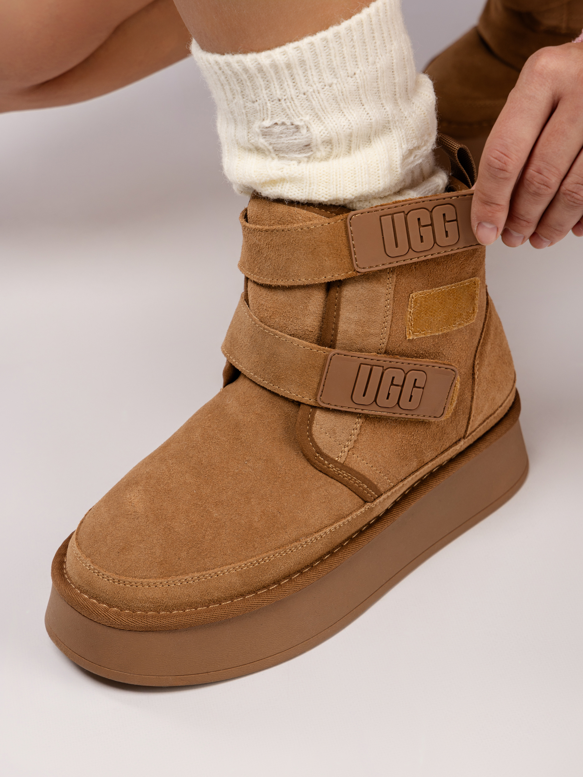 Дизайн и функциональность сочетаются в нейтральной цветовой гамме, которая легко комбинируется с разными образами. Угги с липучками идеально подходят к брюкам, джинсам и леггинсам, сохраняя стильный вид в городских условиях.