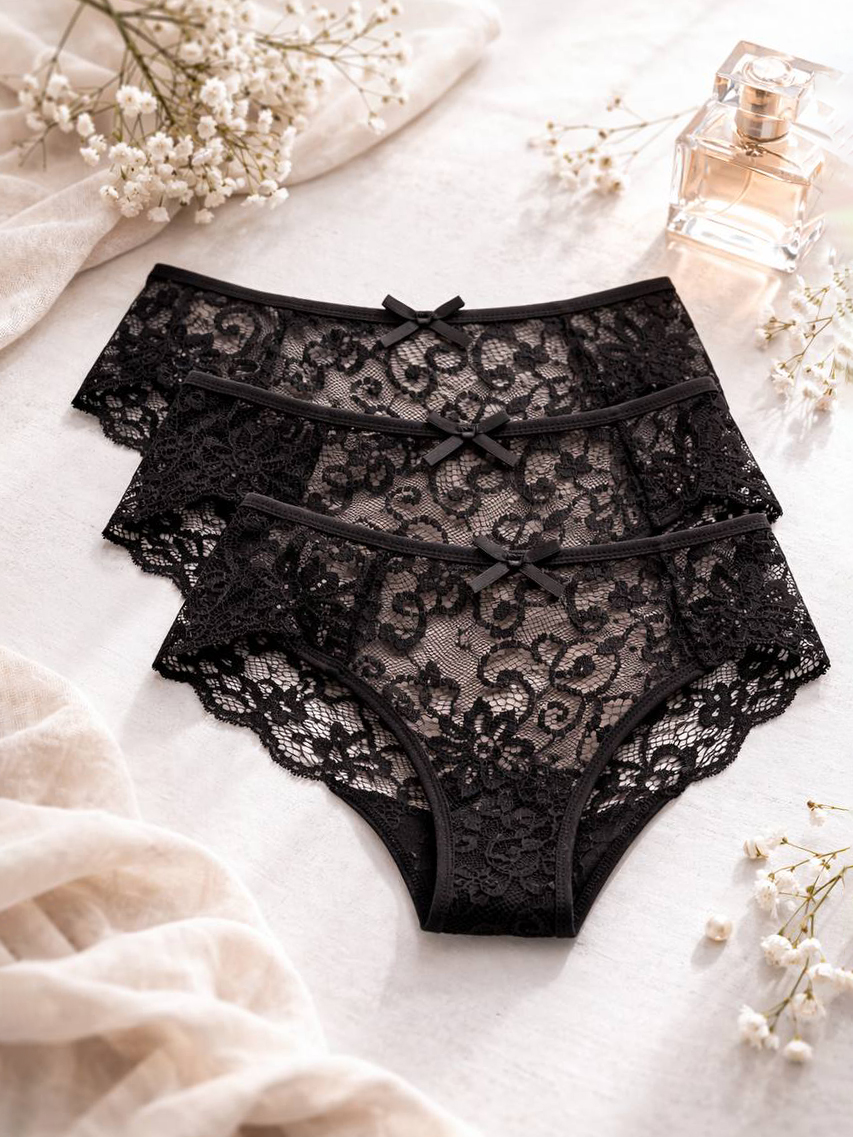 Женские трусы слипы набор 3 шт обеспечат комфорт и элегантность на протяжении всего дня! Кружевной дизайн женских трусиков добавляет изысканности и стиля. Слипы трусы кружевные подходят как для взрослой женщины, так для девушки или подростка, обеспечивая хороший баланс между стилем и удобством. Высокая талия придаёт эффектные очертания фигуре. Мягкая сетка способствует хорошей вентиляции, а кружево дарит ощущение нежности на коже. Шов выполнен аккуратно, что предотвращает натирание и обеспечивает долговечность. Эти кружевные слипы - очень стильный выбор для каждой женщины. Трусы женские кружевные подходят для активного образа жизни или романтических вечеров. Кружевные слипы женские идеально подходят под одежду любого типа, не создавая лишних линий под одеждой. Каждая деталь продумана до мелочей, чтобы вы чувствовали себя привлекательно и уверенно каждый день. Трусы женские набор подходят не только для повседневной носки, но и для специальных случаев. Покупая такие кружевные трусики, вы делаете акцент на качестве и эстетике своего нижнего белья. Это женское нижнее белье станет важной частью вашего гардероба. Даже в самые насыщенные дни вы будете чувствовать себя прекрасно благодаря мягким материалам. Сочетание сетки и кружева создает привлекательный внешний вид. Позвольте себе насладиться красотой каждодневных моментов в таких изделиях. Эти кружевные трусы станет вашим верным спутником на каждый день! Качественное кружево обрамляет ягодицы, создавая нежный контраст с яркими нарядами. Выбирайте эту модель смело — она станет основой вашего гардероба нижнего белья!