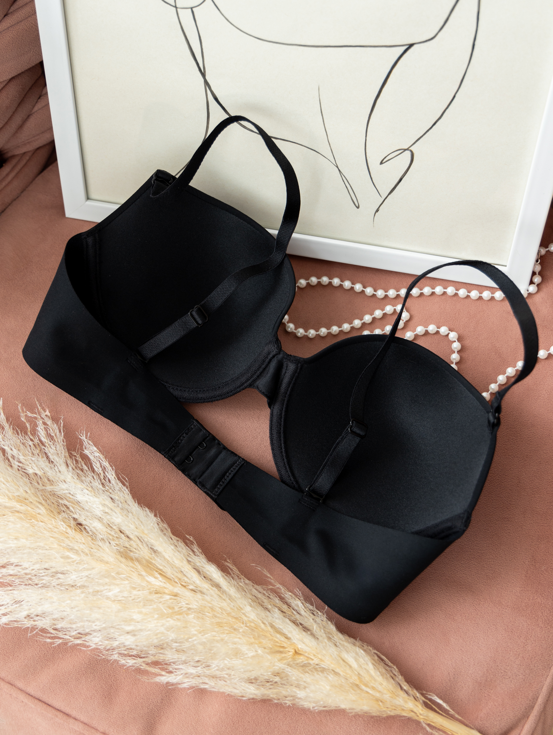 Бретели регулируемые, что позволяет индивидуально подобрать посадку по размеру и объему, обеспечивая плотное прилегание к телу и возможность корректировать степень поддержки под фигуру. Спинка выполнена с застежкой, что делает лифчик без пушап удобным для быстрого снятия и надевания, а также для регулировки плотности прилегания.