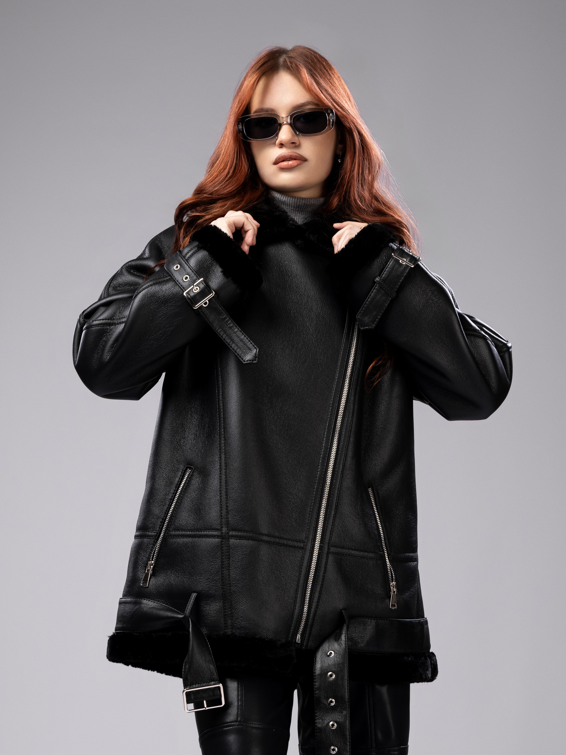 Женская зимняя дубленка — отличное решение для холодного сезона, сочетающее стиль, комфорт и практичность. Модель выполнена из высококачественного экологичного кожзаменителя с эффектом натуральной кожи, что придает ей солидный и современный вид, напоминающий классическую авиаторскую шубу. Внутри дубленки для женщины используется утеплитель из мягкого и теплого экомеха, который обеспечивает надежную защиту от мороза и не теряет своих теплоизоляционных свойств даже при низких температурах.
