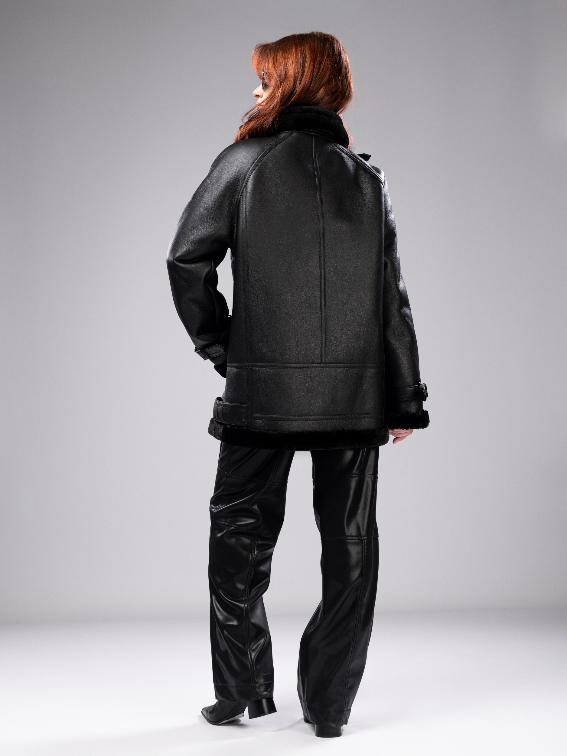 Дубленка зимняя укороченная авиатор арт. 21305-B-Black-WTB1
