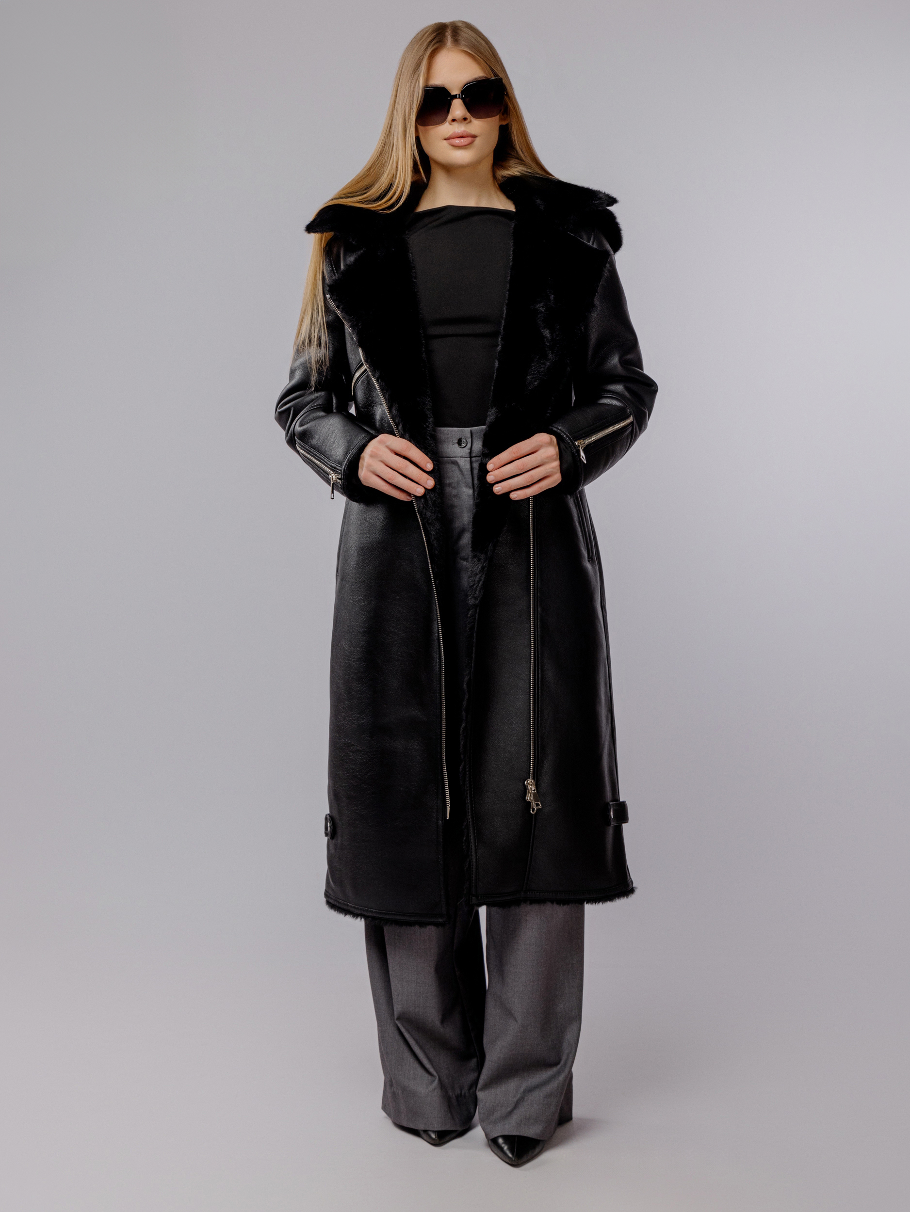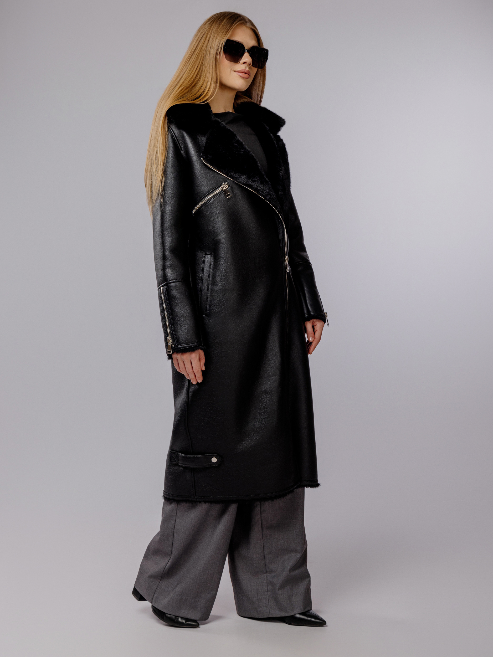 Женская зимняя дубленка — универсальное решение для холодной погоды, объединяющее элегантность, удобство и функциональность. Эта модель выполнена из высококачественной экокожи, что придает ей современный и солидный вид.