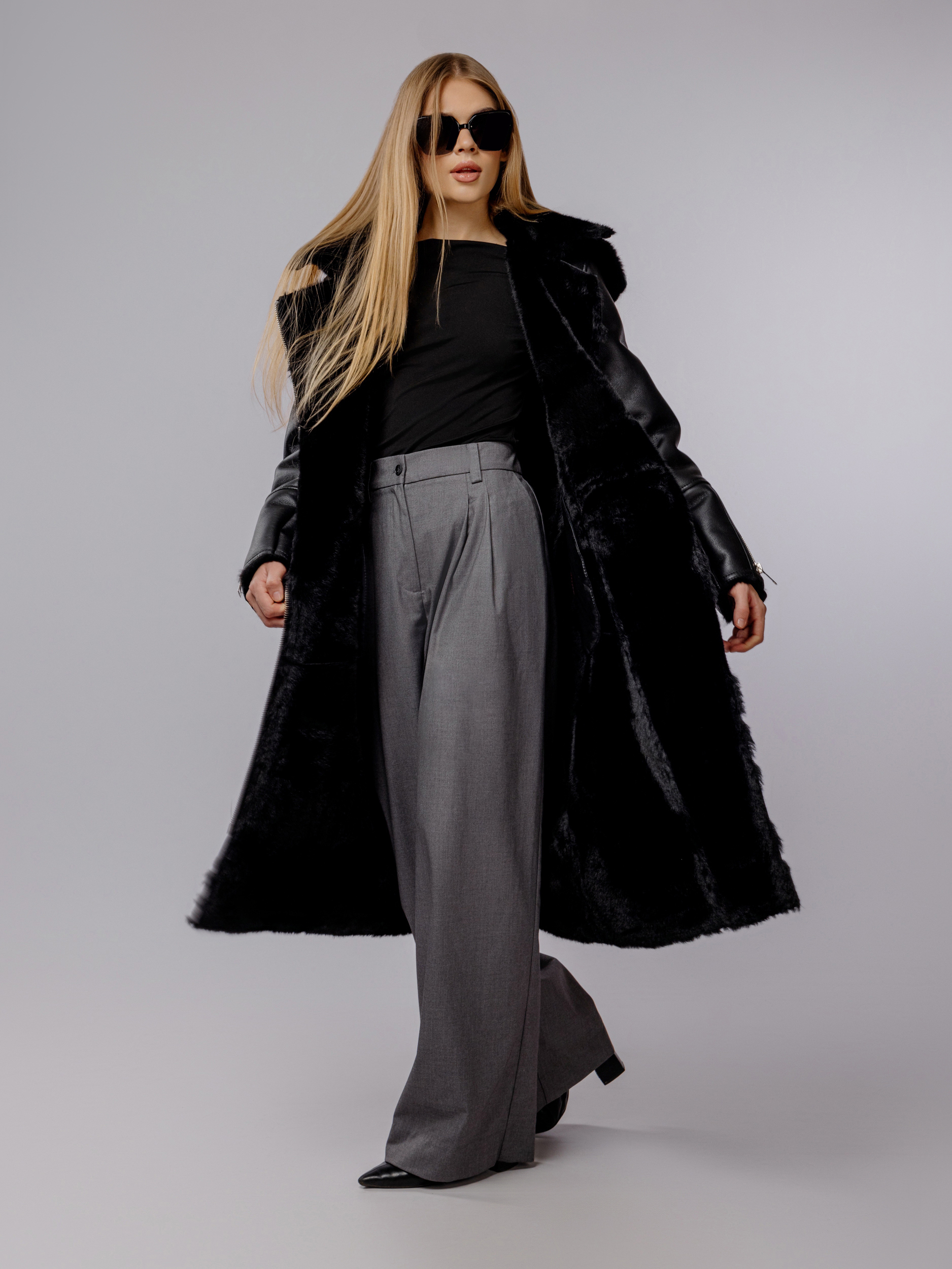 Дубленка с воротником надежно защищает шею и зону декольте от ветра и холода, повышая комфорт в сильные морозы. Минимализм в деталях делает эту женскую удлиненную дубленку универсальной, ее легко сочетать с различной одеждой и аксессуарами, от кэжуал до более элегантных и деловых стилей.