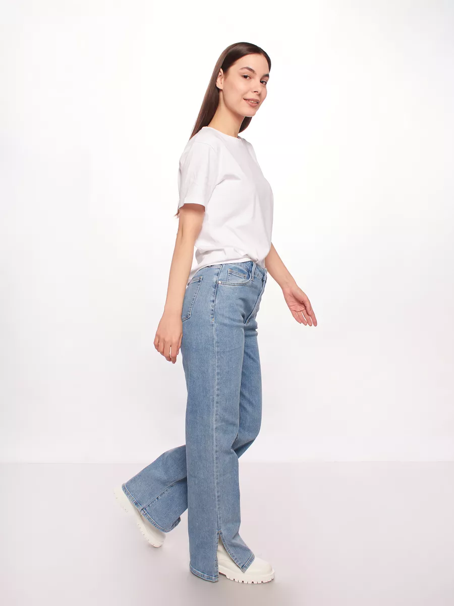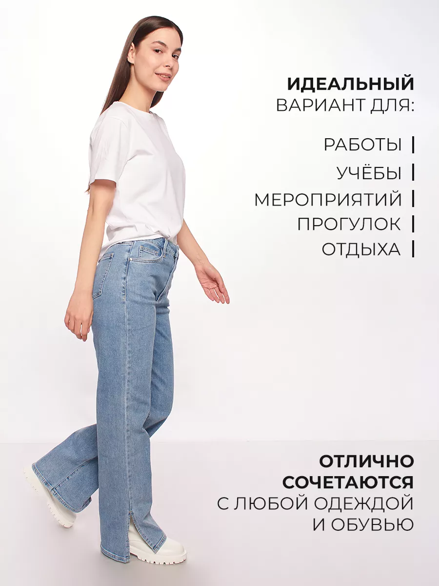 Классические женские джинсы клеш с высокой посадкой базовые. Плотные демисезонные брюки на лето. Трендовые джинсы клеш на осень подойдут для девочек - подростков, для девушек. Эластичные джинсы в офис, школу для женщин любой комплекции. Их можно использовать как уличную, рабочую и домашнюю вещь на теплый осенний, летний сезон. Джинсы женские широкие с высокой посадкой из высококачественных материалов, обеспечивающих долговечность отлично подходят на прогулку, в путешествие. Прямые классические женские джинсы с высокой посадкой станут незаменимой вещью в повседневном базовом гардеробе. Стильные джинсы женские подойдут к любому стилю одежды. Завышенные джинсы клеш женские с идеальной посадкой на талии имеют застежку на поясе в виде пуговицы и молнии. Джинсы женские широкие с боковыми карманами могут носить девочки - подростки, молодые девушки. Модель клеш имеет прорезные карманы спереди, накладные сзади. Благодаря своей высокой посадке, джинсы клеш отлично подтягивают и корректируют линию талии и бедер. Делают образ более женственным и классно смотрятся на женщинах с разной комплекцией, покупают также взрослые женщины и будущие мамы.