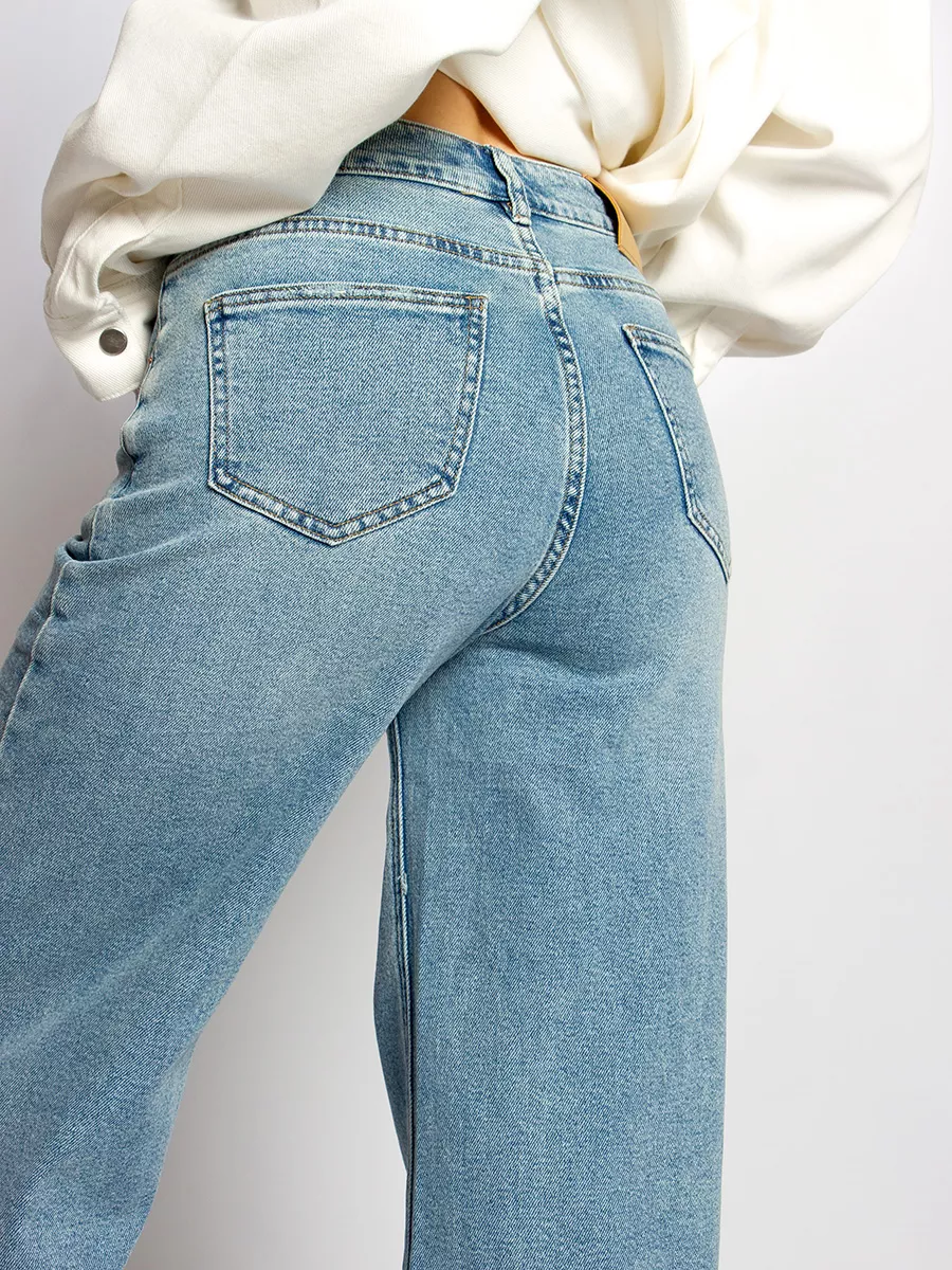Широкие классические женские джинсы с высокой посадкой базовые. Плотные демисезонные брюки на лето. Трендовые широкие джинсы на осень подойдут для девочек - подростков, для девушек. Эластичные джинсы в офис, школу для женщин любой комплекции. Их можно использовать как уличную, рабочую и домашнюю вещь на теплый осенний, летний сезон. Джинсы женские широкие с высокой посадкой из высококачественных материалов, обеспечивающих долговечность отлично подходят на прогулку, в путешествие. Прямые классические женские джинсы с высокой посадкой станут незаменимой вещью в повседневном базовом гардеробе. Стильные джинсы женские палаццо подойдут к любому стилю одежды. Завышенные джинсы трубы женские с идеальной посадкой на талии имеют завязки на поясе, джинсы на резинке. Джинсы женские широкие с боковыми карманами могут носить девочки - подростки, молодые девушки. Модель имеет прорезные карманы спереди, накладные сзади. Благодаря своей высокой посадке, джинсы прямые отлично подтягивают и корректируют линию талии и бедер. Делают образ более женственным и классно смотрятся на женщинах с разной комплекцией, покупают также взрослые женщины и будущие мамы.