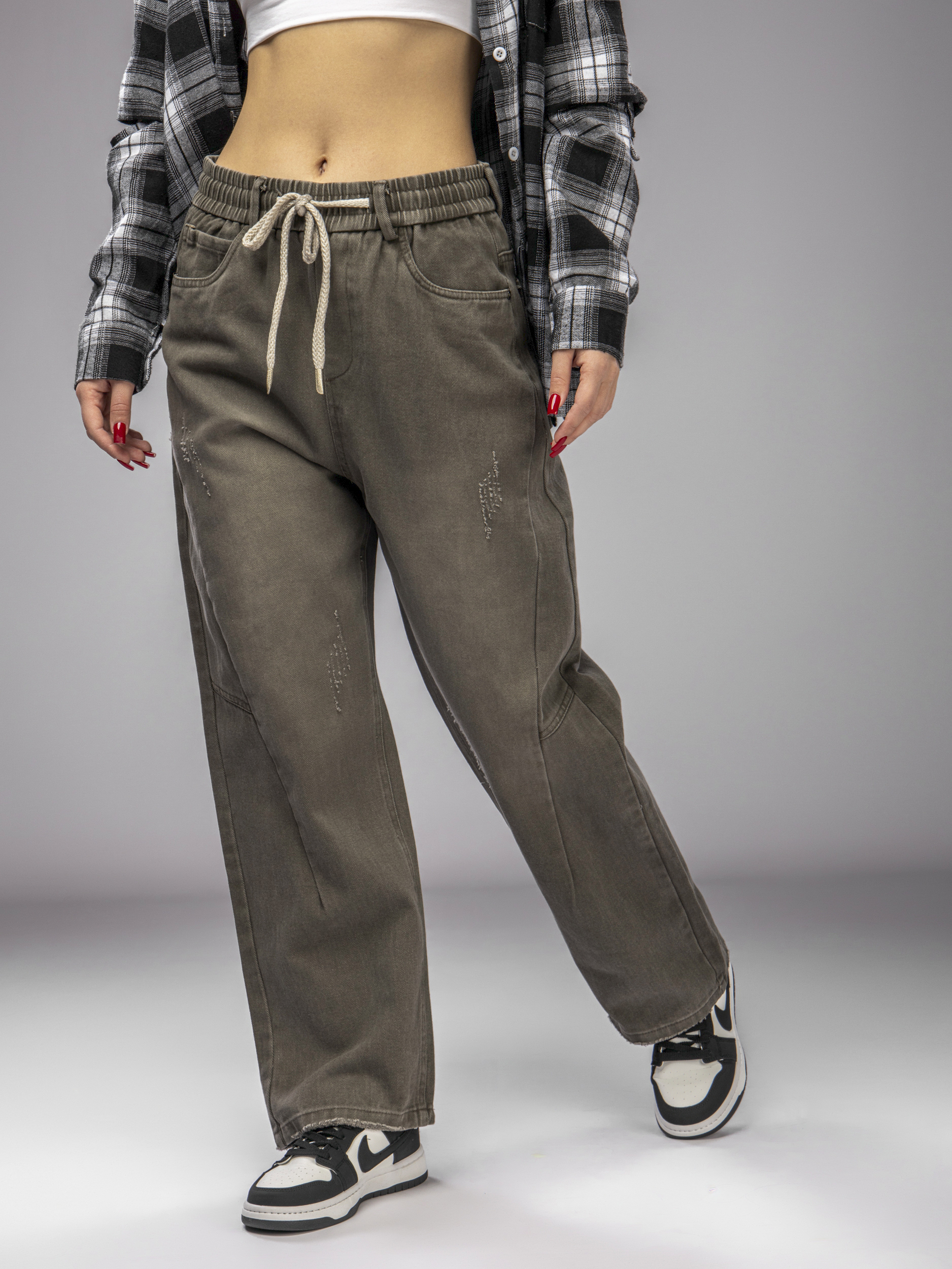Такие джинсы бананы женские подходят для демисезонного и летнего гардероба, прекрасно сочетаются с разной одеждой. Идеальный вариант для тех, кто ищет универсальные джинсы на резинке женские для повседневного использования. Благодаря мягкой ткани и широкому крою, джинсы мом женские не сковывают движения и подходят для активного образа жизни. Передние карманы удобны для хранения мелочей, а резинка на поясе с завязками обеспечивает легкую регулировку объема. Это делает джинсы женские широкие особенно удобными для ежедневной носки и позволяет подобрать оптимальный размер.