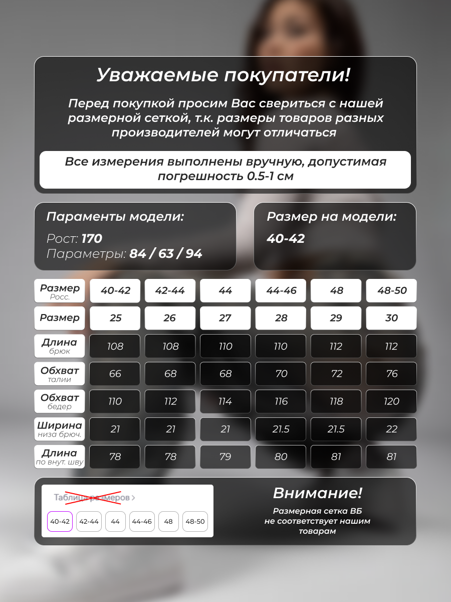 Параметры модели на фото (ОГ-ОТ-ОБ)