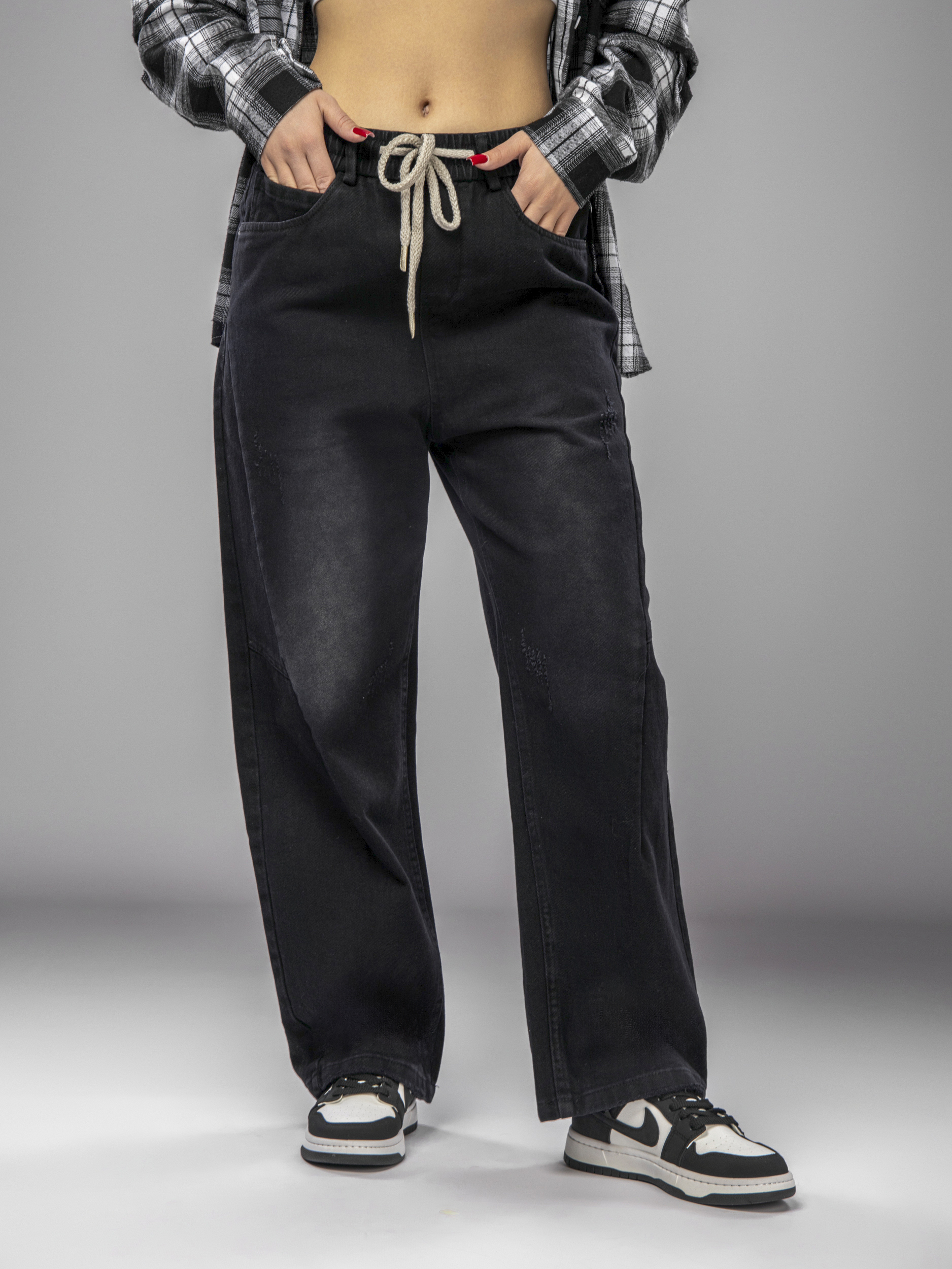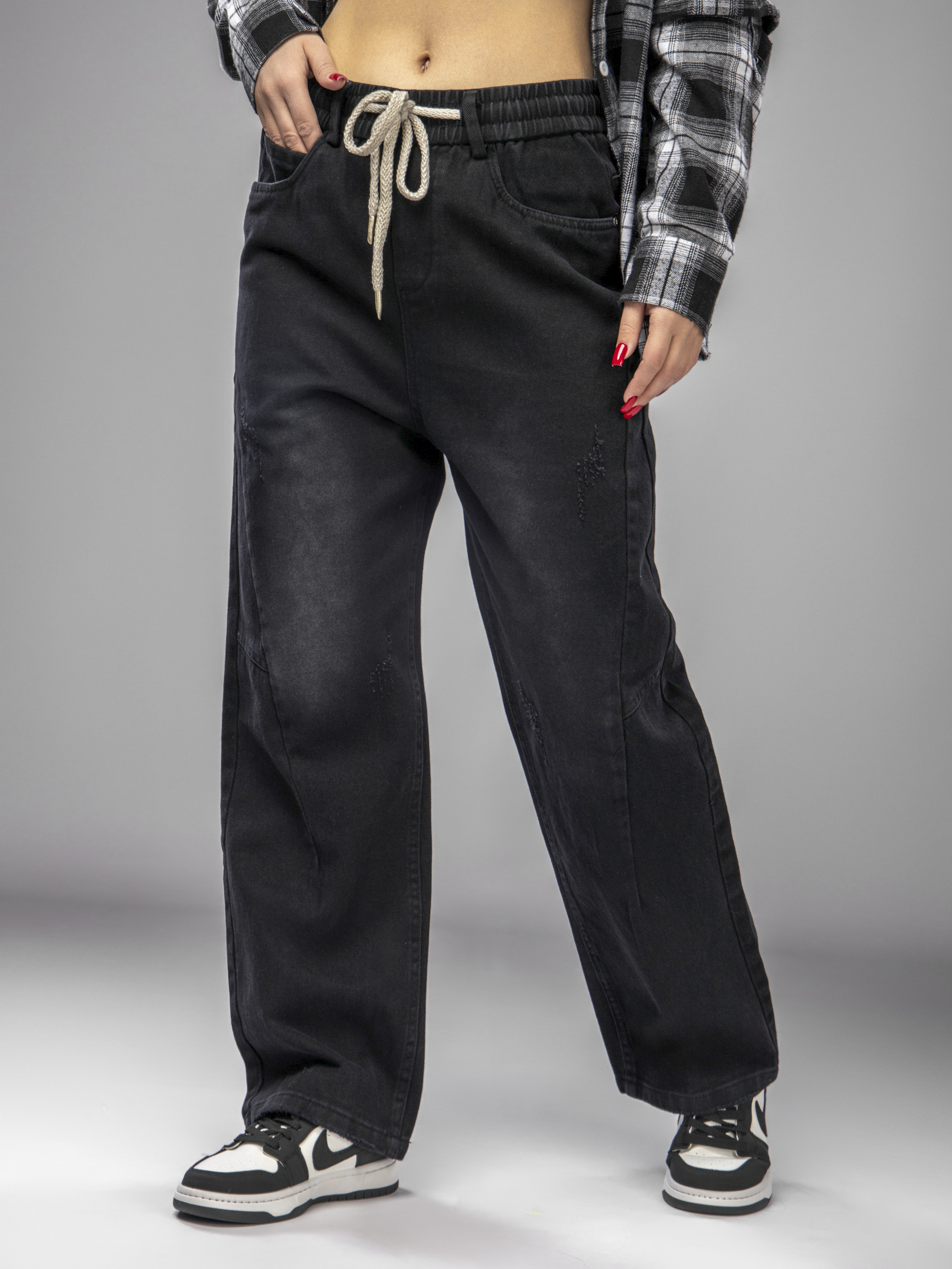 Такие джинсы бананы женские подходят для демисезонного и летнего гардероба, прекрасно сочетаются с разной одеждой. Идеальный вариант для тех, кто ищет универсальные джинсы на резинке женские для повседневного использования. Благодаря мягкой ткани и широкому крою, джинсы мом женские не сковывают движения и подходят для активного образа жизни. Передние карманы удобны для хранения мелочей, а резинка на поясе с завязками обеспечивает легкую регулировку объема. Это делает джинсы женские широкие особенно удобными для ежедневной носки и позволяет подобрать оптимальный размер.