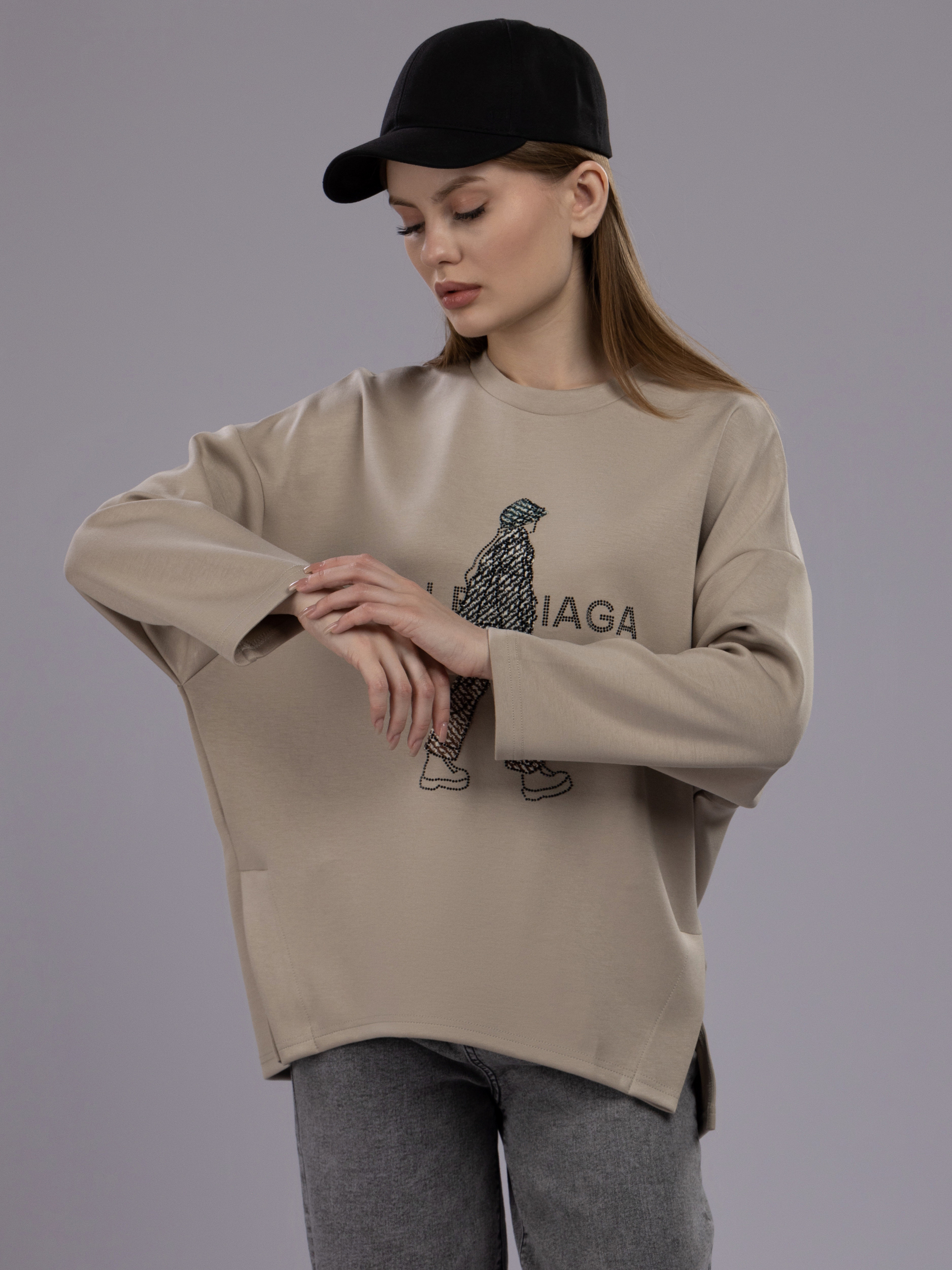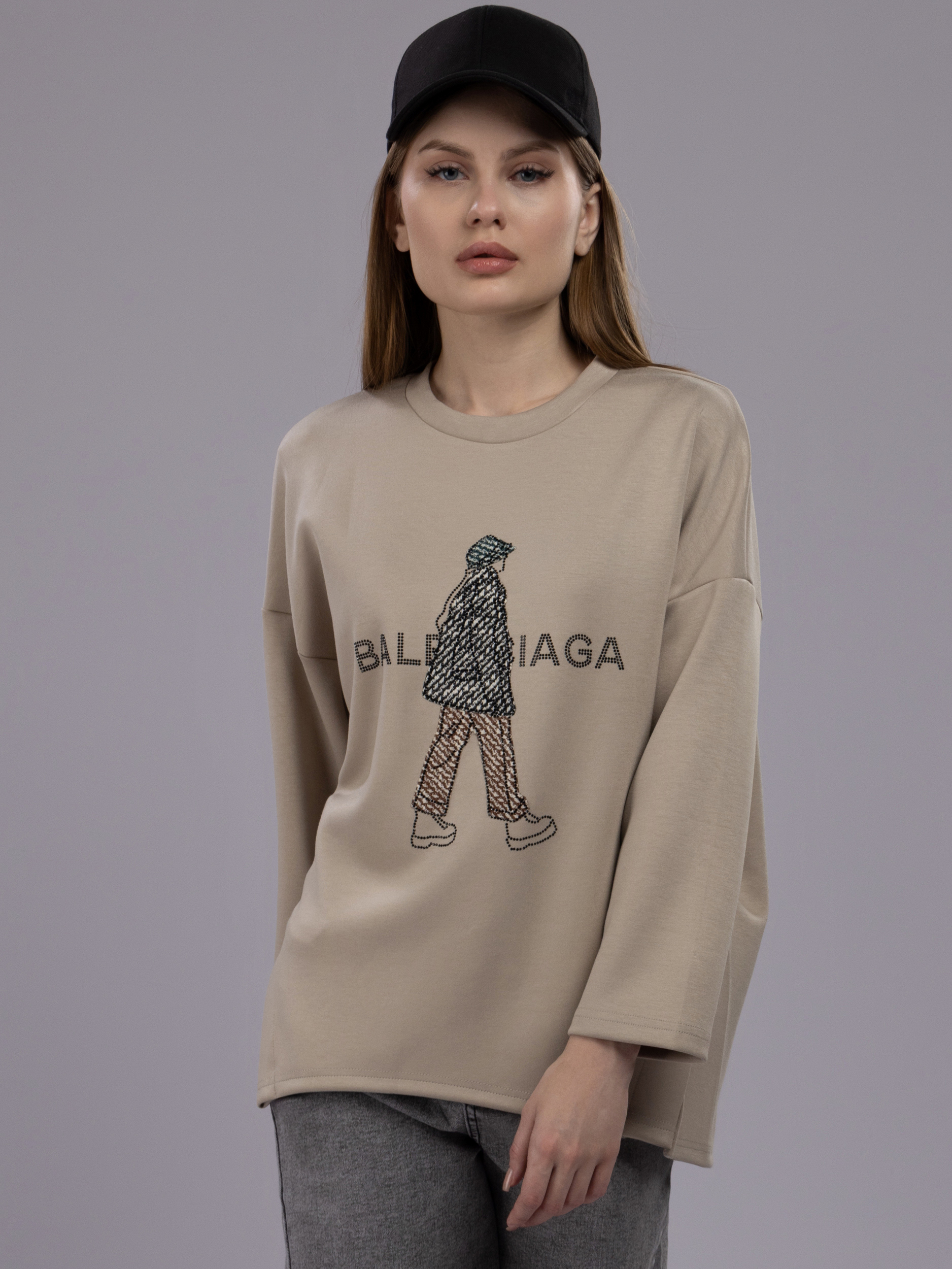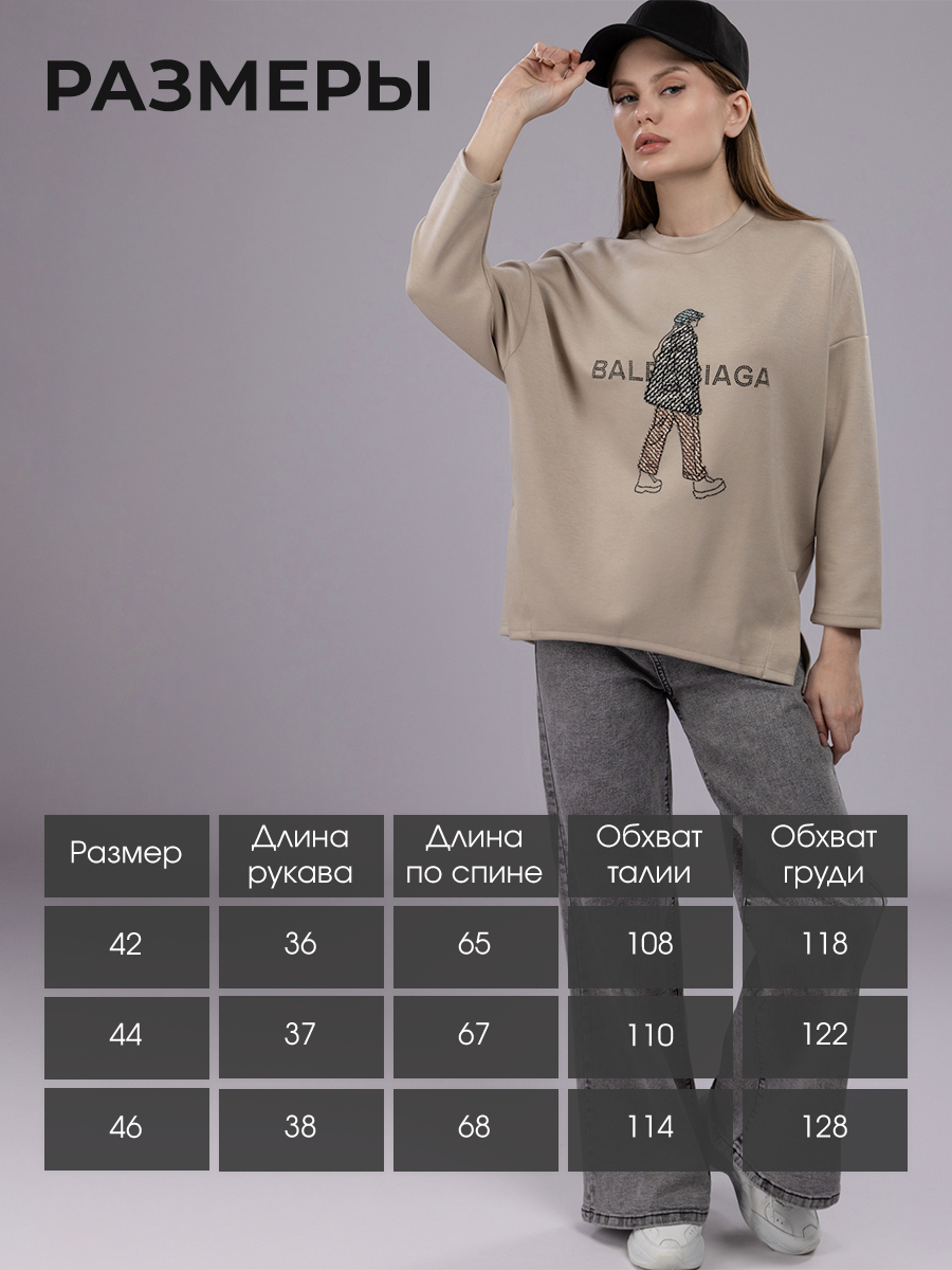 Свитшот со стразами оверсайз арт. 032-12-L-Khaki-SWA1