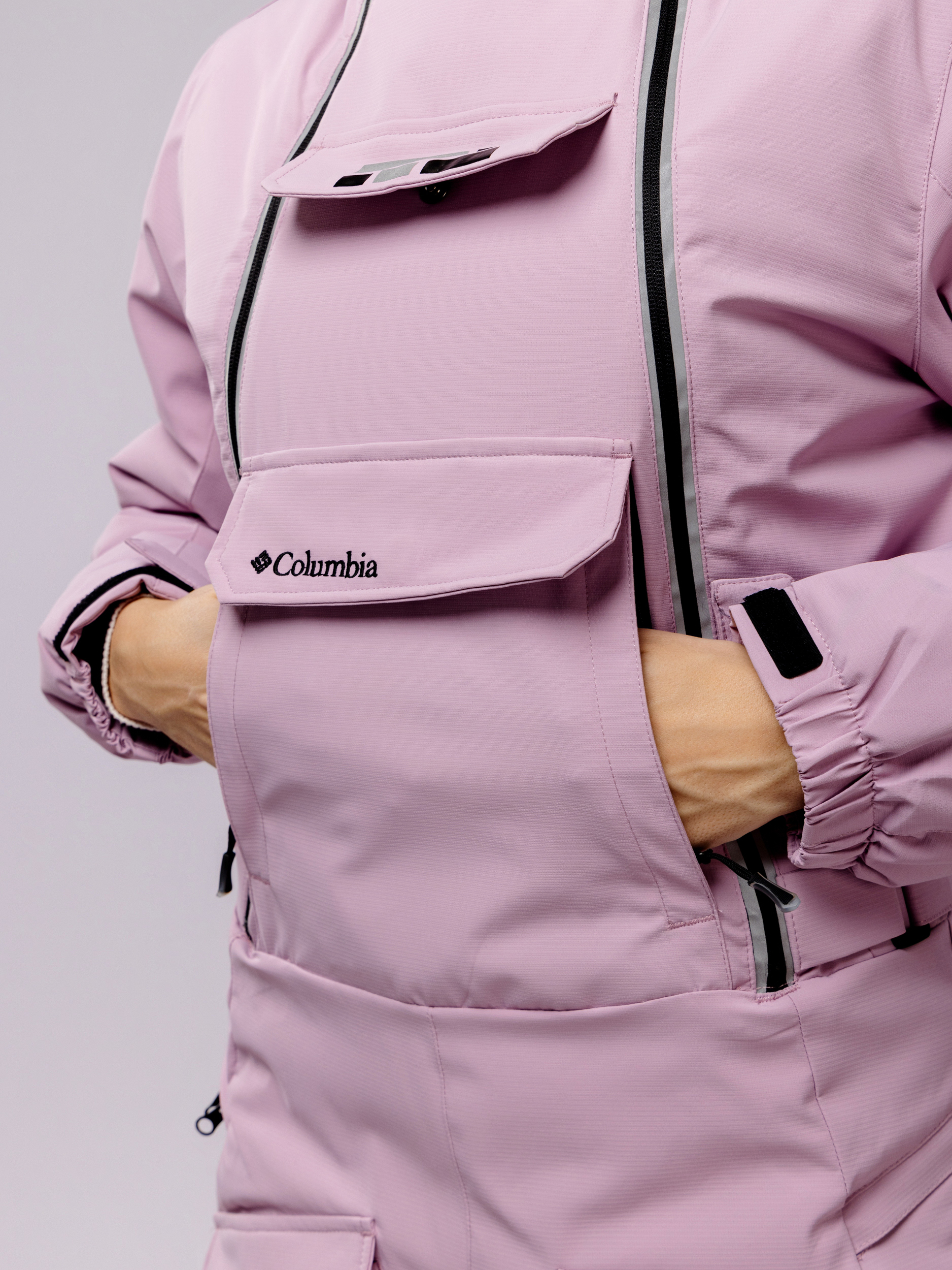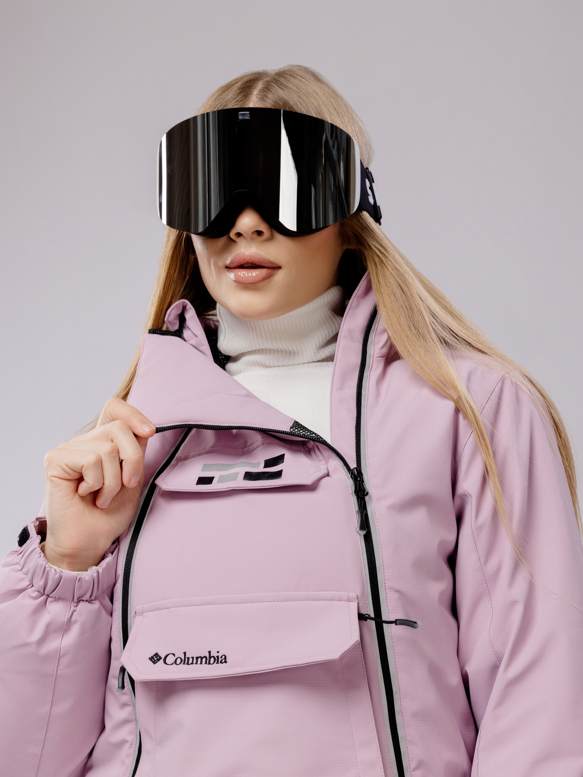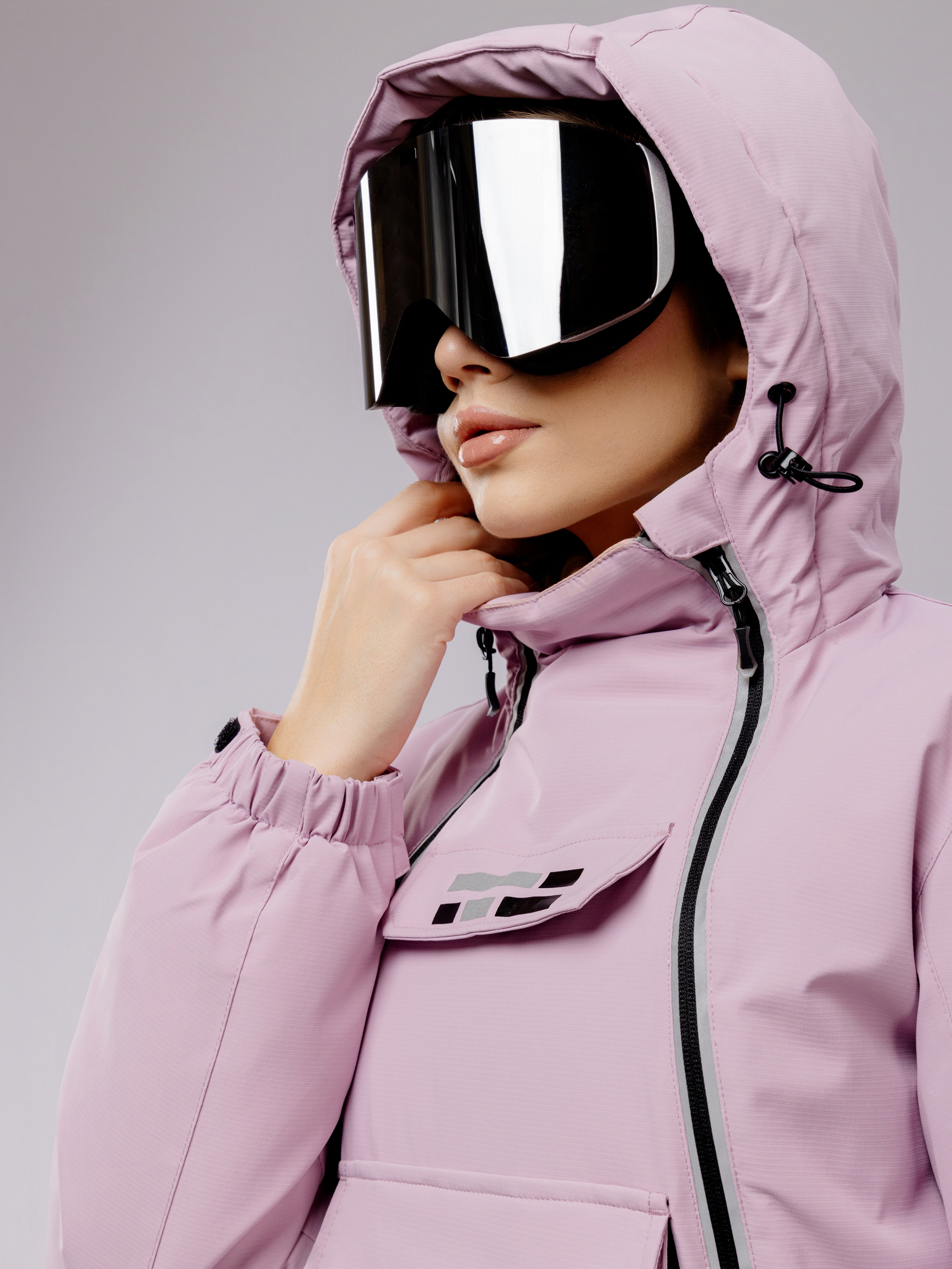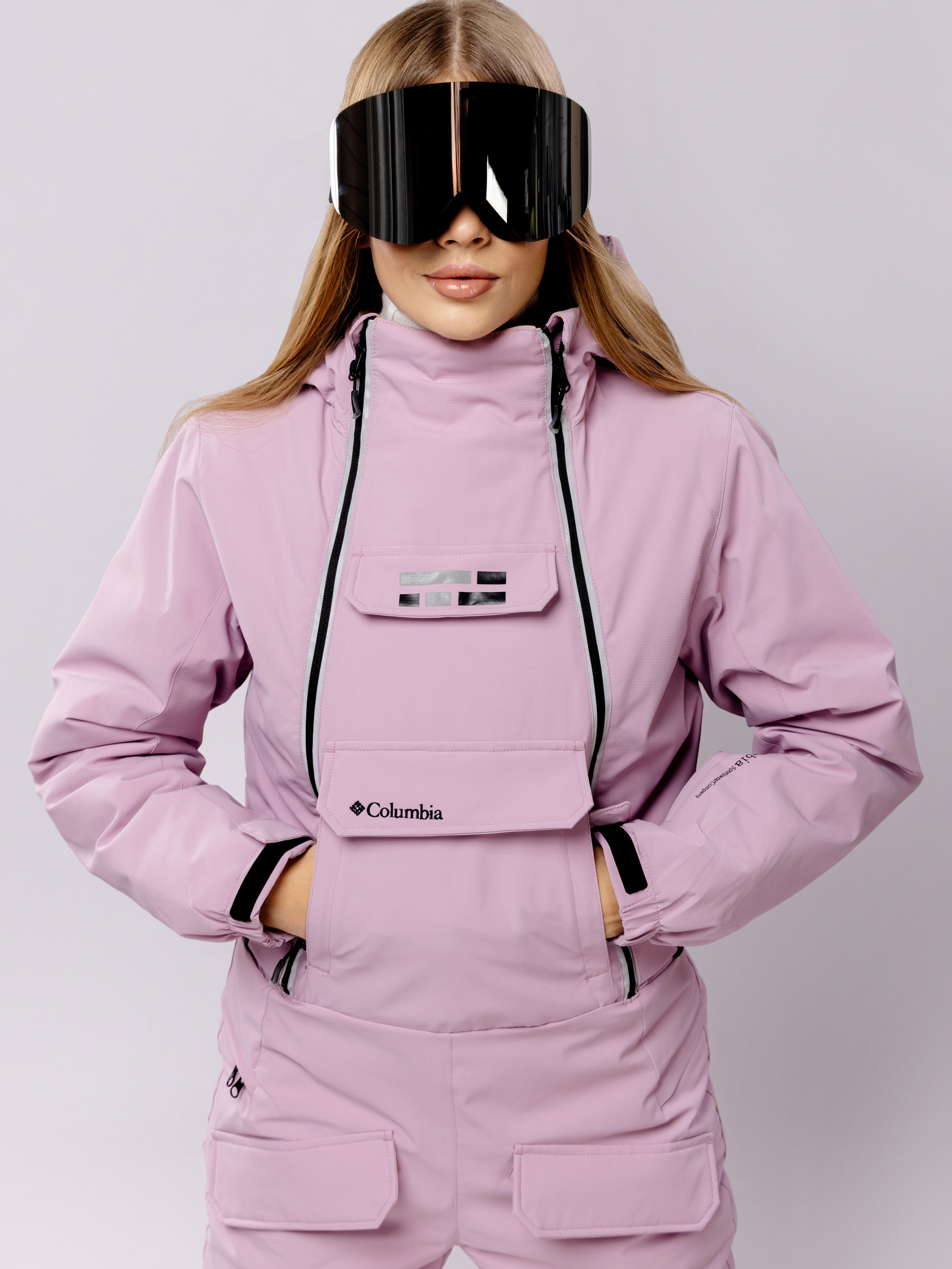 Свободный и эргономичный крой женского горнолыжного комбинезона обеспечивает свободу движений, необходимую для активного отдыха. Дополнительные элементы защиты включают высокий воротник, регулируемый капюшон, а также качественные манжеты на рукавах и брюках, препятствующие проникновению ветра и снега.