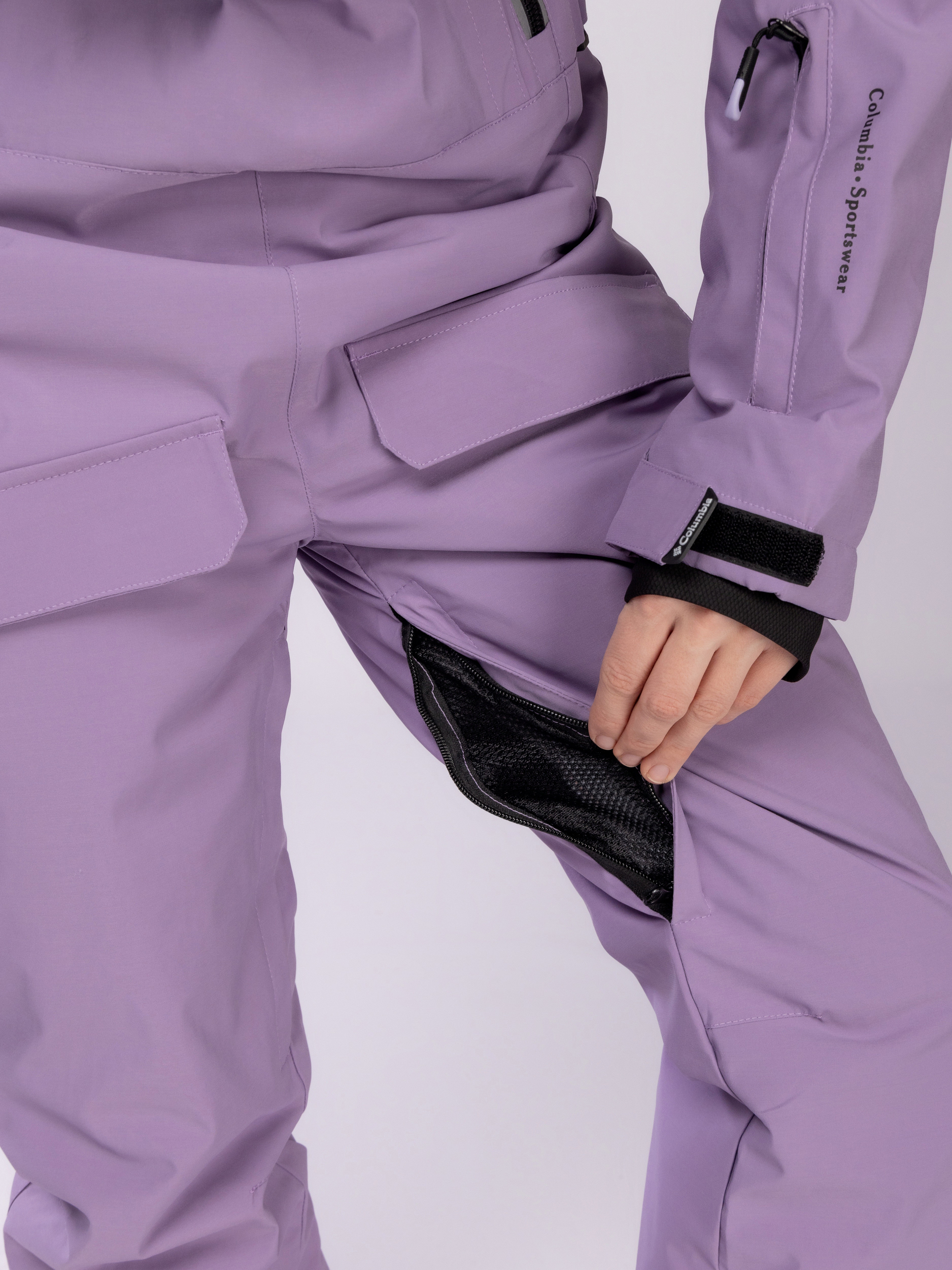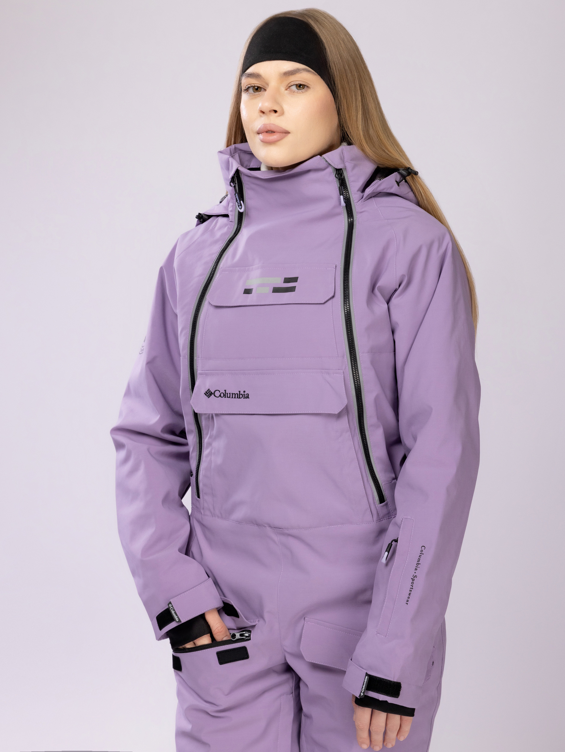 Свободный и эргономичный крой женского горнолыжного комбинезона обеспечивает свободу движений, необходимую для активного отдыха. Дополнительные элементы защиты включают высокий воротник, регулируемый капюшон, а также качественные манжеты на рукавах и брюках, препятствующие проникновению ветра и снега.