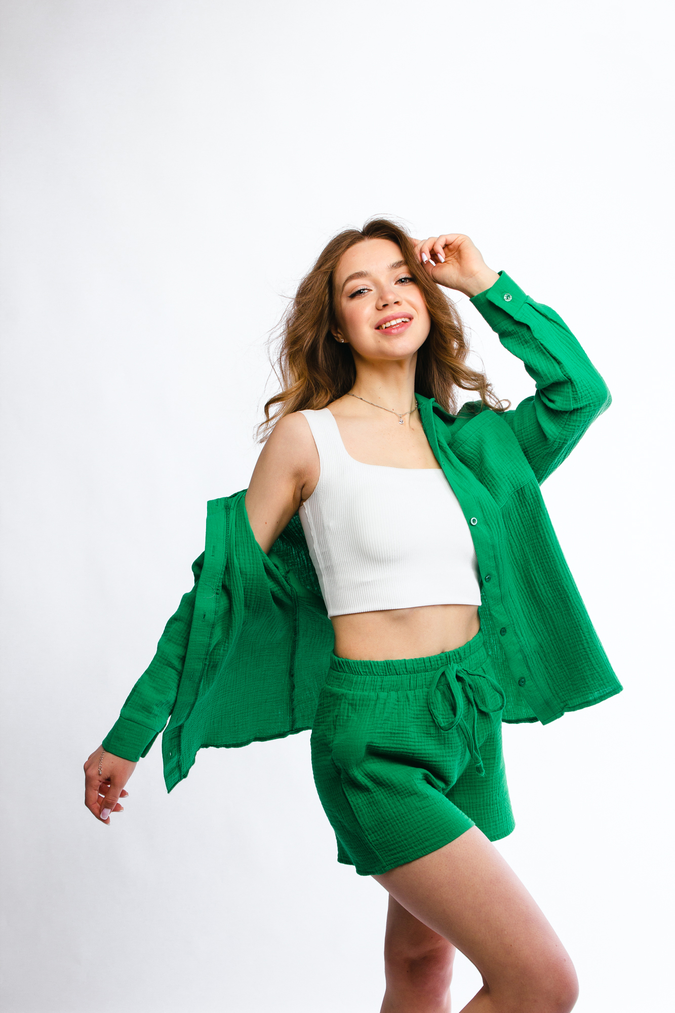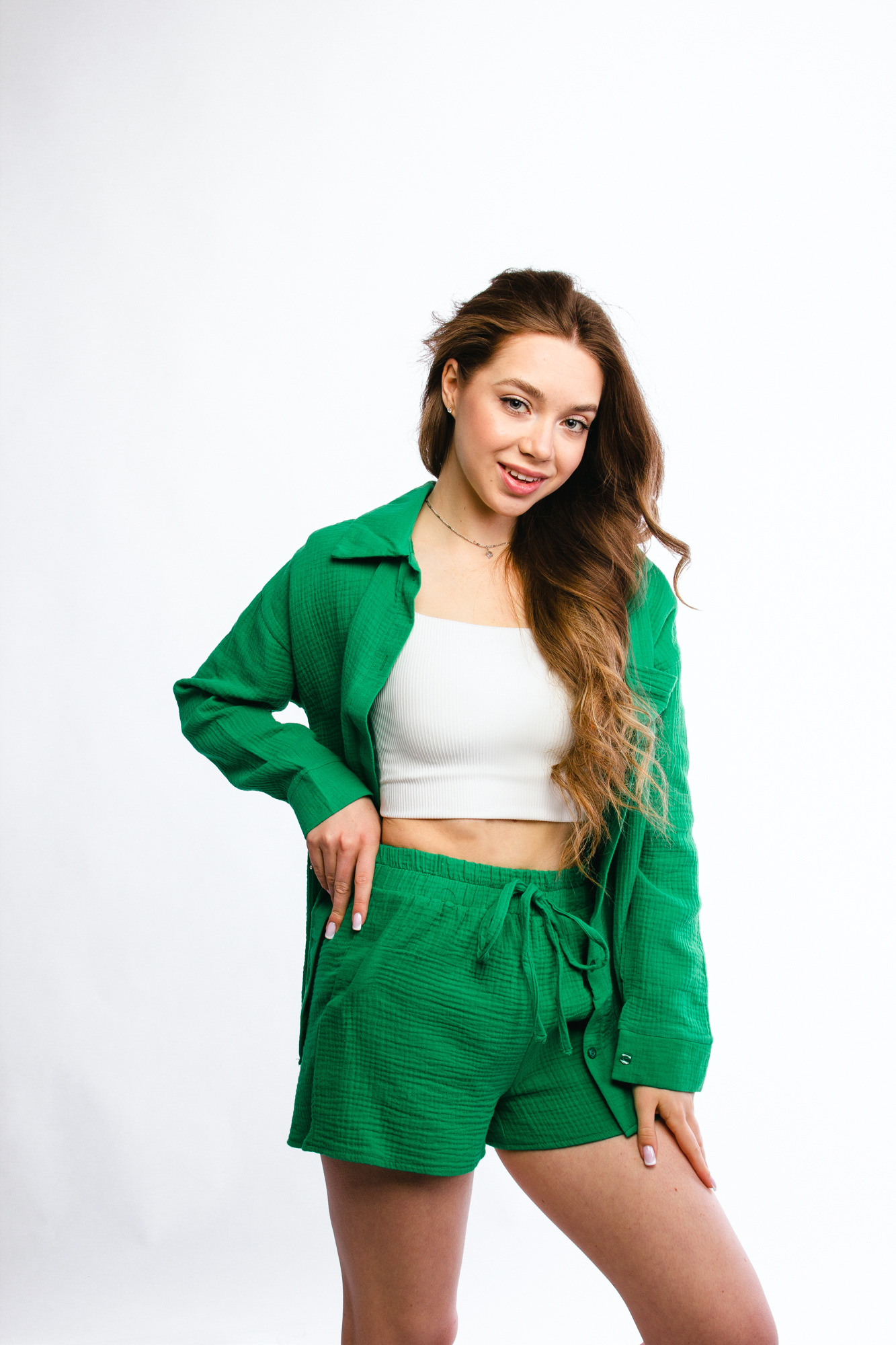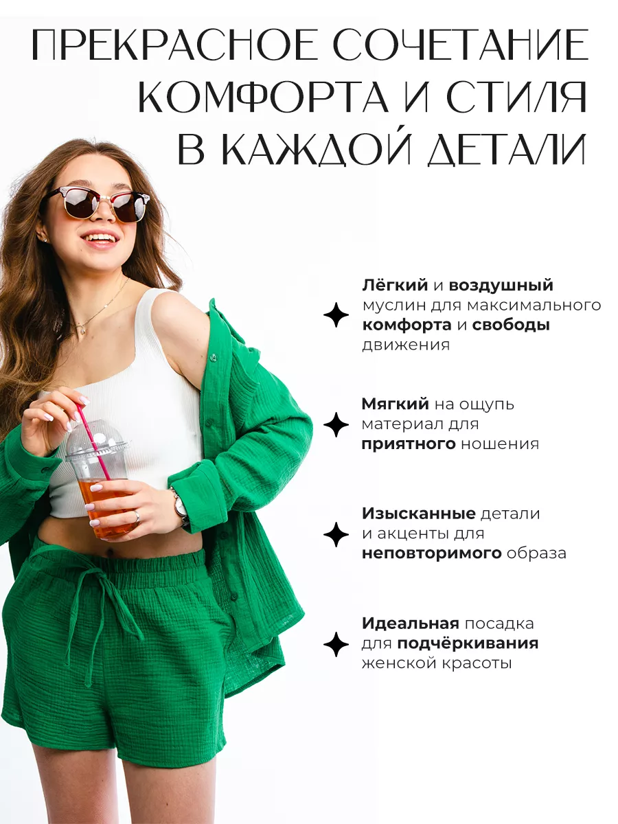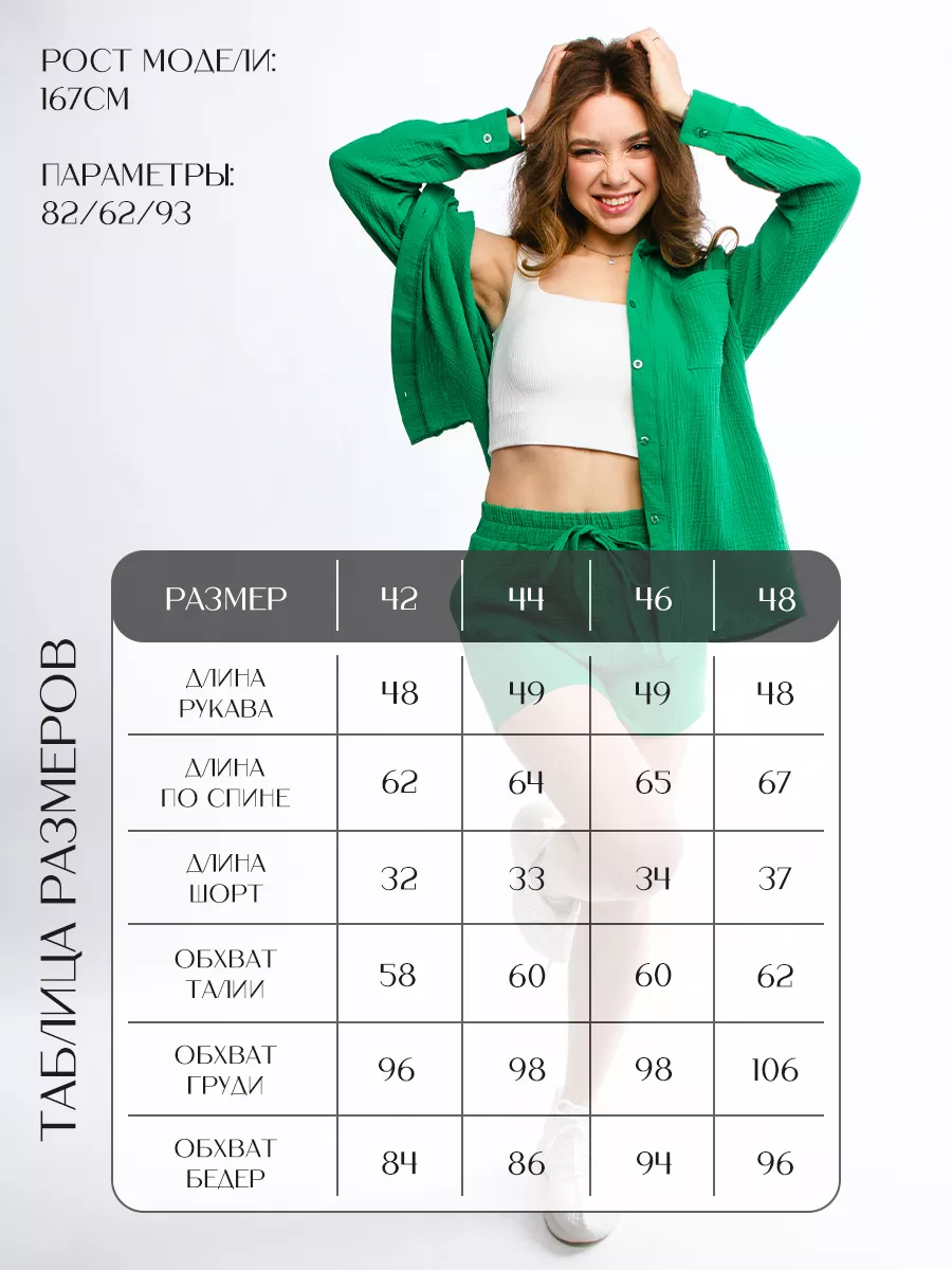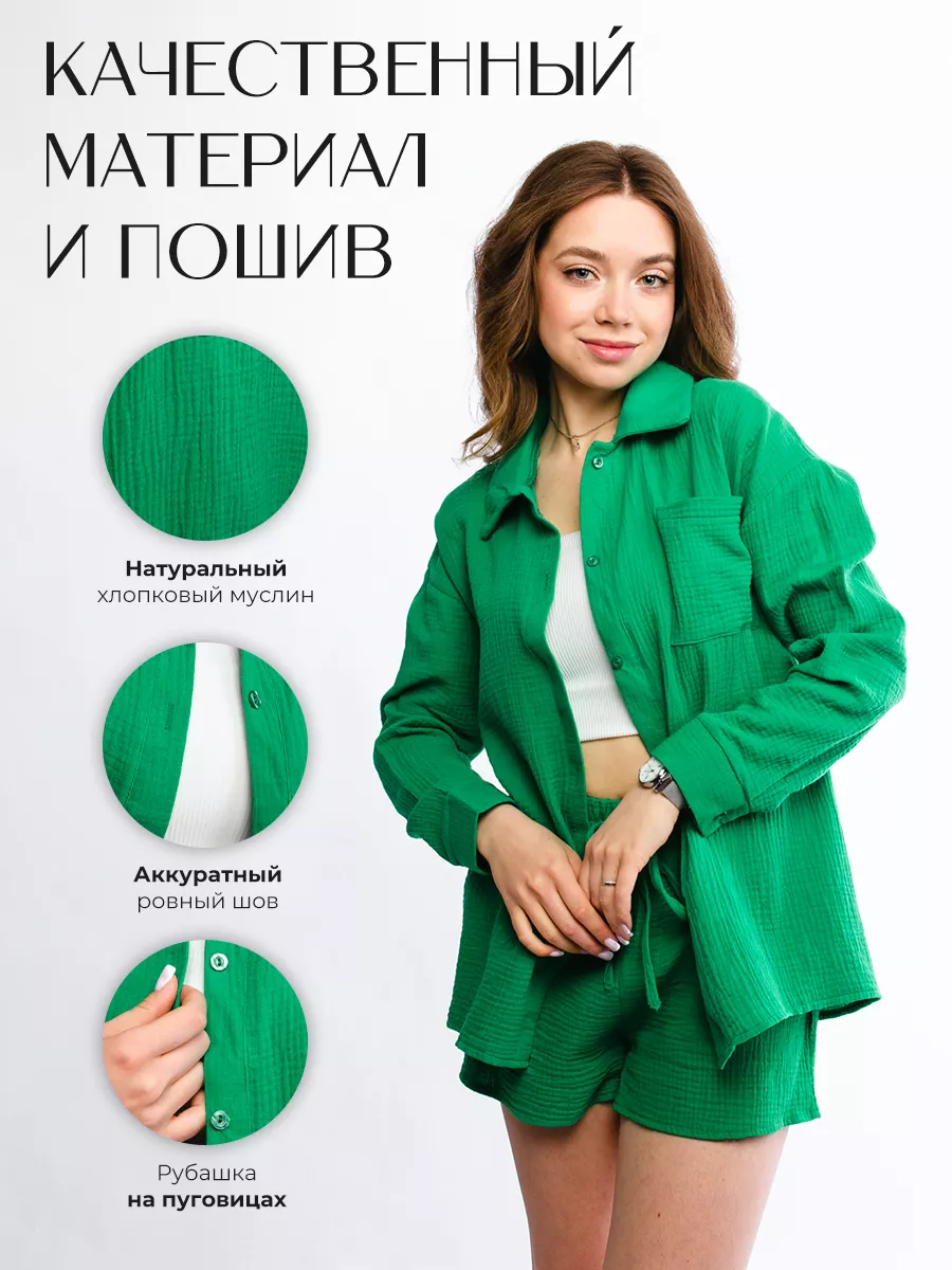 - Костюм женский - 1 шт (топ - 1 шт, рубашка - 1 шт, шорты - 1 шт)