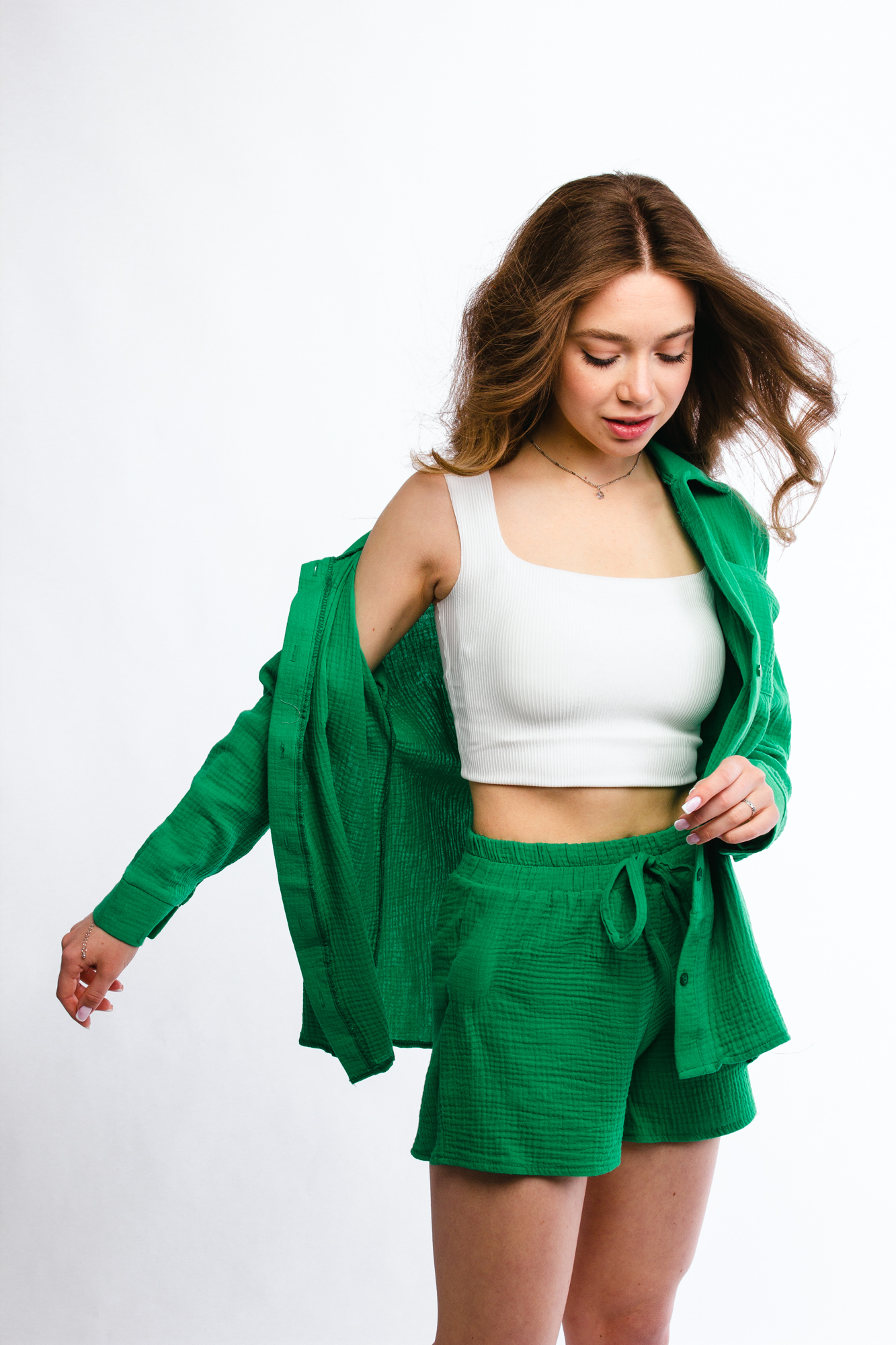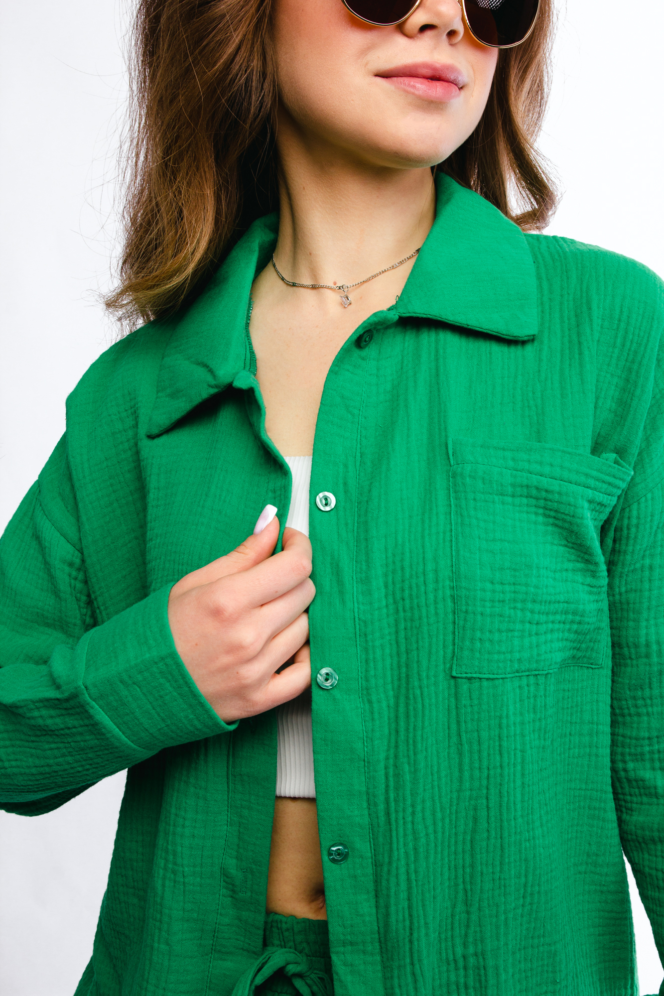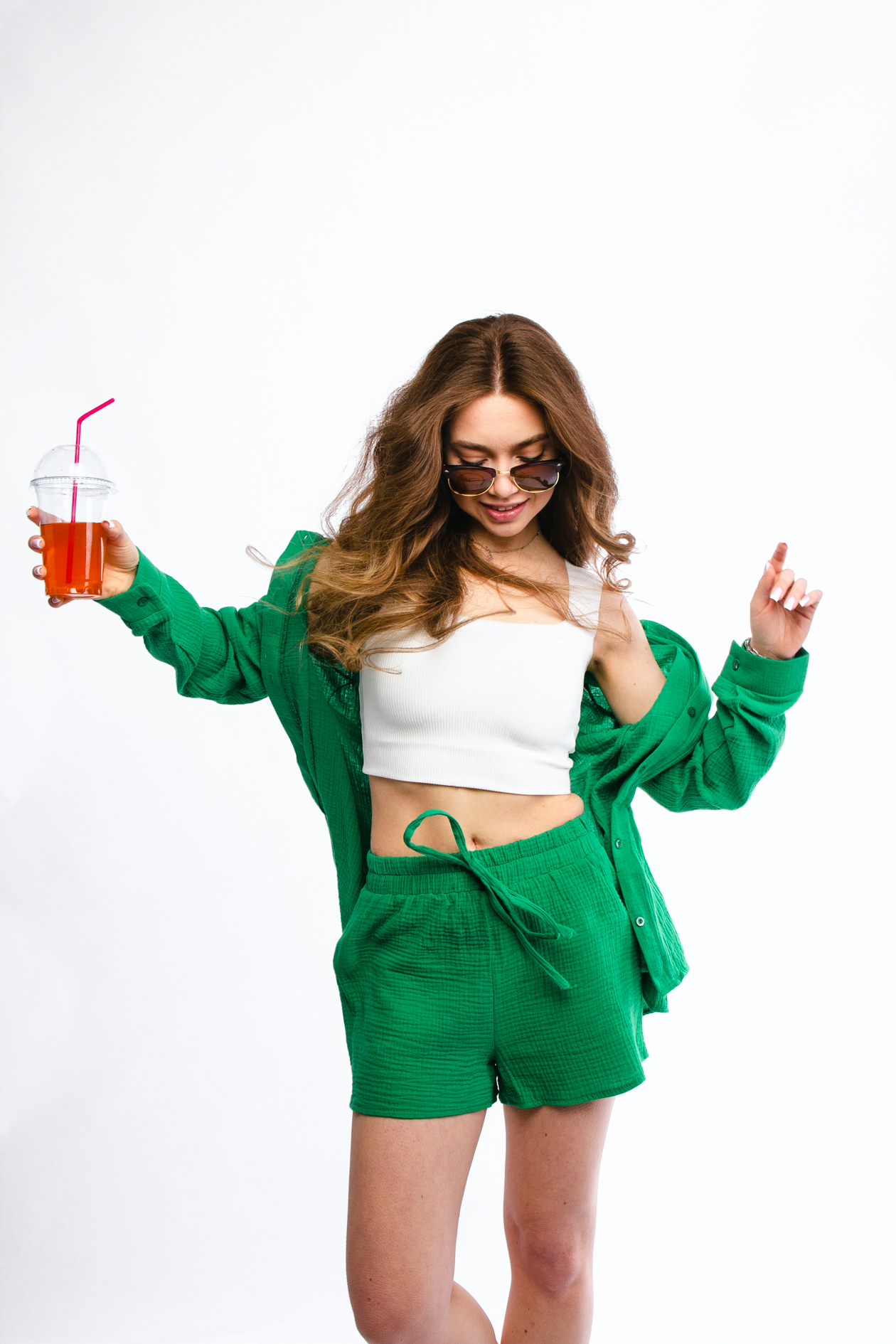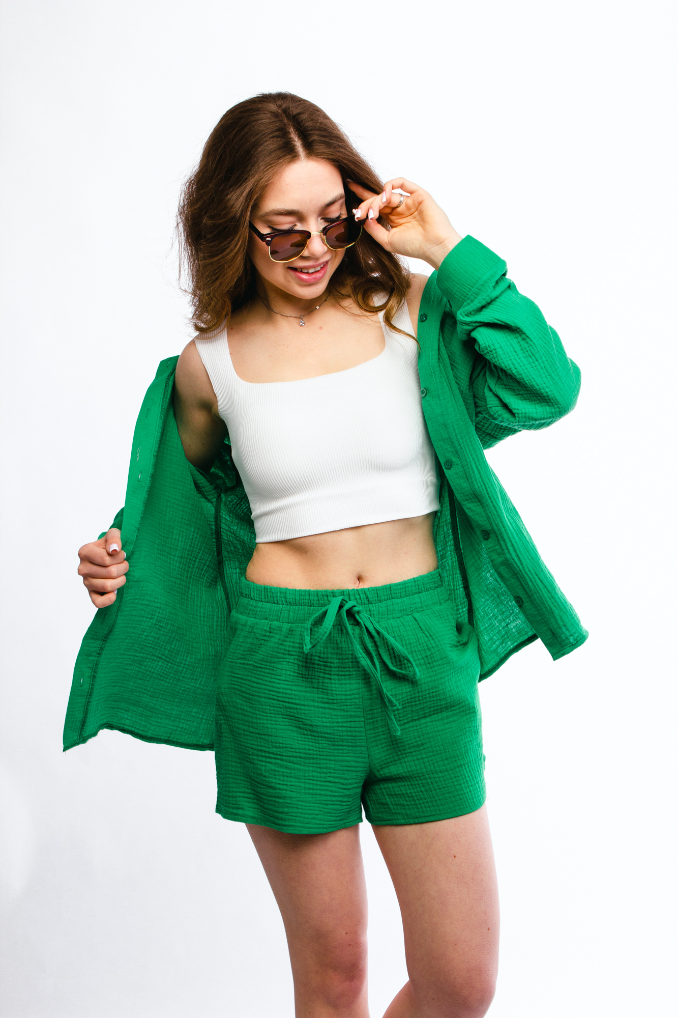 - Костюм женский - 1 шт (топ - 1 шт, рубашка - 1 шт, шорты - 1 шт)