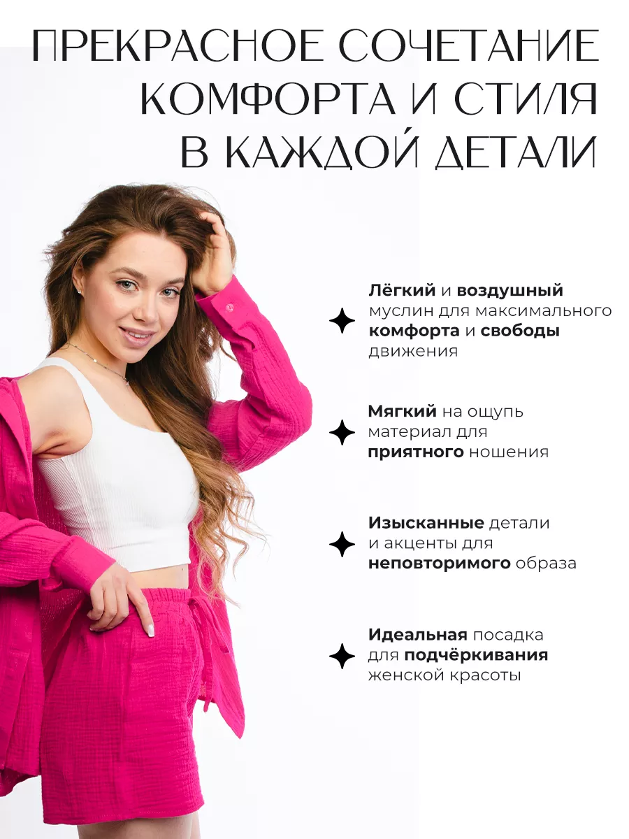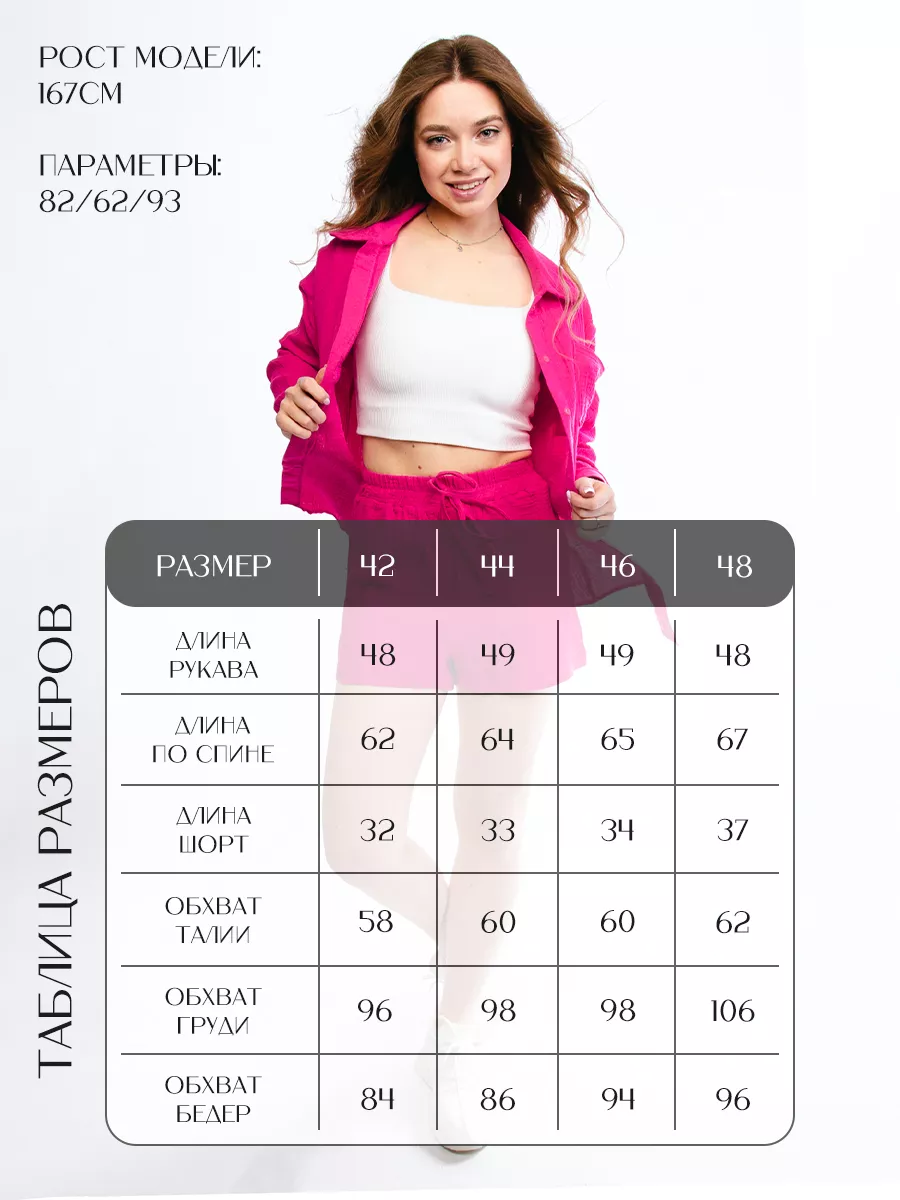 - Костюм женский - 1 шт (топ - 1 шт, рубашка - 1 шт, шорты - 1 шт)