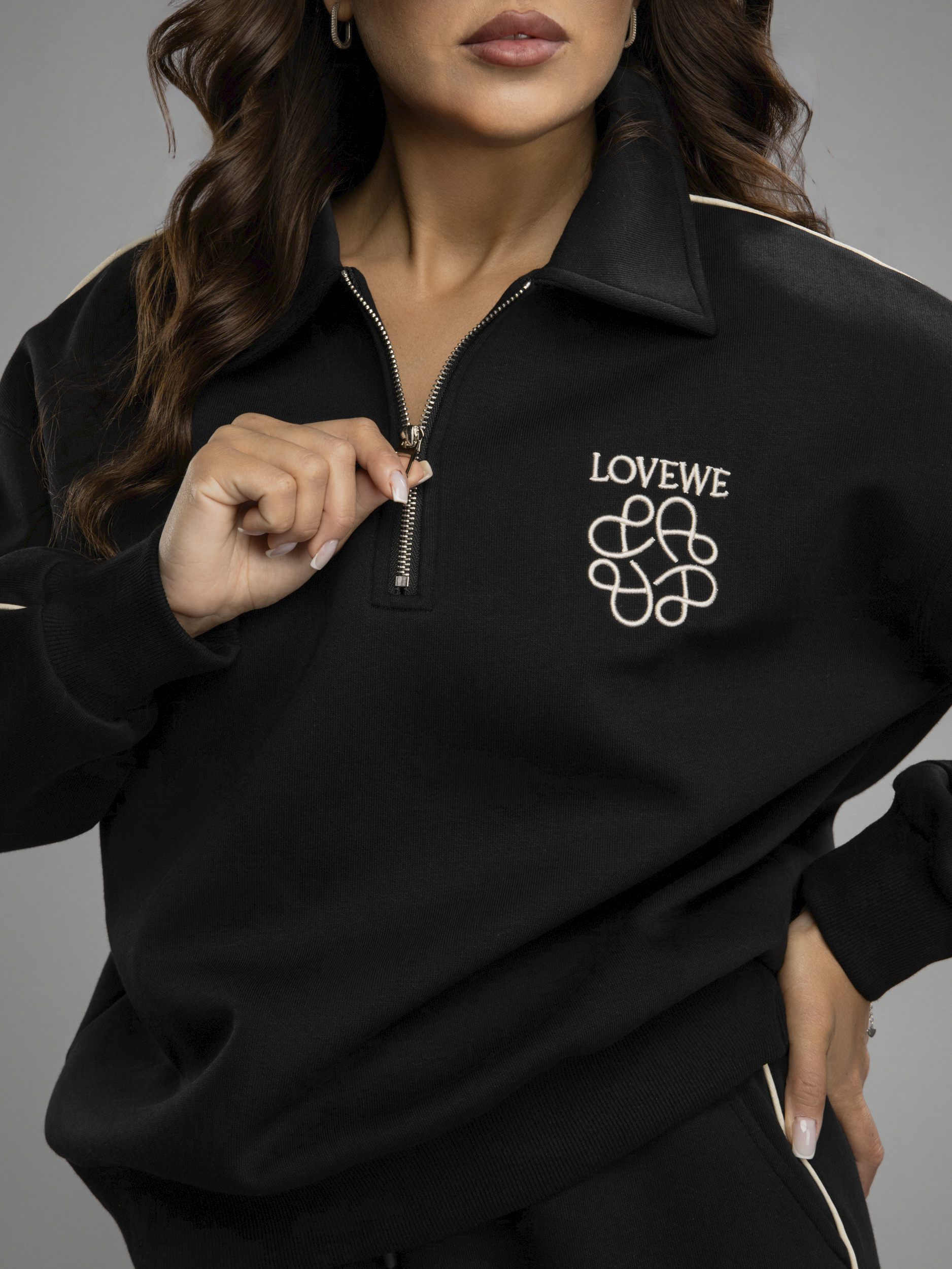 Женский спортивный костюм — это идеальное решение на осень и весну. Приятная на ощупь хлопковая ткань с содержанием полиэстера создает ощущение комфорта в любое время года во время активности, будь то спорт или прогулка по городу. Женский осенний спортивный костюм oversize фасона обеспечивает свободу движений, благодаря чему вы будете чувствовать себя уверенно во время тренировок или занятий физкультурой в школе и на свежем воздухе. Брюки с резинкой удобно сидят на талии, не давят, завязки позволяют дополнительно регулировать посадку брюк, а мягкие штанины позволяют сохранять ощущение комфорта и стильный вид. Широкие брюки из хлопка идеально подходят для спорта и отдыха. Свободная кофта без капюшона обеспечивает свободу движений, а вышивка добавляет яркий акцент к образу. Спортивный женский комплект включает в себя кофту с воротником на молнии, который защитит шею в ветреную погоду или во время пробежек. Этот демисезонный спортивный костюм легко адаптируется к различным погодным условиям. Женская спортивка позволяет сочетать динамику движения и элегантность формы без ущерба модному внешнему виду. Верхняя часть предоставляет широкий выбор стилевых решений: свободный крой оверсайз скрывает недостатки фигуры и подходит как девушке-подростку, так и женщине. Демисезонный женский костюм подходит для невысоких и высоких дам. Также этот спортивный костюм на осень можно считать идеальным для занимающихся фитнесом или бегом, потому что каждая деталь здесь разработана с учетом высокого уровня комфорта на тренировке. Завязки на брюках позволяют дополнительно регулировать размер в области талии. Спортивный костюм оверсайз отлично подходит для повседневного ношения. Общее оформление создано таким образом, чтобы быть актуальным вне зависимости от сезона: будь то переменчивая весенняя погода или осенняя прохлада.