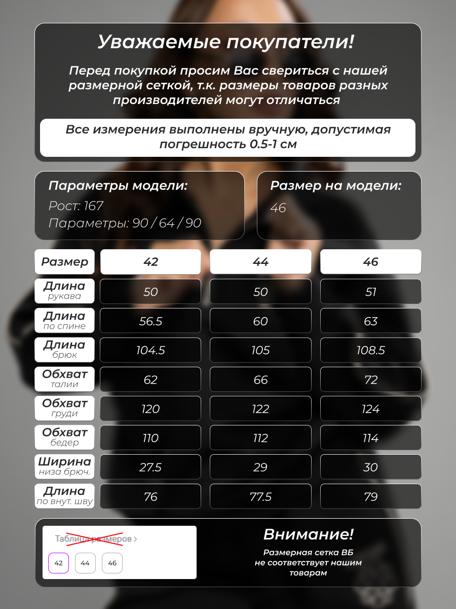 Параметры модели на фото (ОГ-ОТ-ОБ)