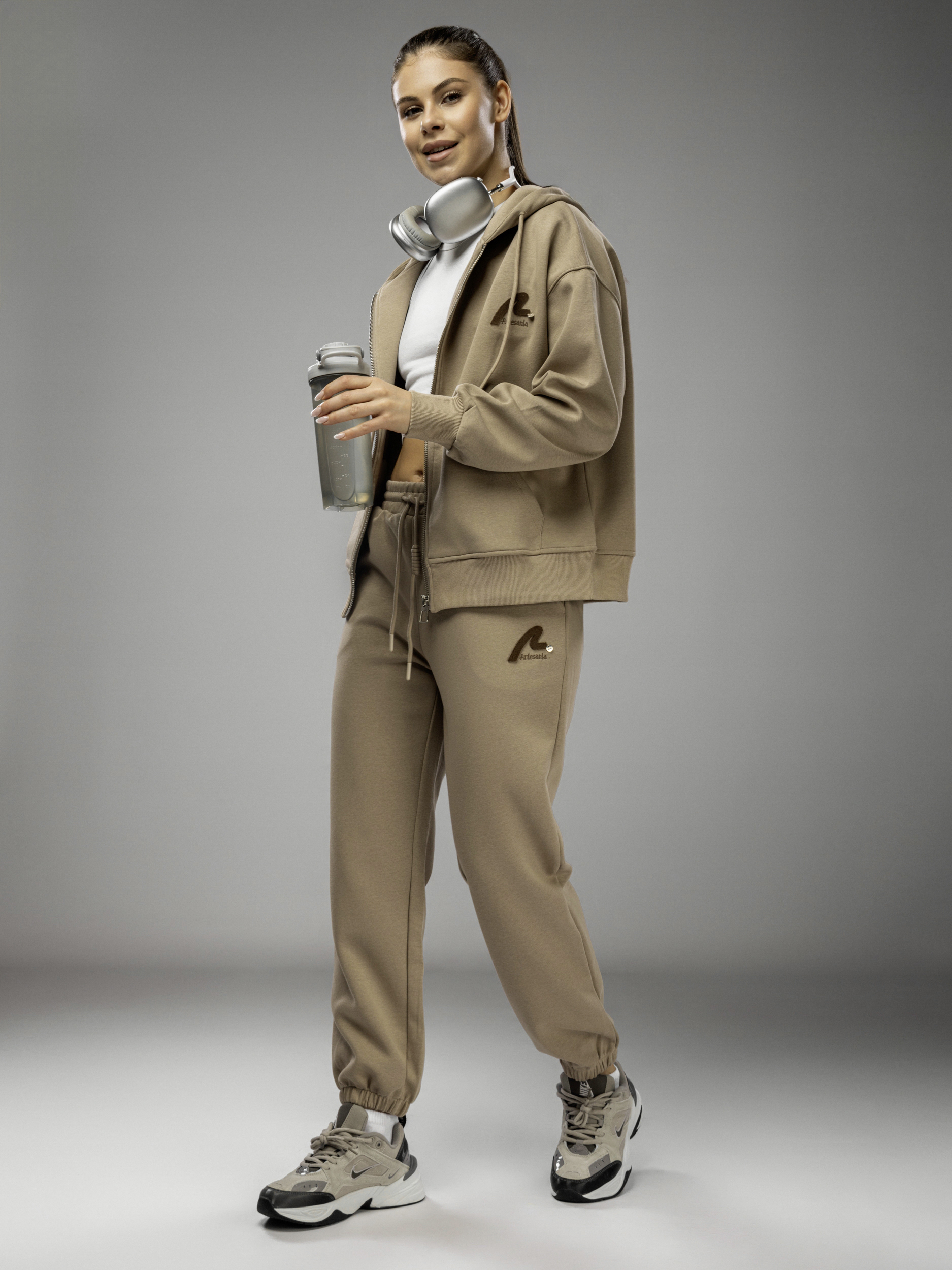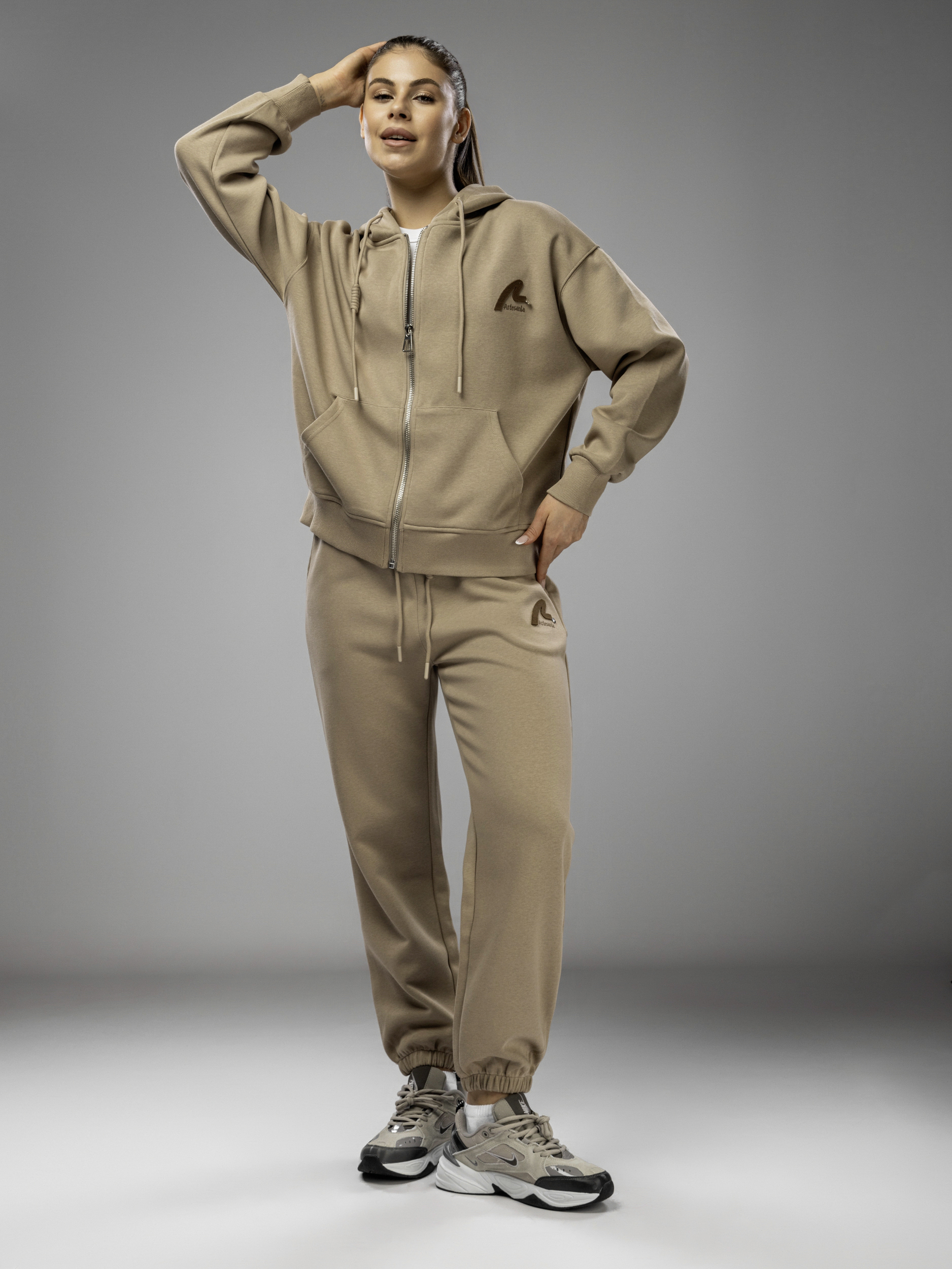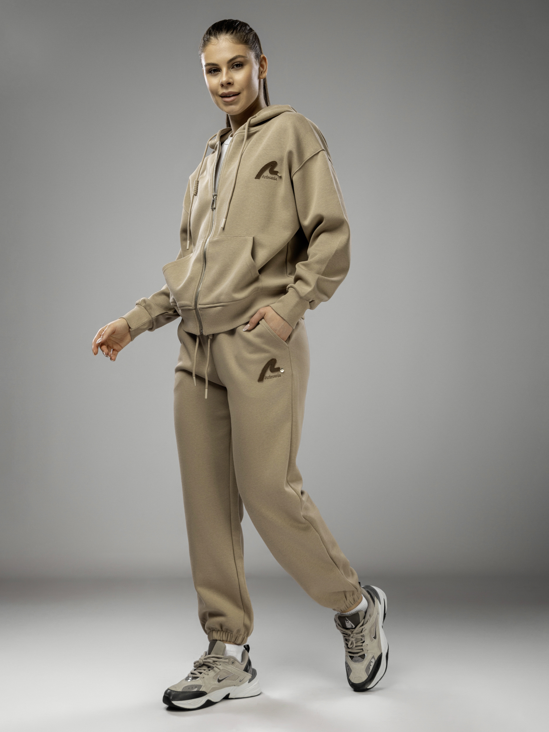 Толстовка украшена аккуратной вышивкой и надписью, что придает женскому комплекту стильный и современный вид. Капюшон несъемный, обеспечивает дополнительный комфорт в ветреную погоду. Рукава дополнены эластичными манжетами, которые обеспечивают комфортную посадку и не сковывают движений во время активного отдыха и спорта. Джоггеры на регулируемом поясе подходят девушкам и подросткам с любым типом фигуры. Спортивный костюм женский без начеса остается легким и дышащим даже в теплое время года. Элементы декора и аккуратная отделка подчеркивают женственный силуэт, а оверсайз посадка обеспечивает свободу движений. Штаны с манжетами и толстовка на молнии гармонично сочетаются между собой, создавая завершенный образ. Приятная на ощупь текстура подходит для чувствительной кожи, не вызывает раздражения. Костюм повседневный с брюками рассчитан на длительное использование, не теряет форму после стирки, сохраняет насыщенность цвета.