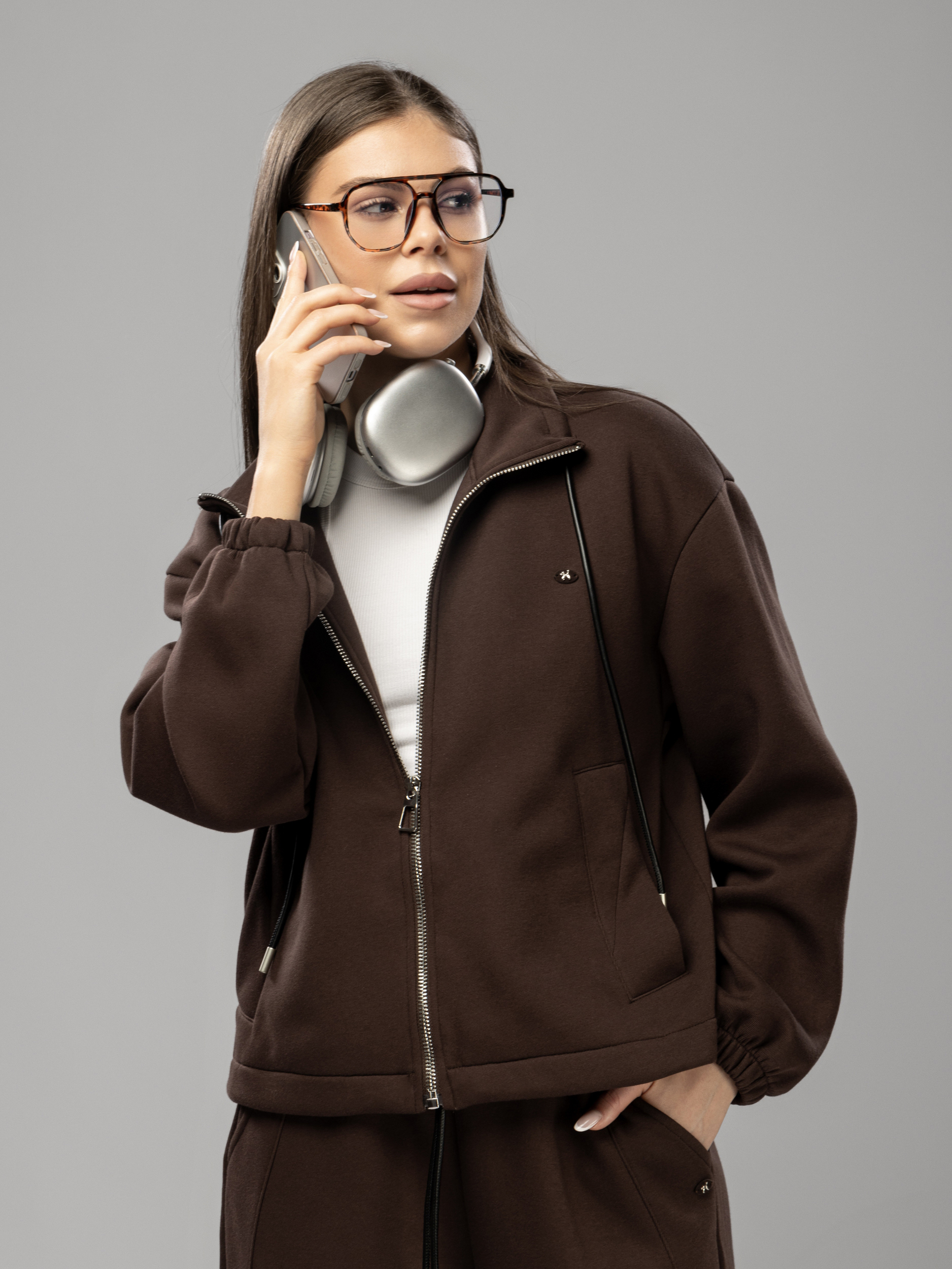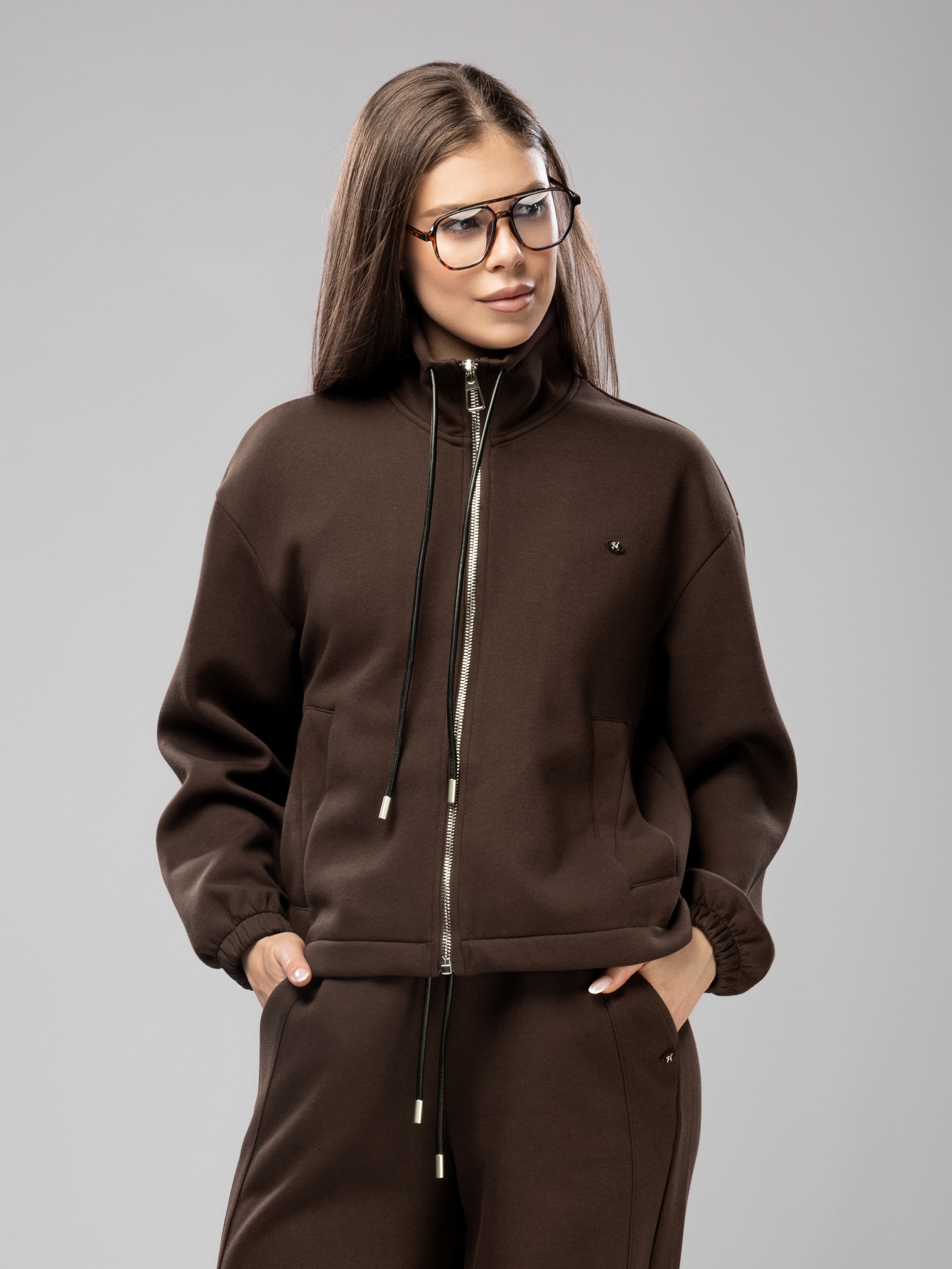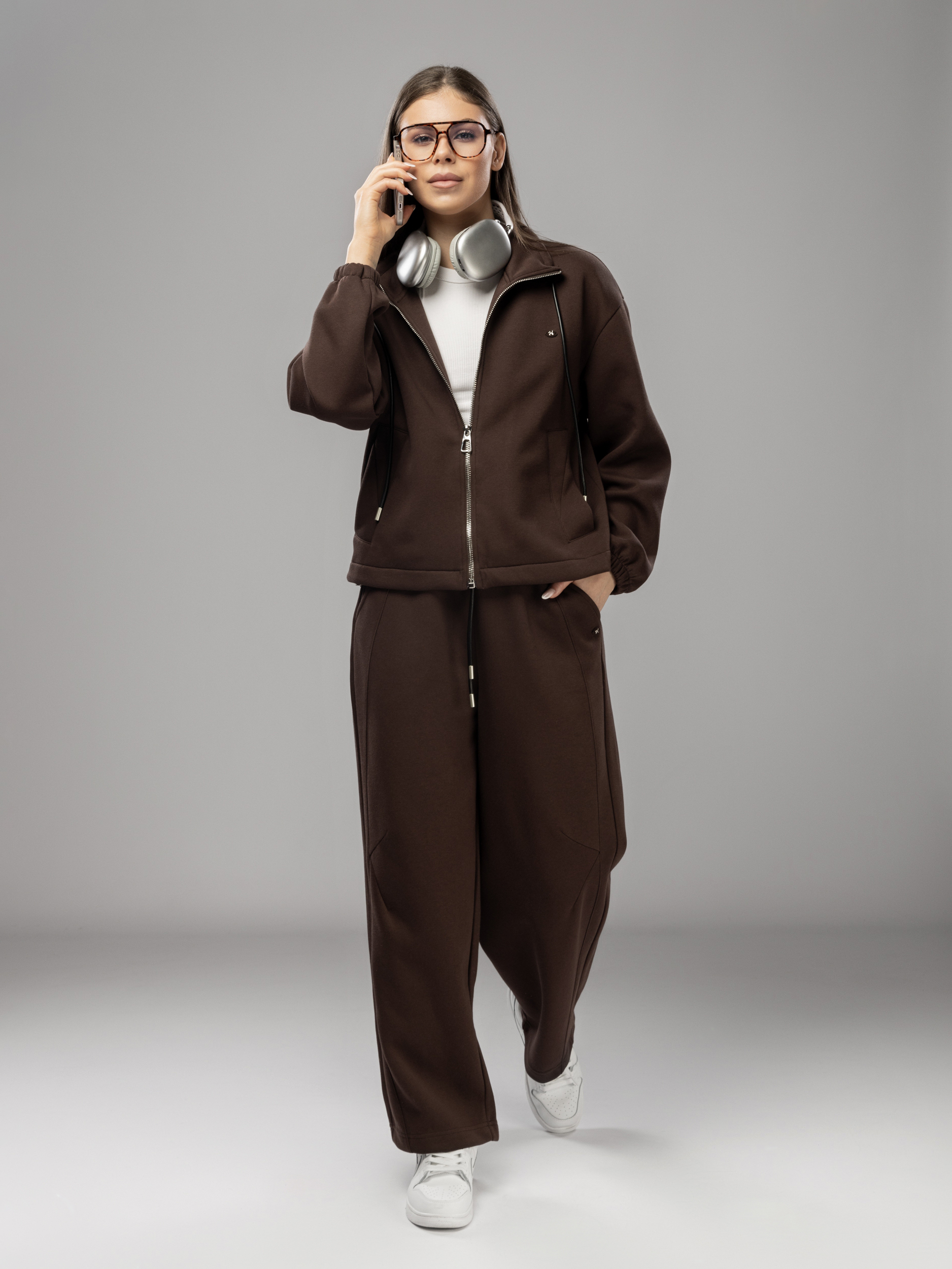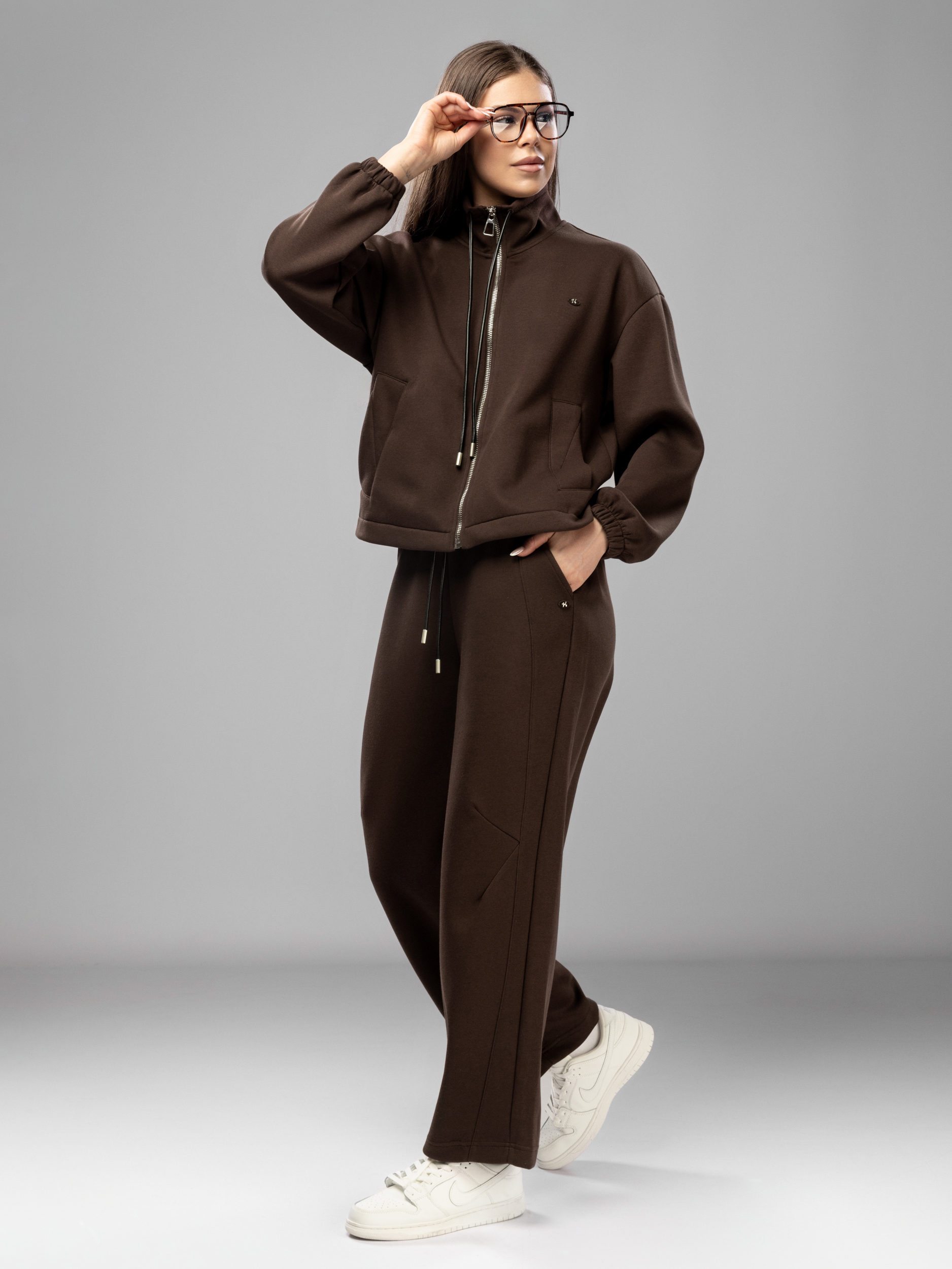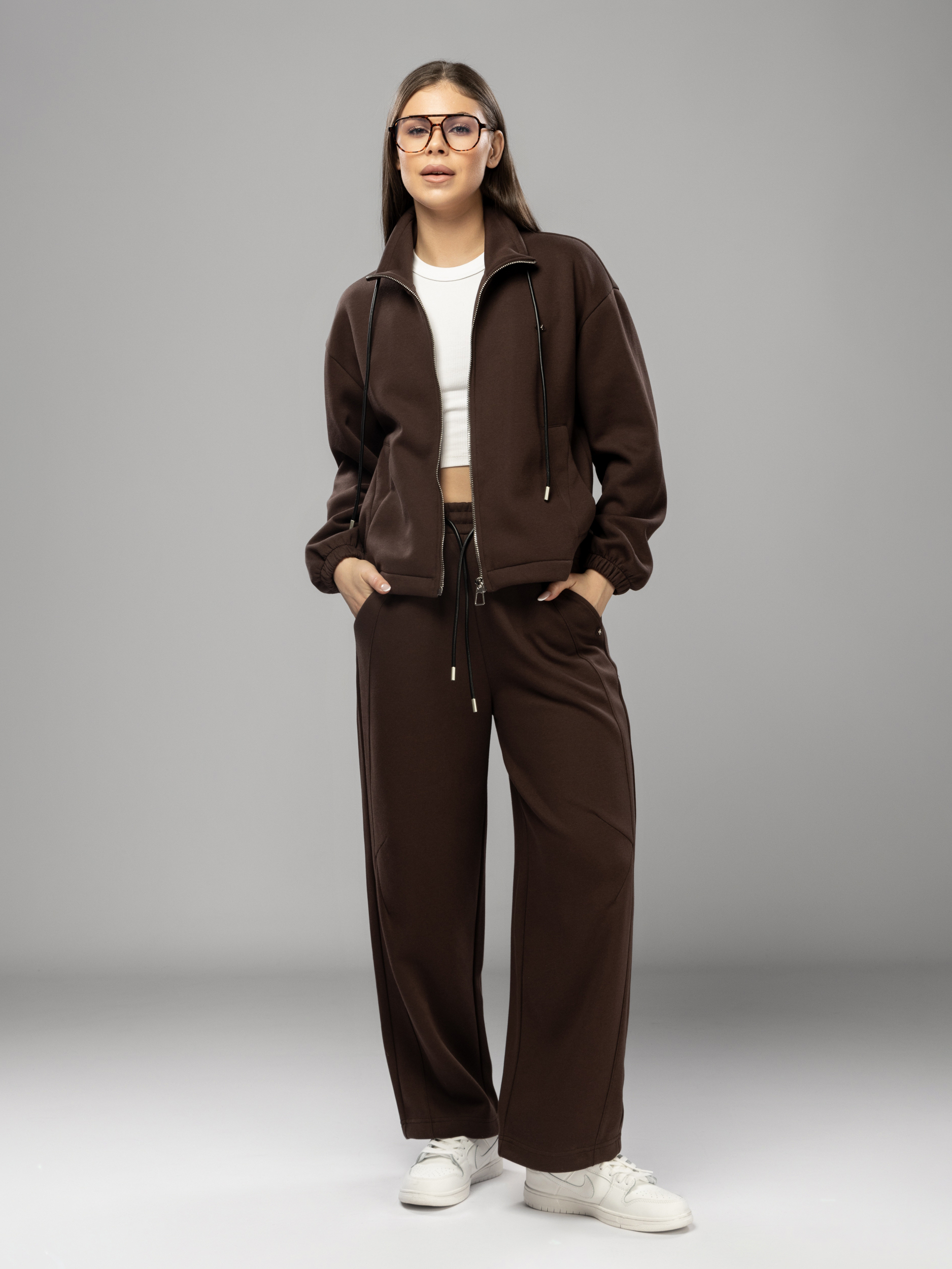 Спортивный костюм на молнии без начеса арт. 5678-73-3-Coffee-SWA1-FF