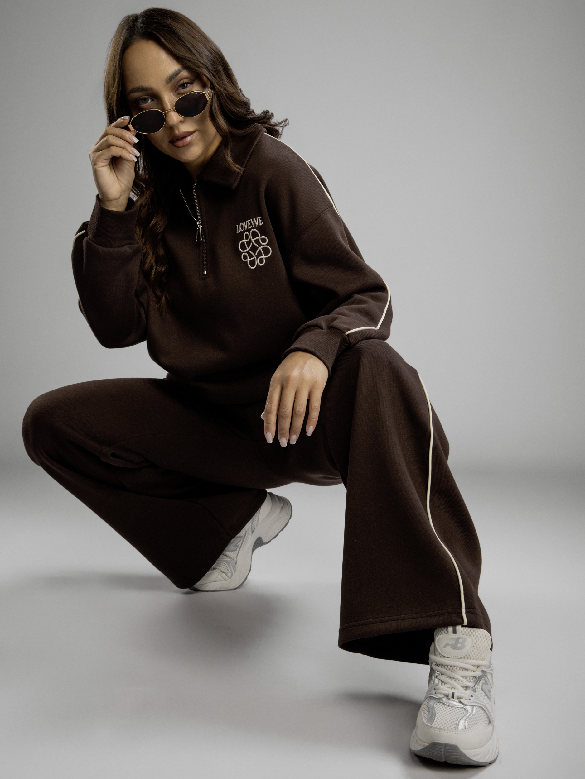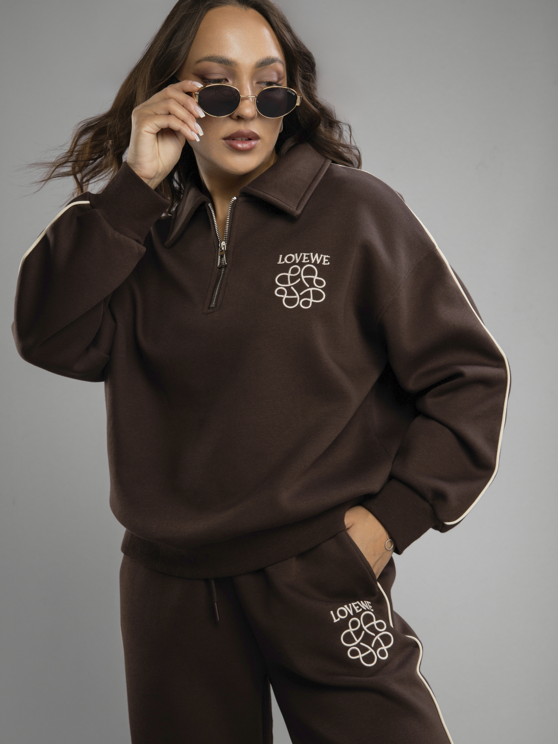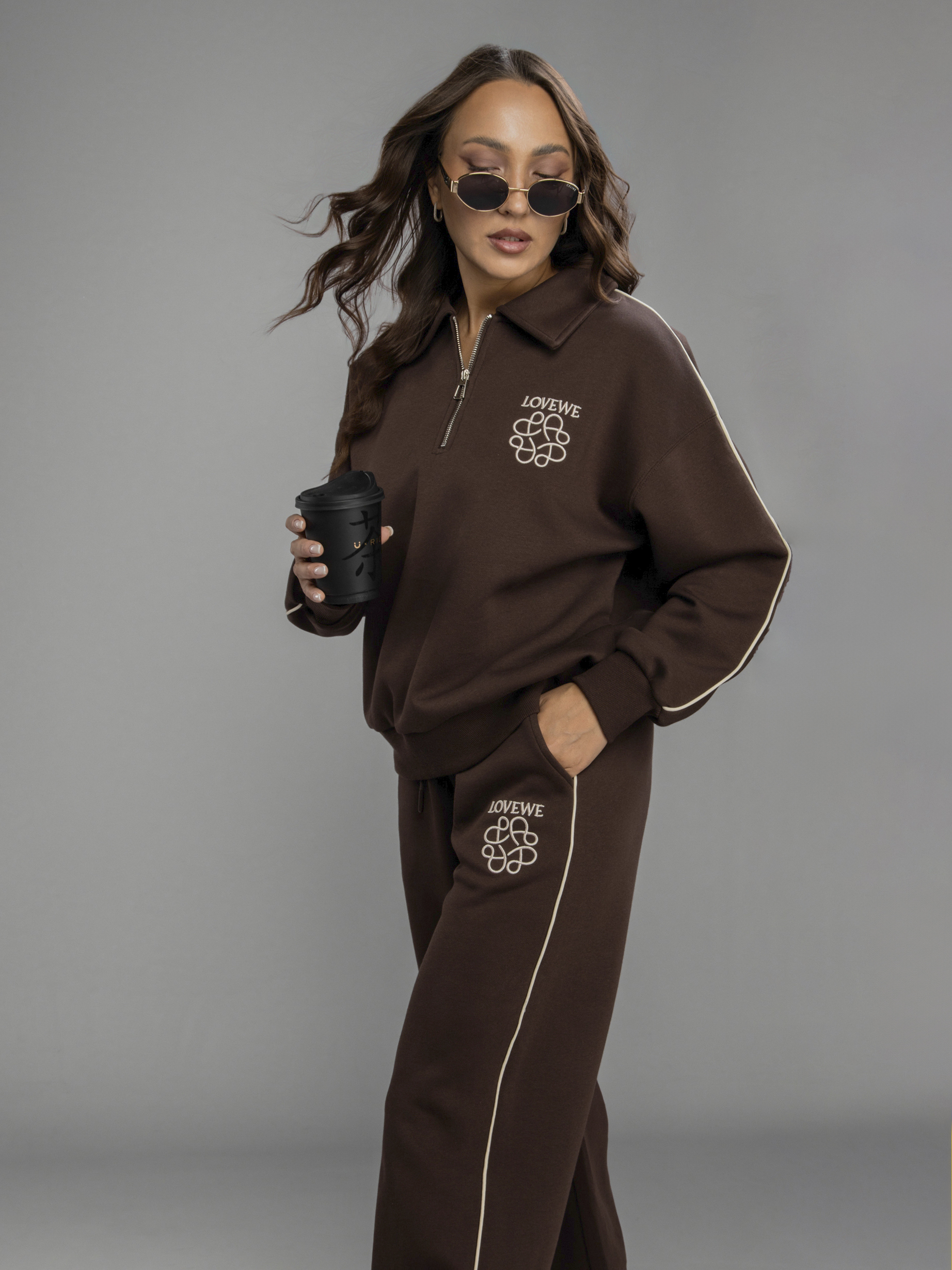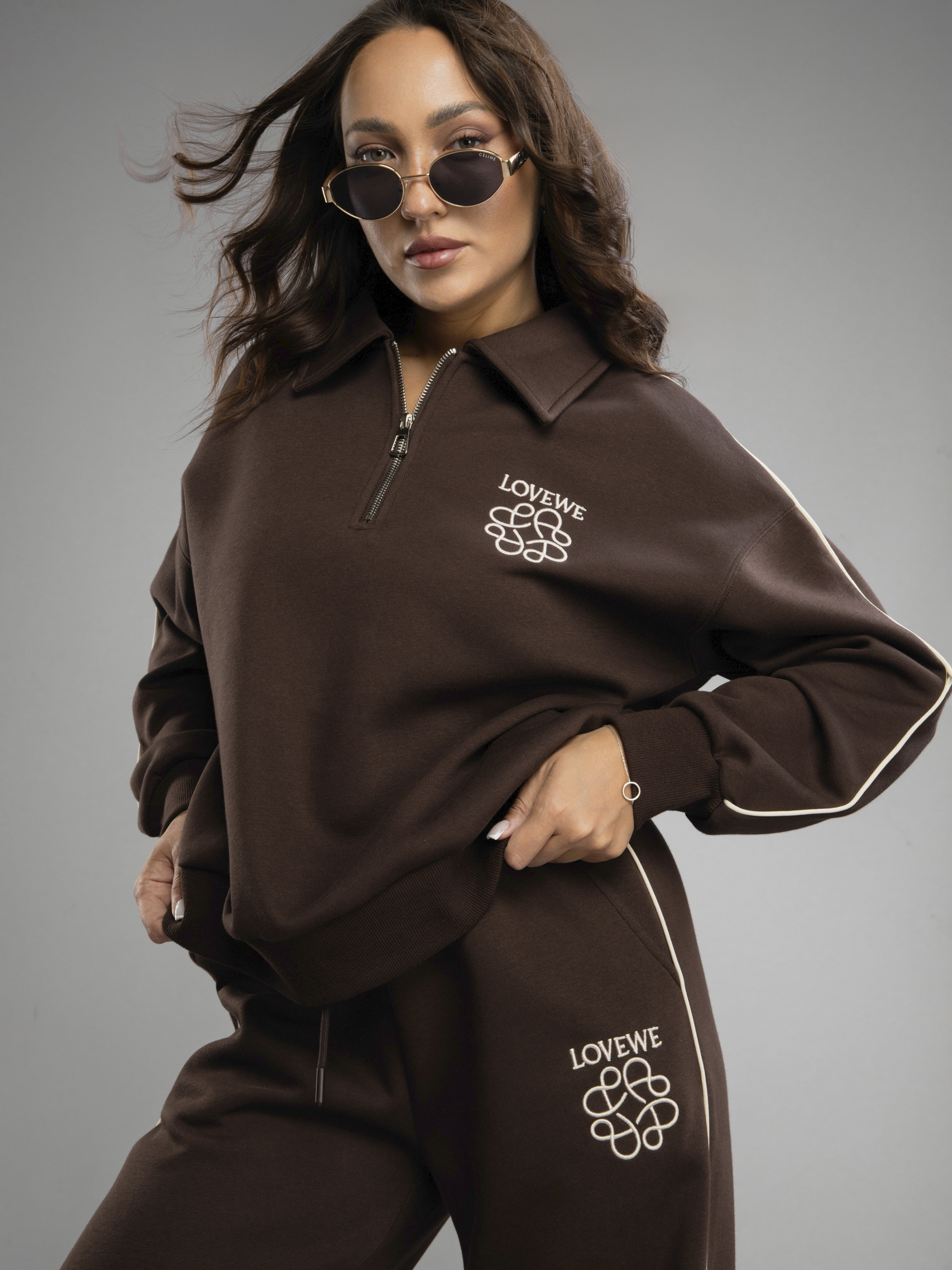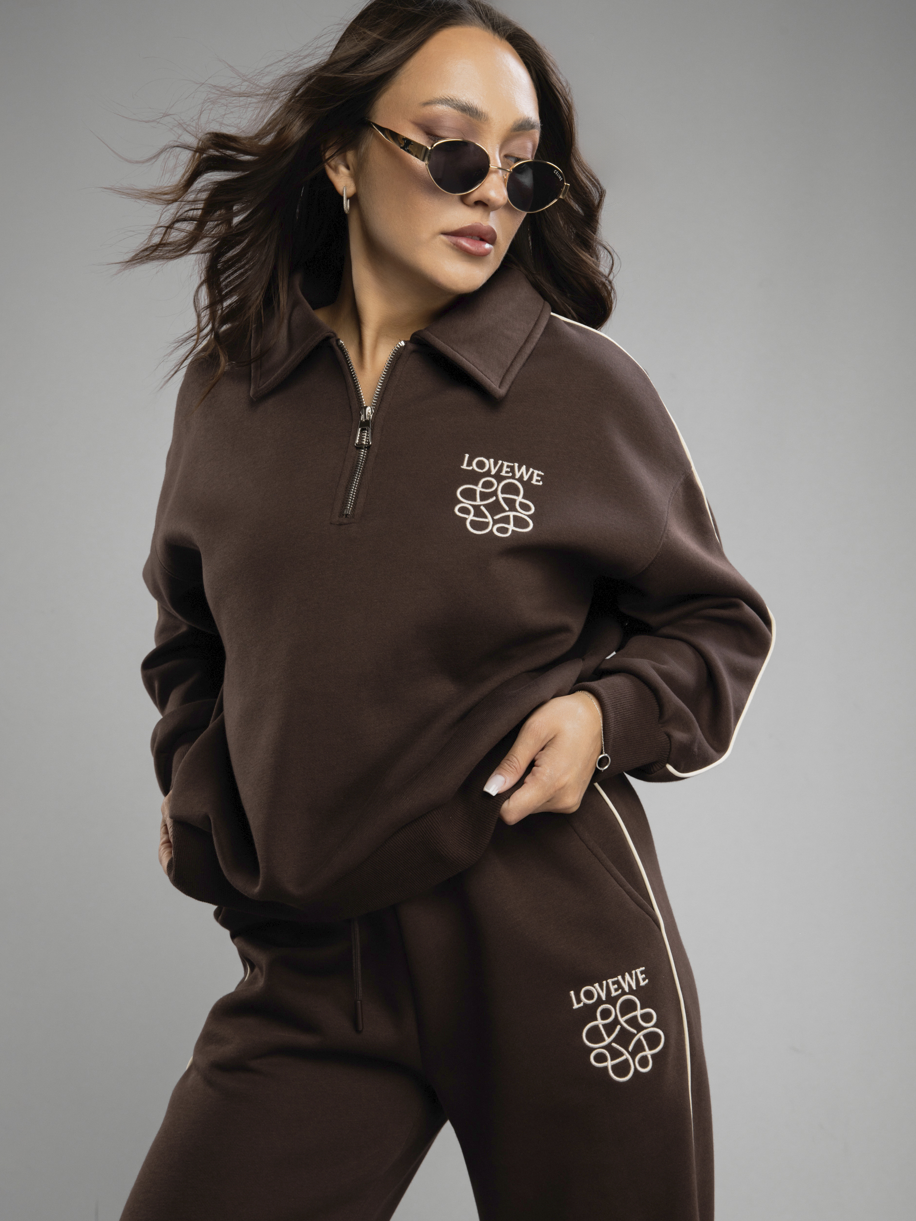 Женский спортивный костюм — это идеальное решение на осень и весну. Приятная на ощупь хлопковая ткань с содержанием полиэстера создает ощущение комфорта в любое время года во время активности, будь то спорт или прогулка по городу. Женский осенний спортивный костюм oversize фасона обеспечивает свободу движений, благодаря чему вы будете чувствовать себя уверенно во время тренировок или занятий физкультурой в школе и на свежем воздухе. Брюки с резинкой удобно сидят на талии, не давят, завязки позволяют дополнительно регулировать посадку брюк, а мягкие штанины позволяют сохранять ощущение комфорта и стильный вид. Широкие брюки из хлопка идеально подходят для спорта и отдыха. Свободная кофта без капюшона обеспечивает свободу движений, а вышивка добавляет яркий акцент к образу. Спортивный женский комплект включает в себя кофту с воротником на молнии, который защитит шею в ветреную погоду или во время пробежек. Этот демисезонный спортивный костюм легко адаптируется к различным погодным условиям. Женская спортивка позволяет сочетать динамику движения и элегантность формы без ущерба модному внешнему виду. Верхняя часть предоставляет широкий выбор стилевых решений: свободный крой оверсайз скрывает недостатки фигуры и подходит как девушке-подростку, так и женщине. Демисезонный женский костюм подходит для невысоких и высоких дам. Также этот спортивный костюм на осень можно считать идеальным для занимающихся фитнесом или бегом, потому что каждая деталь здесь разработана с учетом высокого уровня комфорта на тренировке. Завязки на брюках позволяют дополнительно регулировать размер в области талии. Спортивный костюм оверсайз отлично подходит для повседневного ношения. Общее оформление создано таким образом, чтобы быть актуальным вне зависимости от сезона: будь то переменчивая весенняя погода или осенняя прохлада.