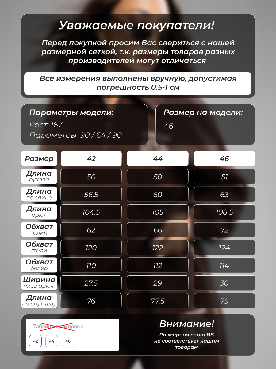 Параметры модели на фото (ОГ-ОТ-ОБ)