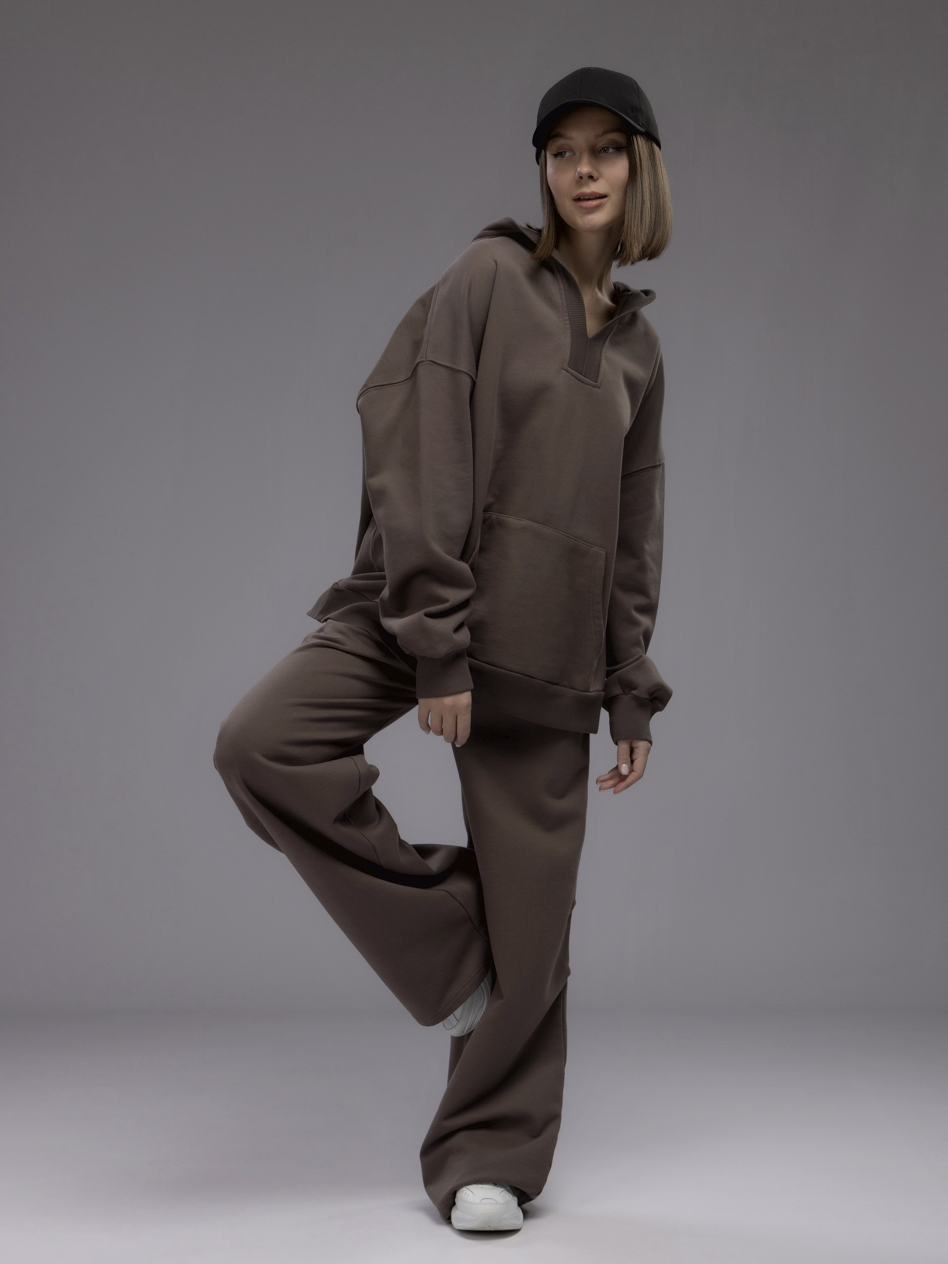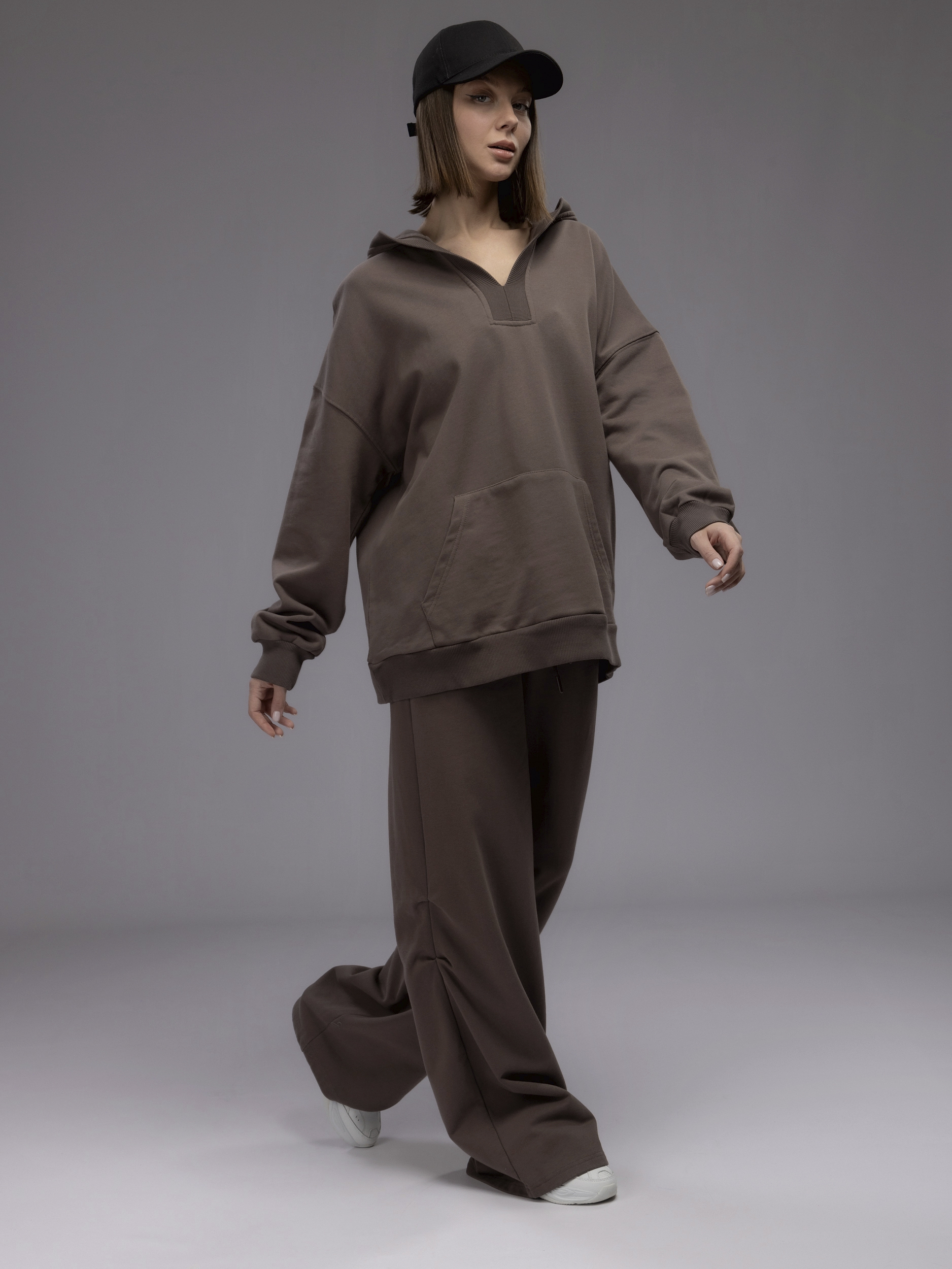 Спортивный костюм оверсайз с капюшоном арт. 5678-19-Brown-SWA1