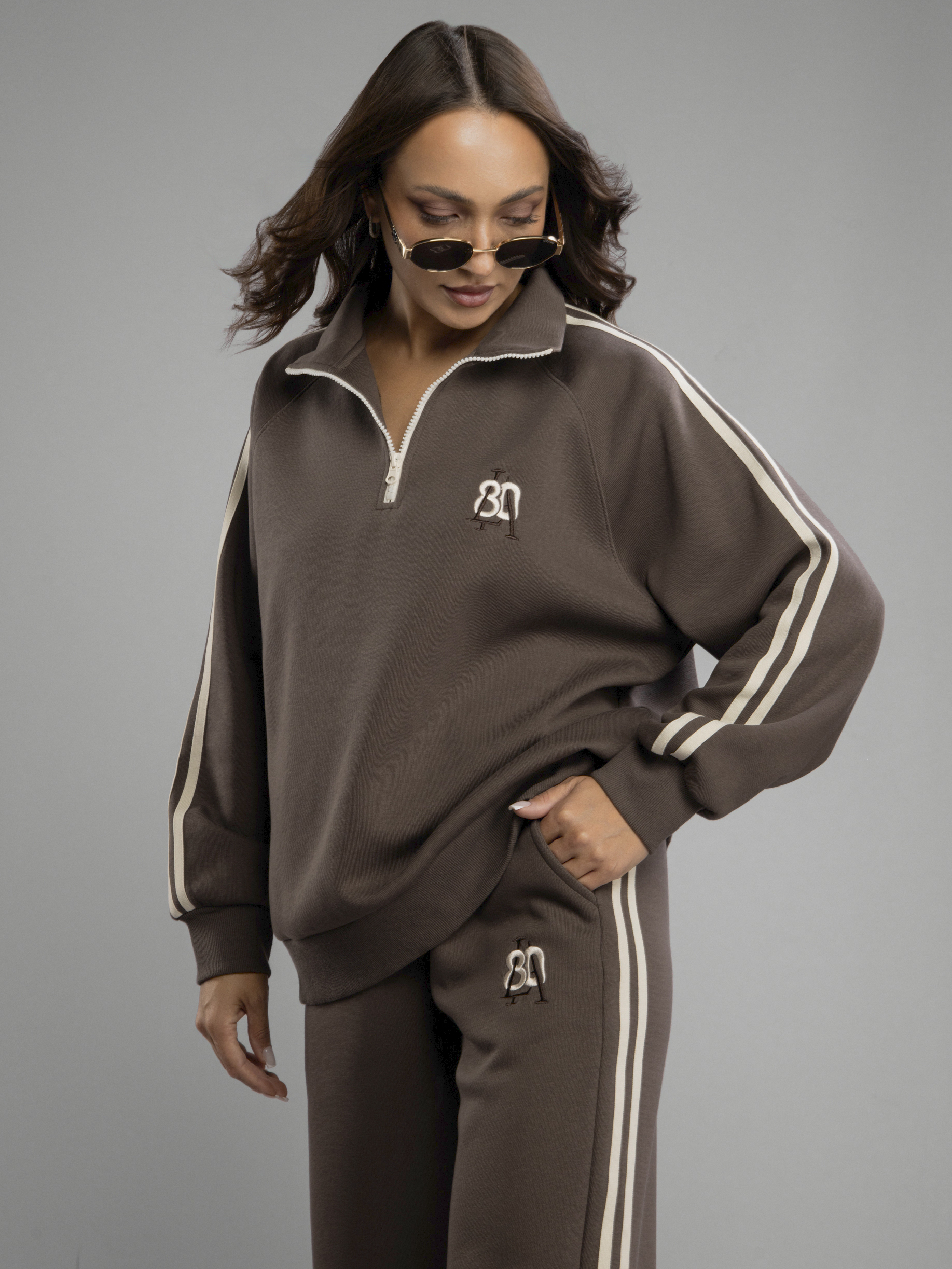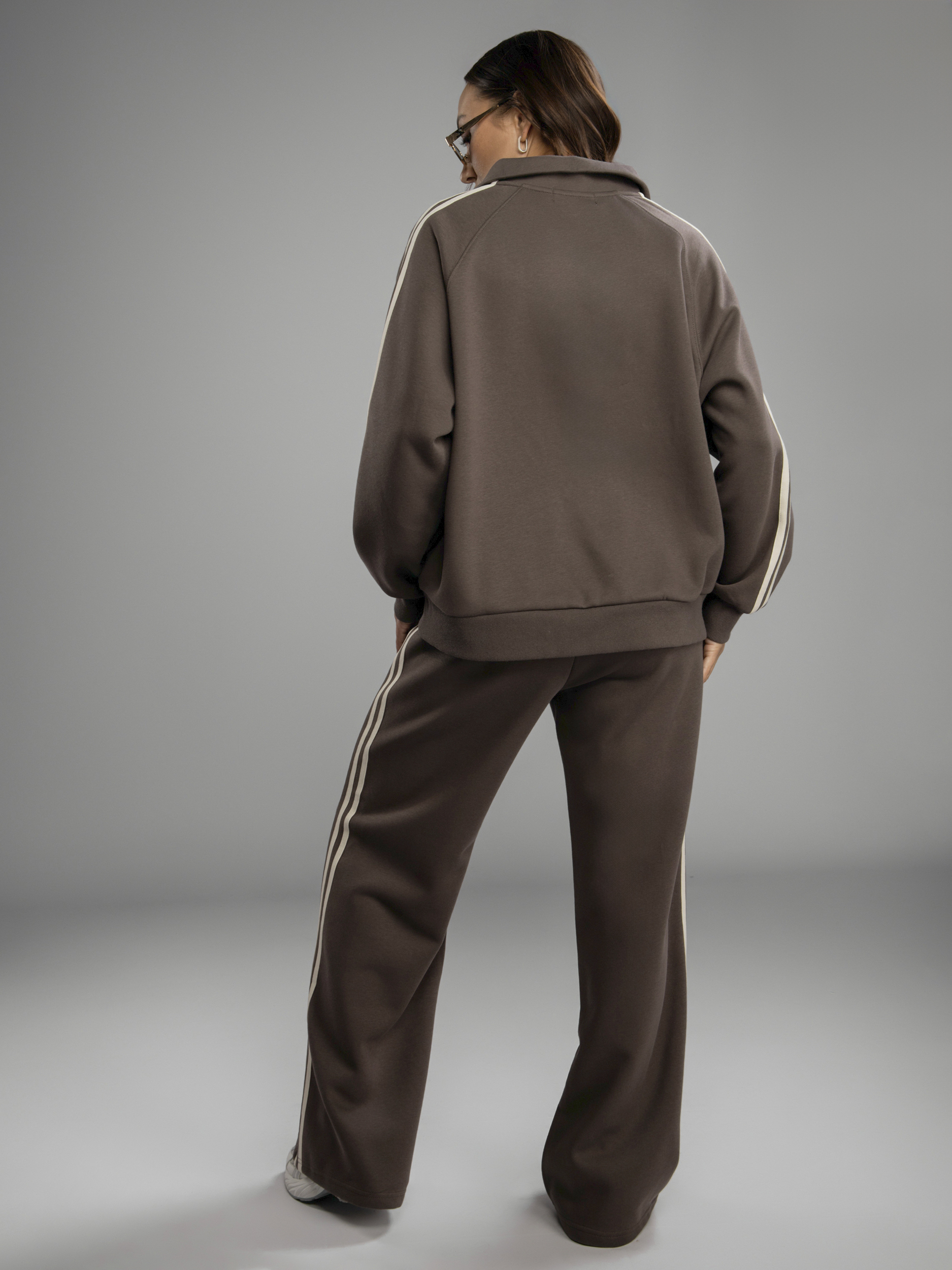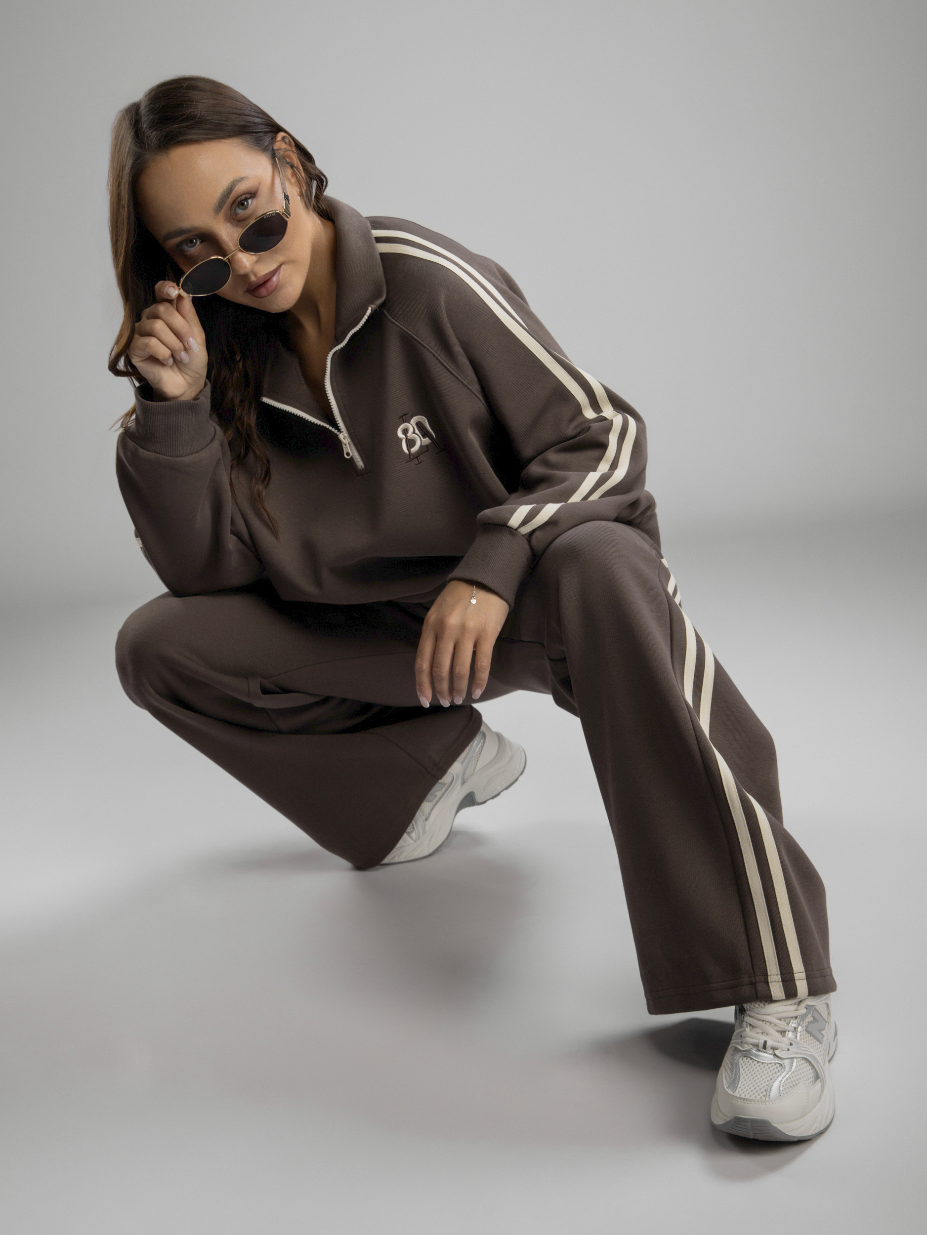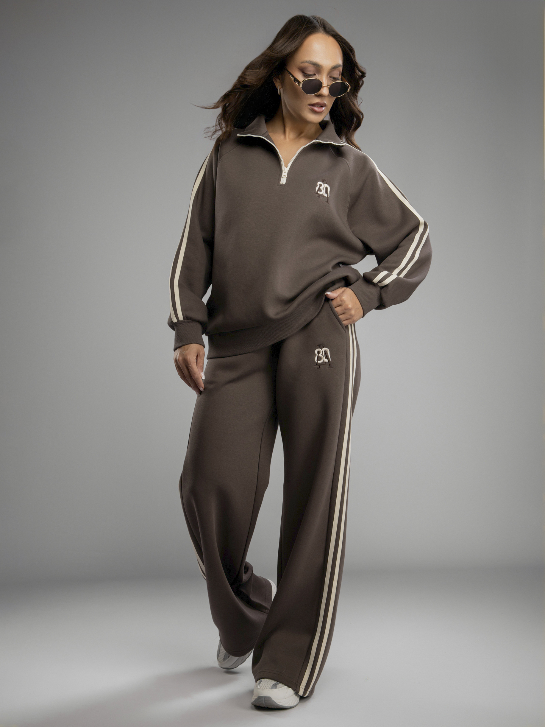 Женский спортивный костюм — это идеальное решение на осень и весну. Приятная на ощупь хлопковая ткань с содержанием полиэстера создает ощущение комфорта в любое время года во время активности, будь то спорт или прогулка по городу. Женский осенний спортивный костюм oversize фасона обеспечивает свободу движений, благодаря чему вы будете чувствовать себя уверенно во время тренировок или занятий физкультурой в школе и на свежем воздухе. Брюки с резинкой удобно сидят на талии, не давят, завязки позволяют дополнительно регулировать посадку брюк, а мягкие штанины позволяют сохранять ощущение комфорта и стильный вид. Широкие брюки из хлопка идеально подходят для спорта и отдыха. Свободная кофта без капюшона обеспечивает свободу движений, а вышивка добавляет яркий акцент к образу. Спортивный женский комплект включает в себя кофту с воротником на молнии, который защитит шею в ветреную погоду или во время пробежек. Этот демисезонный спортивный костюм легко адаптируется к различным погодным условиям. Женская спортивка позволяет сочетать динамику движения и элегантность формы без ущерба модному внешнему виду. Верхняя часть предоставляет широкий выбор стилевых решений: свободный крой оверсайз скрывает недостатки фигуры и подходит как девушке-подростку, так и женщине. Демисезонный женский костюм подходит для невысоких и высоких дам. Также этот спортивный костюм на осень можно считать идеальным для занимающихся фитнесом или бегом, потому что каждая деталь здесь разработана с учетом высокого уровня комфорта на тренировке. Завязки на брюках позволяют дополнительно регулировать размер в области талии. Спортивный костюм оверсайз отлично подходит для повседневного ношения. Общее оформление создано таким образом, чтобы быть актуальным вне зависимости от сезона: будь то переменчивая весенняя погода или осенняя прохлада.