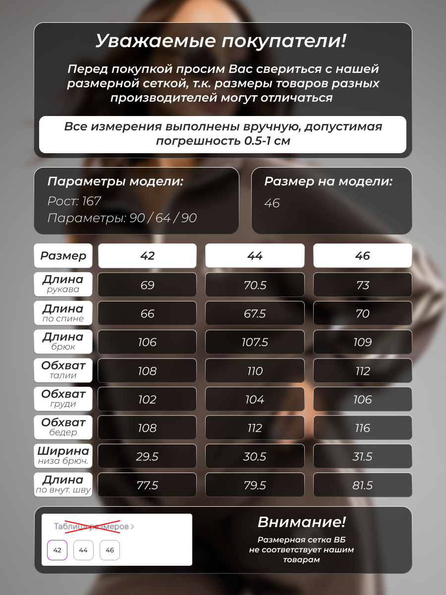 Параметры модели на фото (ОГ-ОТ-ОБ)