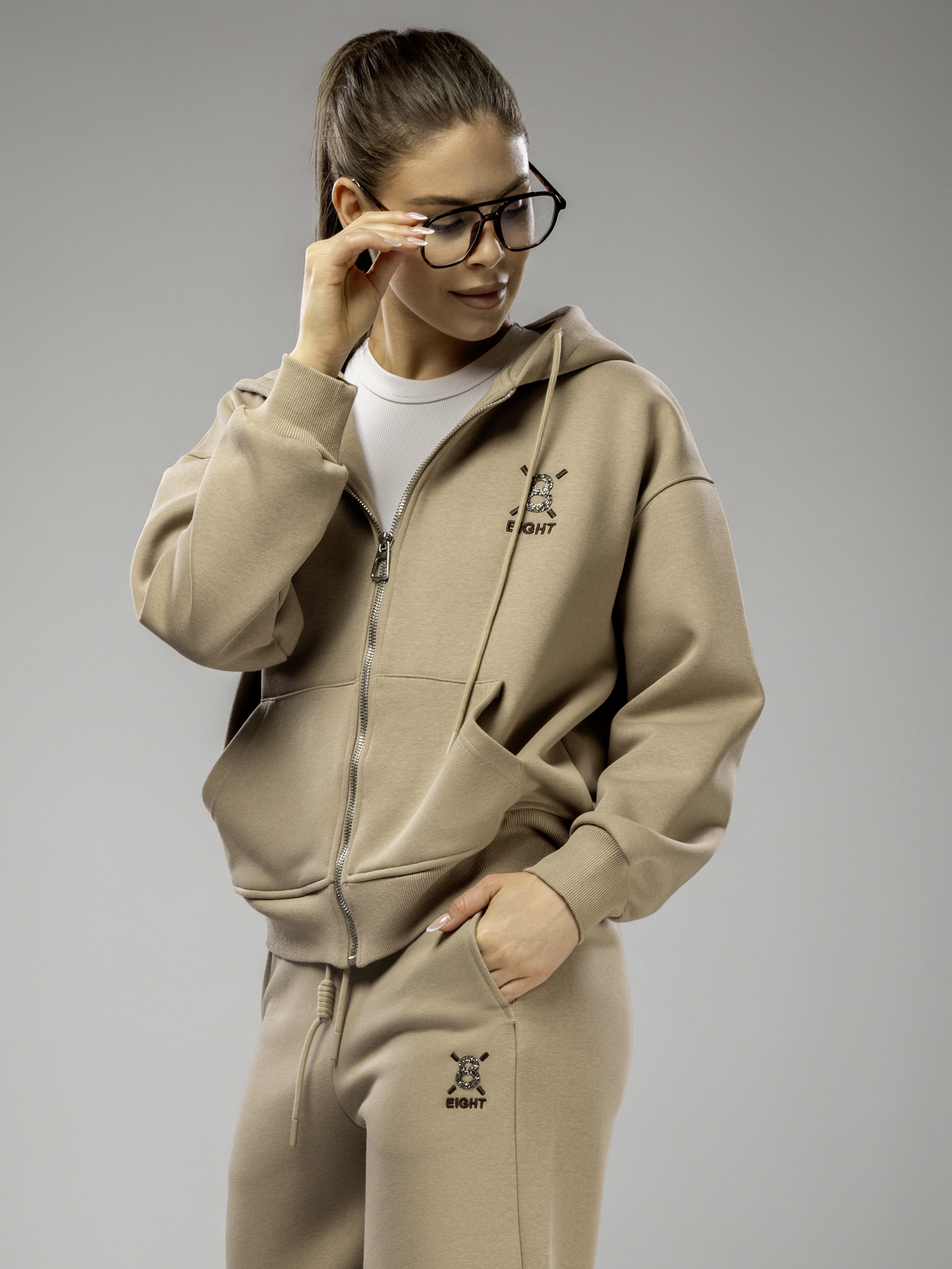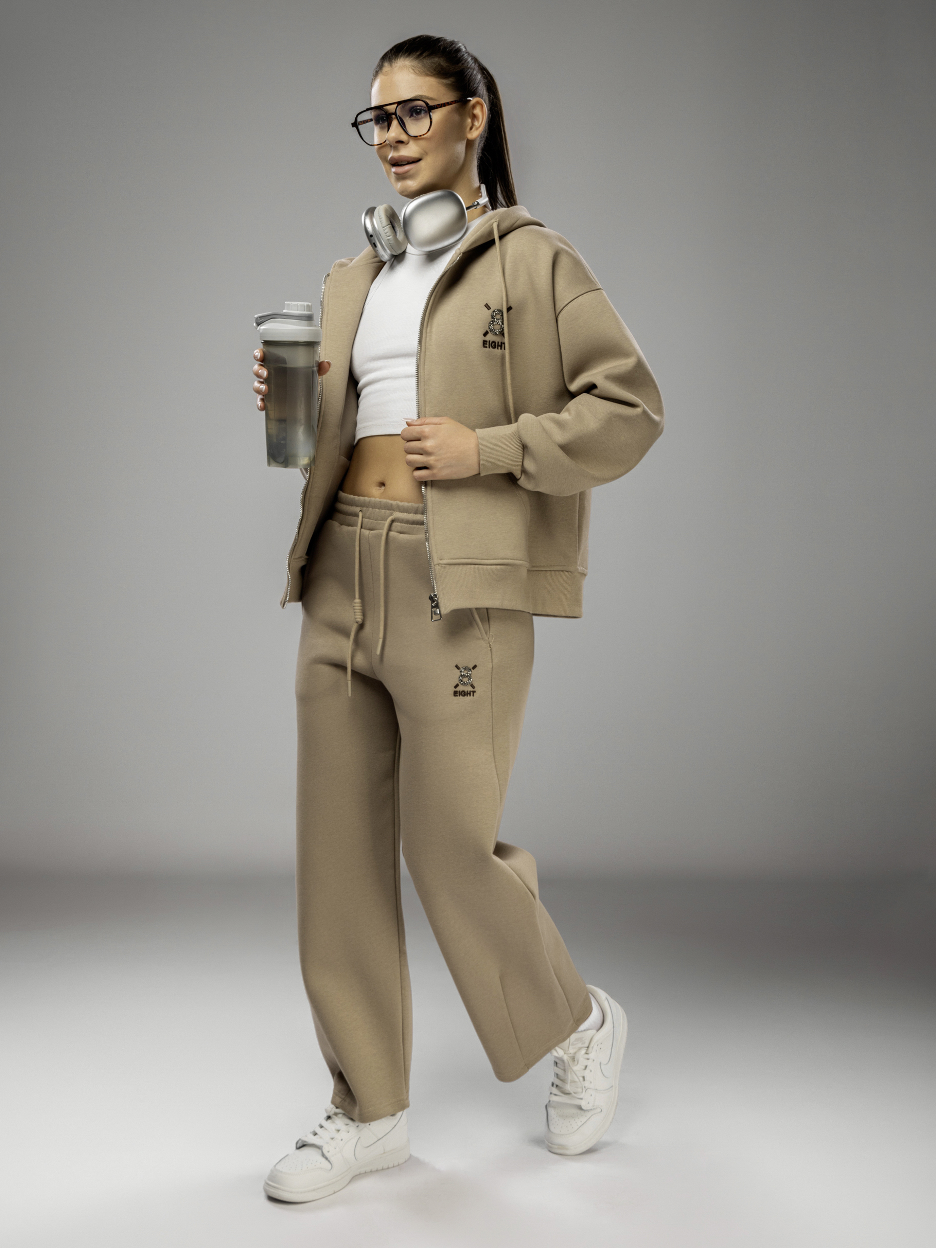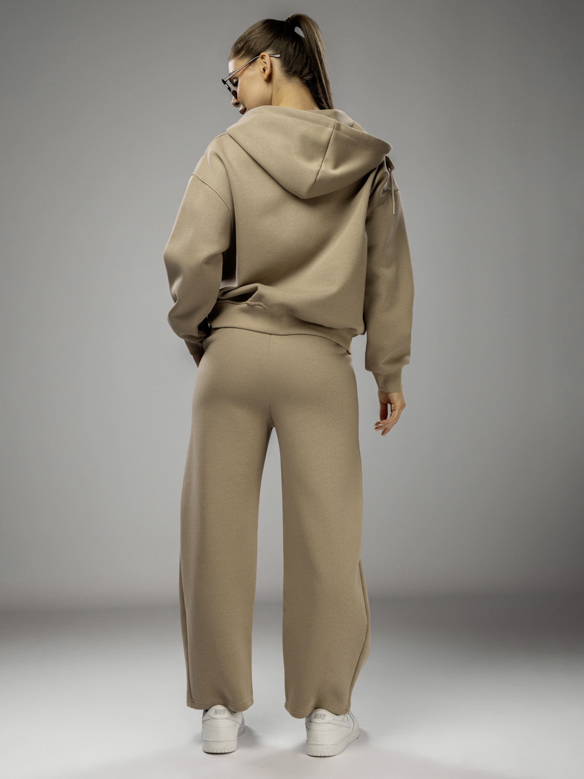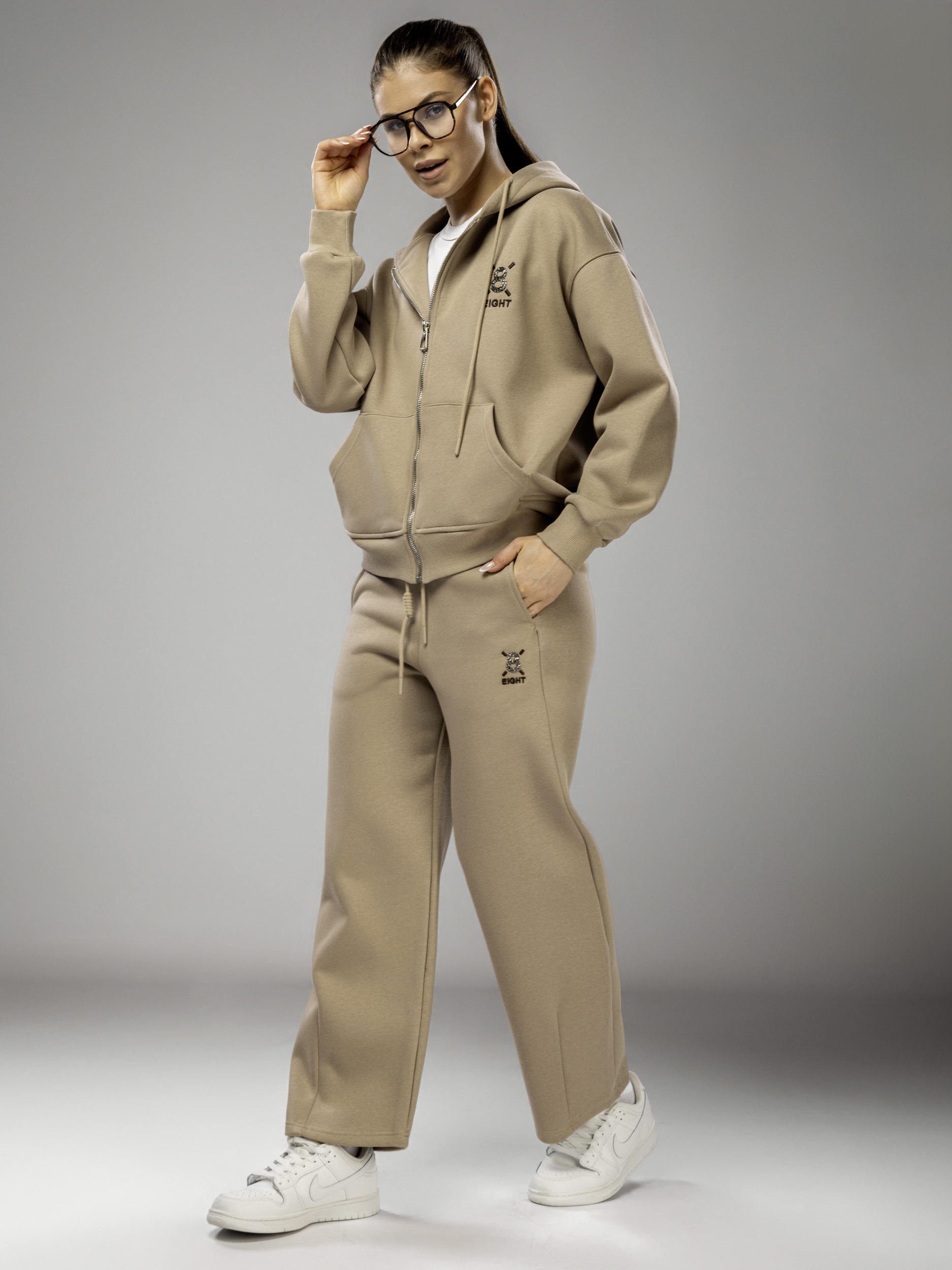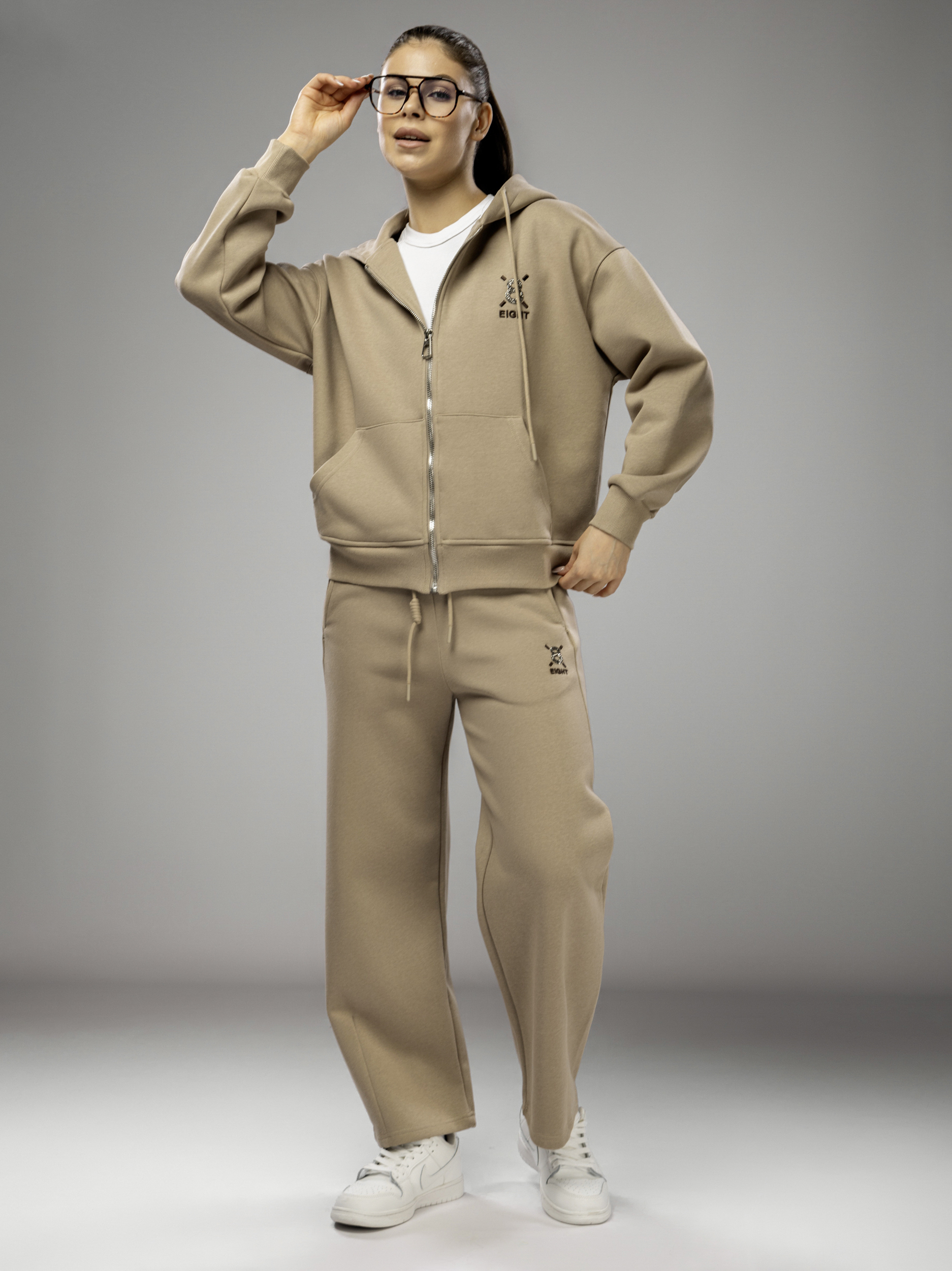 Толстовка украшена аккуратной вышивкой и надписью, что придает женскому комплекту стильный и современный вид. Капюшон несъемный, обеспечивает дополнительный комфорт в ветреную погоду. Рукава дополнены эластичными манжетами, которые обеспечивают комфортную посадку и не сковывают движений во время активного отдыха и спорта. Широкие брюки на регулируемом поясе подходят девушкам и подросткам с любым типом фигуры. Спортивный костюм женский без начеса остается легким и дышащим даже в теплое время года. Элементы декора и аккуратная отделка подчеркивают женственный силуэт, а оверсайз посадка обеспечивает свободу движений. Широкие брюки и толстовка на молнии гармонично сочетаются между собой, создавая завершенный образ. Приятная на ощупь текстура подходит для чувствительной кожи, не вызывает раздражения. Костюм повседневный с брюками рассчитан на длительное использование, не теряет форму после стирки, сохраняет насыщенность цвета.