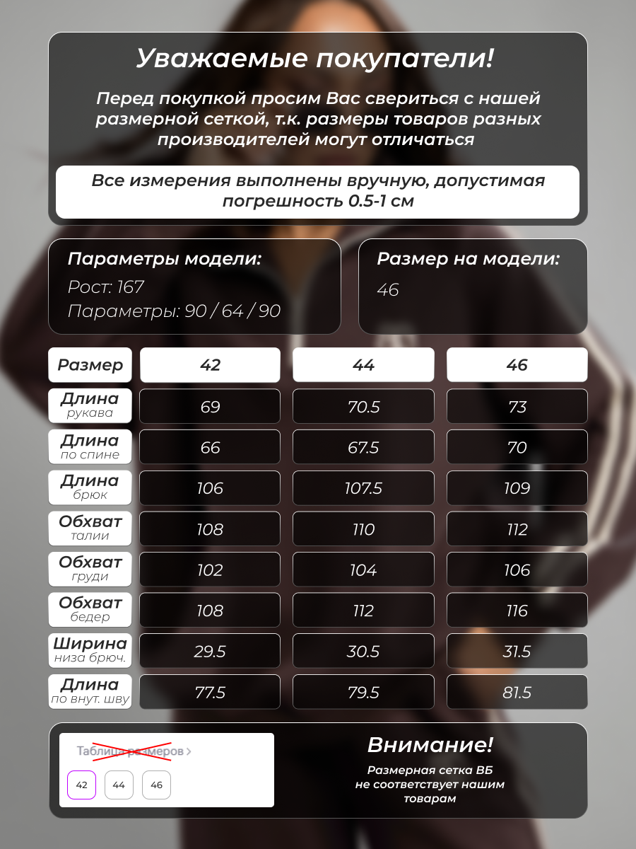 Параметры модели на фото (ОГ-ОТ-ОБ)