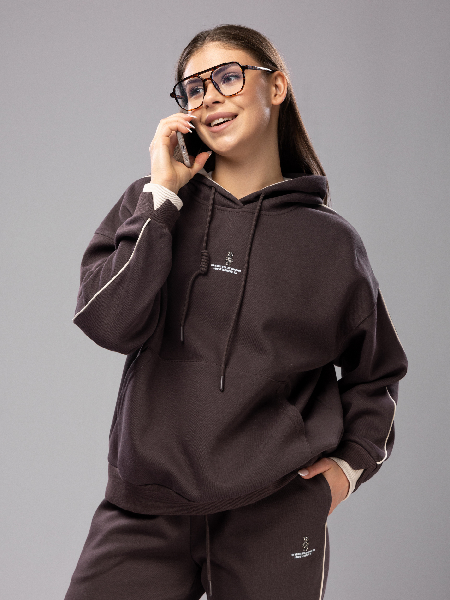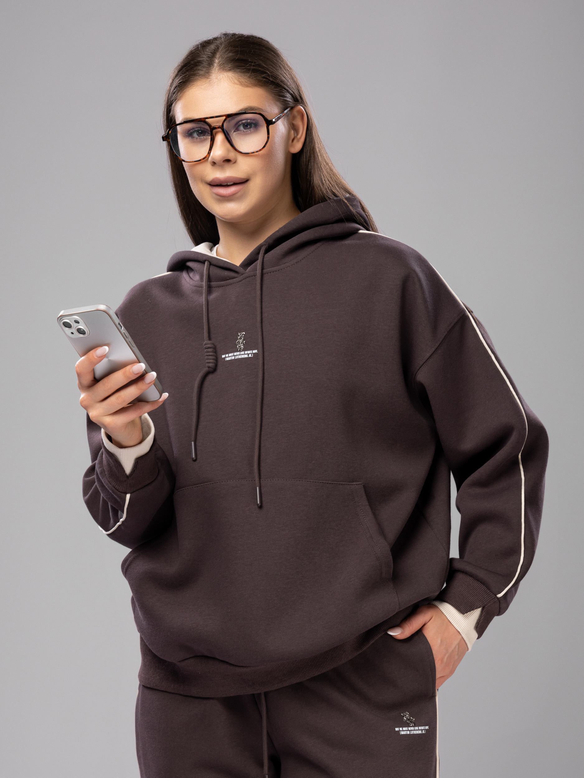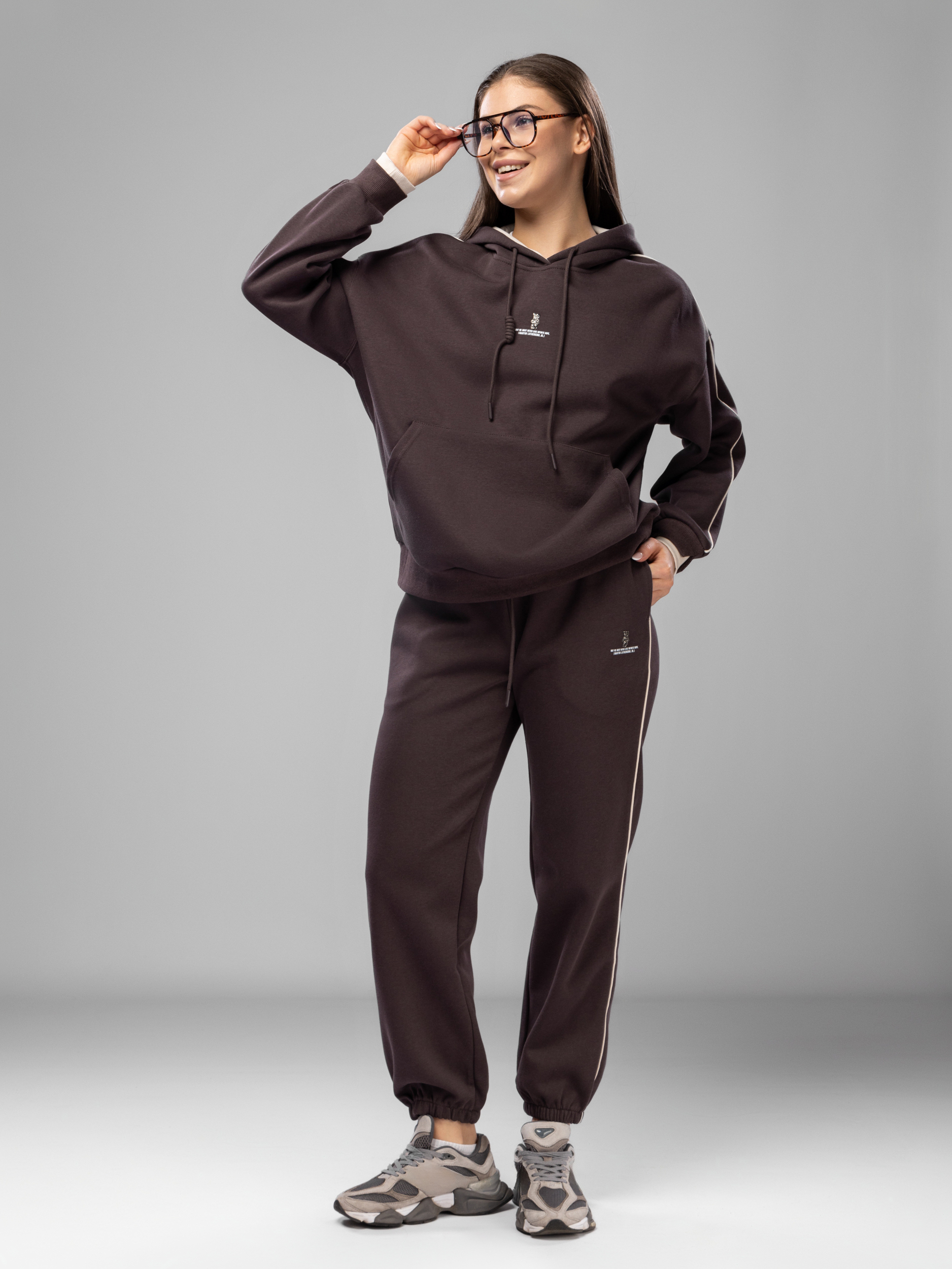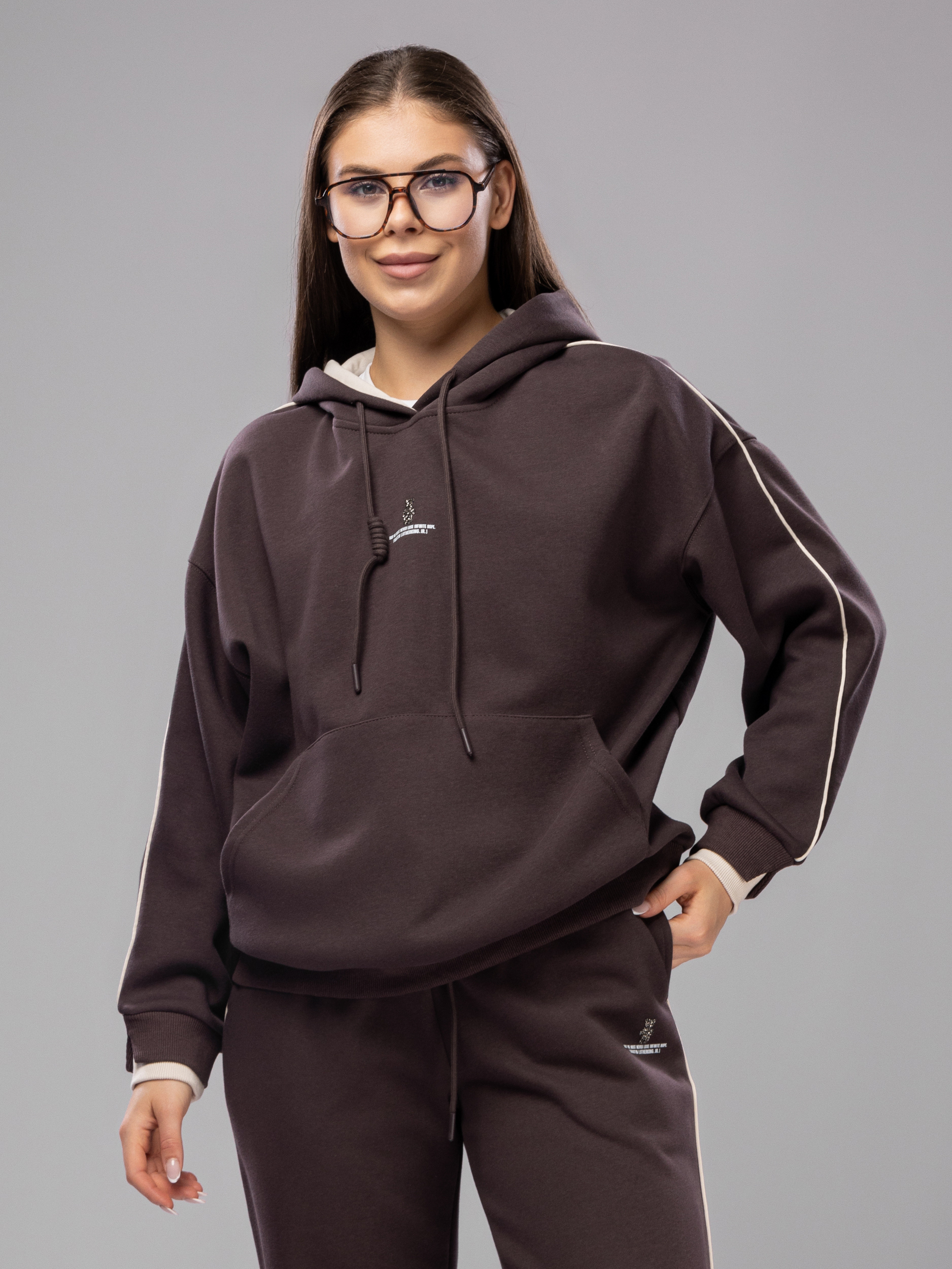 Худи без начеса украшен аккуратной вышивкой, что придает женскому комплекту стильный и современный вид. Рукава дополнены эластичными манжетами, которые обеспечивают комфортную посадку и не сковывают движений во время активного отдыха и спорта. Джоггеры на регулируемом поясе подходят девушкам и подросткам с любым типом фигуры. Спортивный костюм женский без начеса остается легким и дышащим даже в теплое время года. Элементы декора и аккуратная отделка подчеркивают женственный силуэт, а оверсайз посадка обеспечивает свободу движений. Штаны с манжетами и худи гармонично сочетаются между собой, создавая завершенный образ. Приятная на ощупь текстура подходит для чувствительной кожи, не вызывает раздражения. Костюм повседневный с брюками рассчитан на длительное использование, не теряет форму после стирки, сохраняет насыщенность цвета.