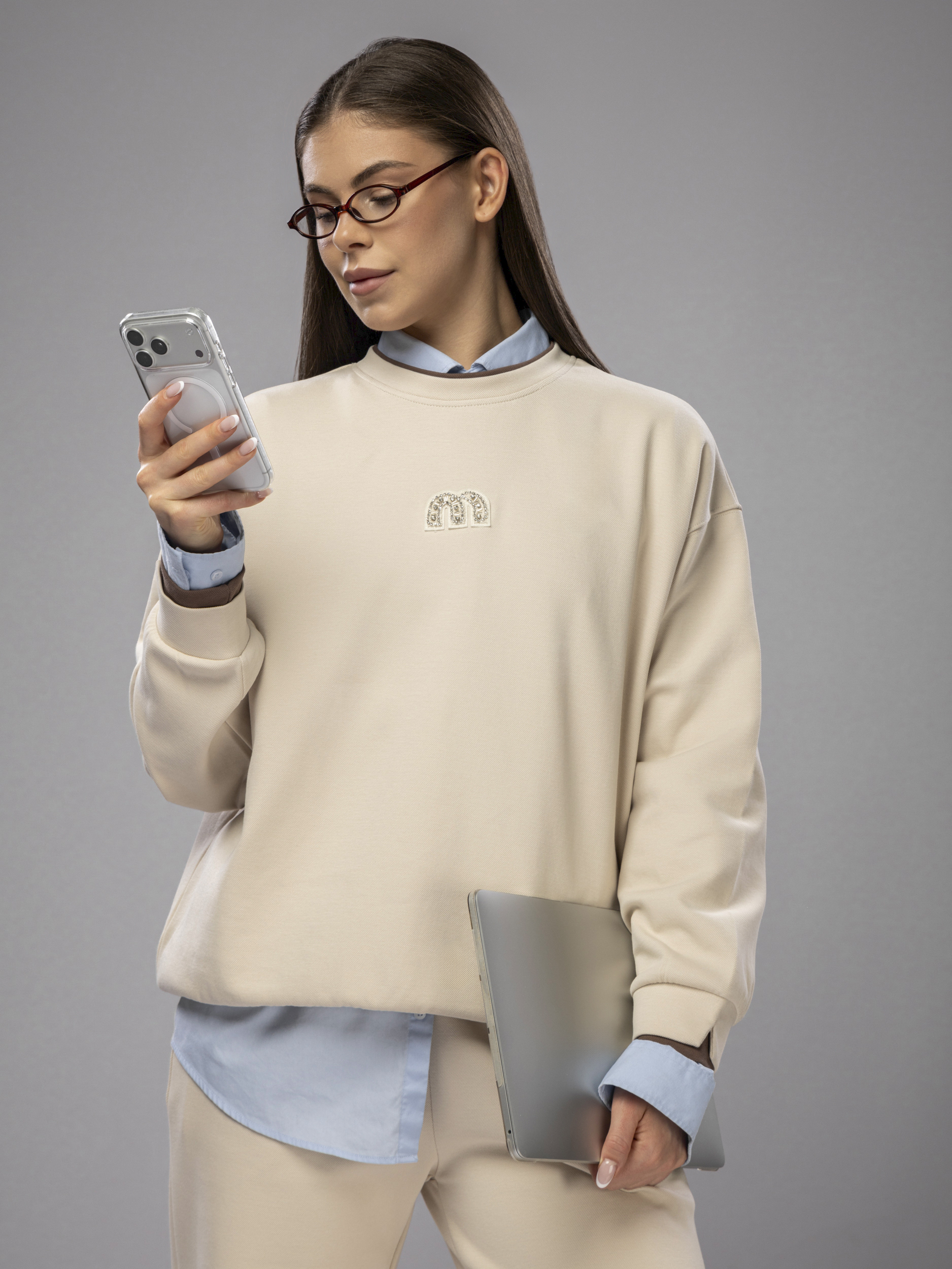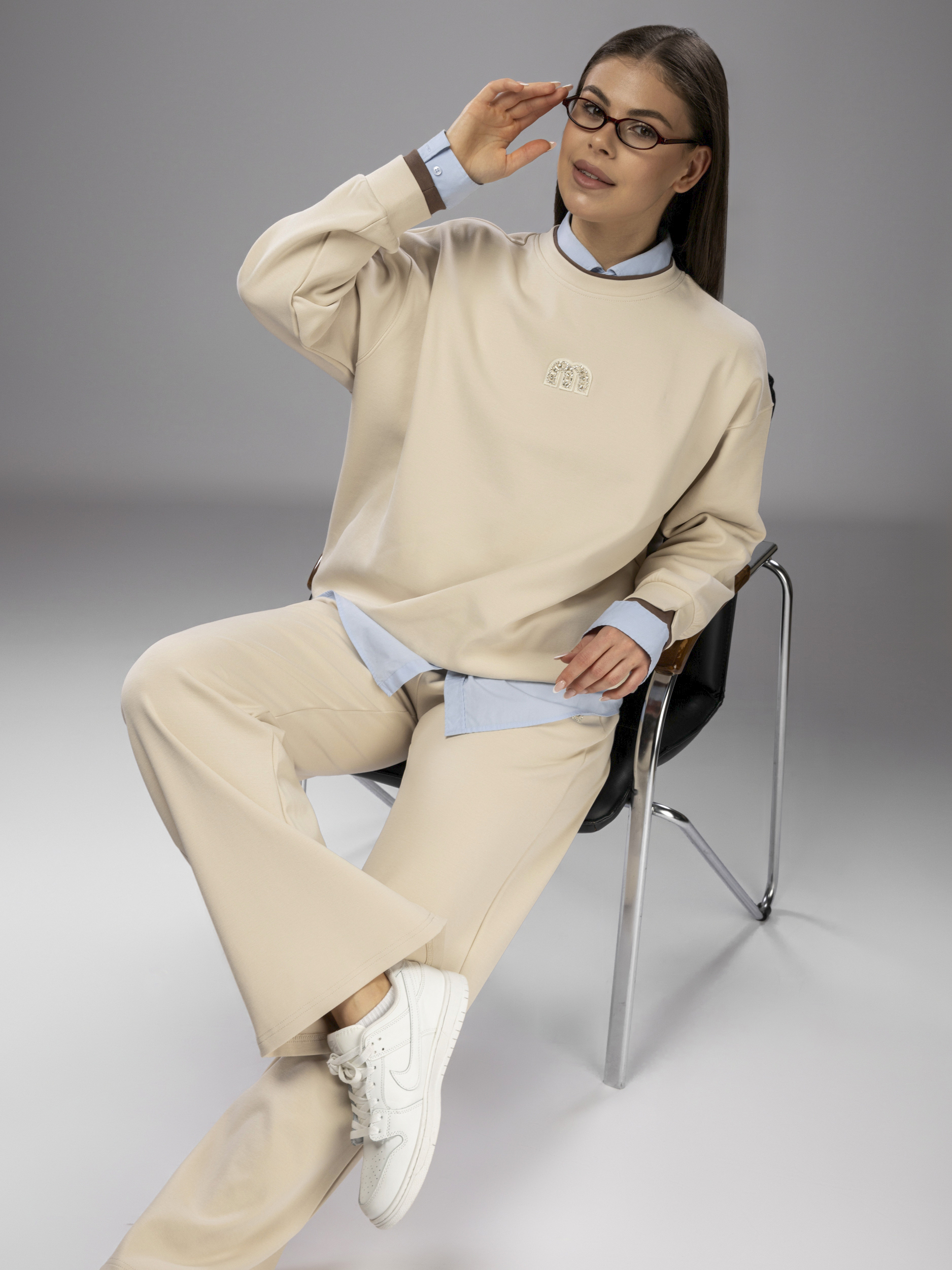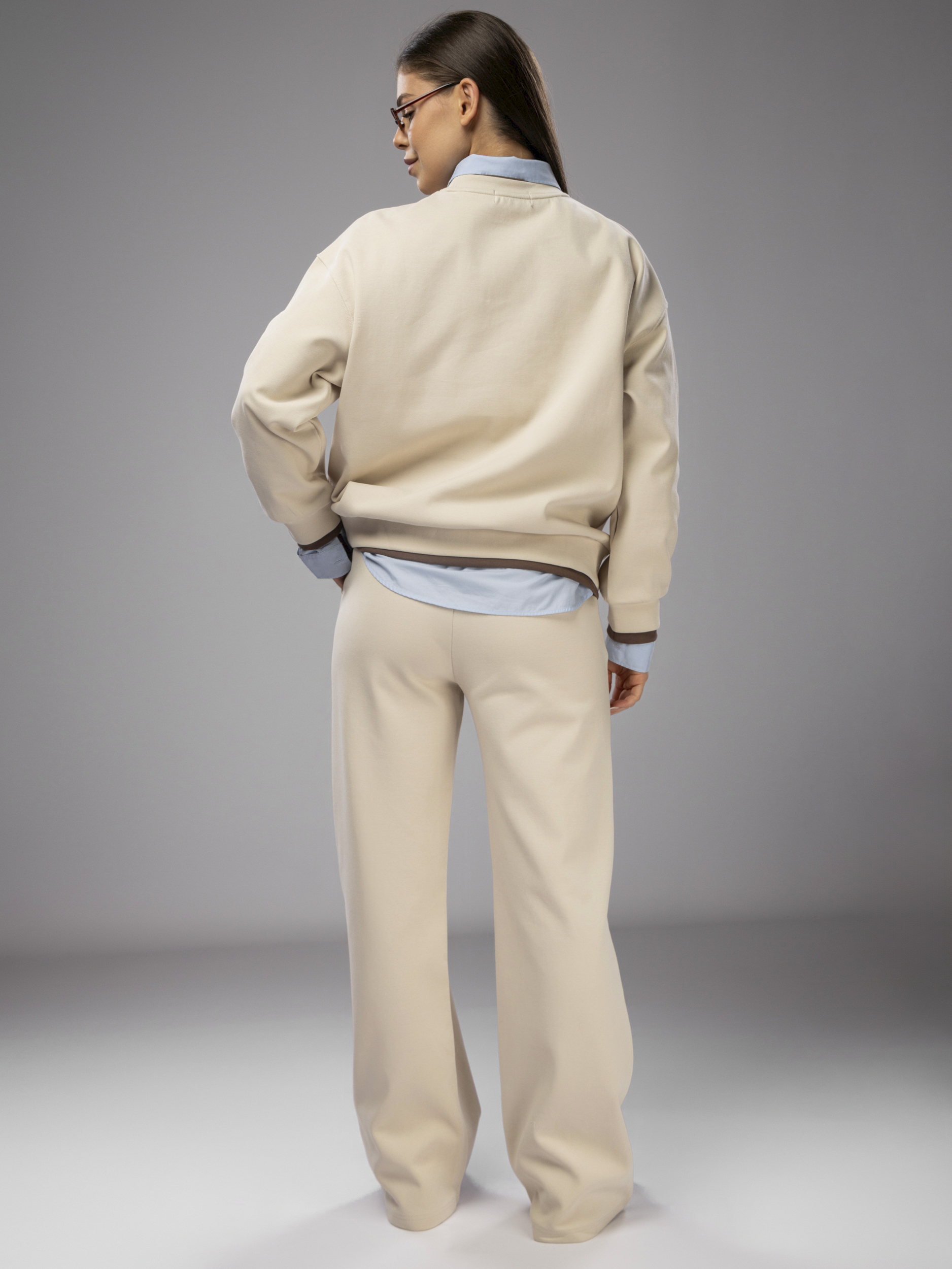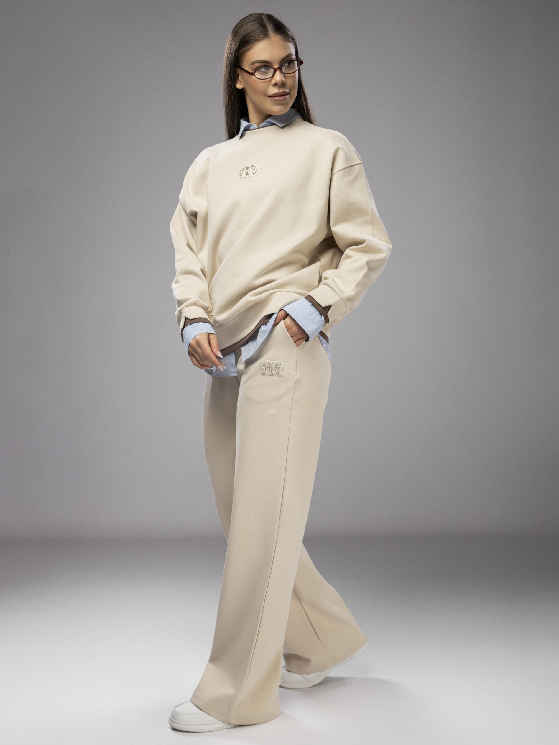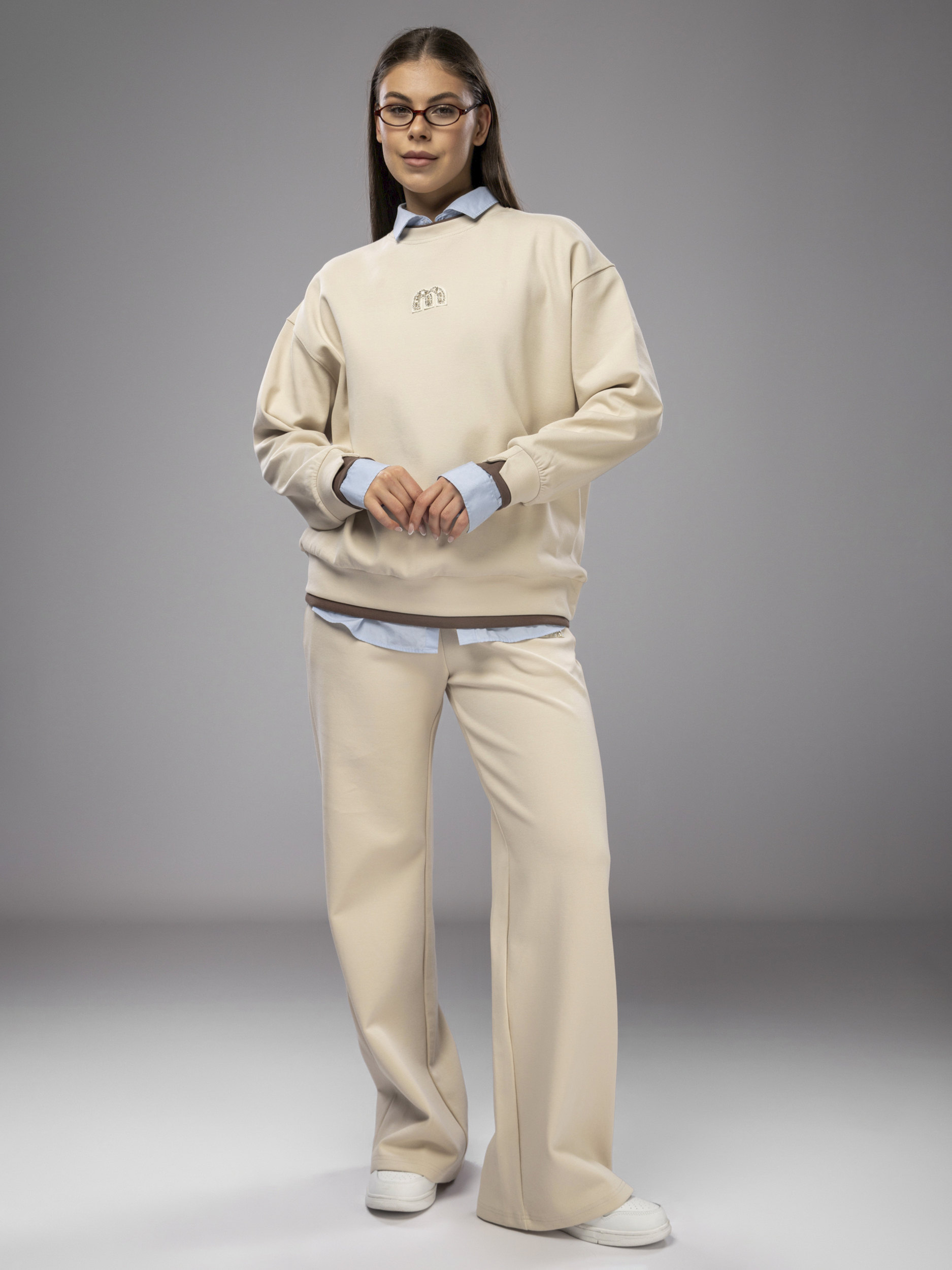 Свитшот украшен аккуратной нашивкой, что придает женскому комплекту стильный и современный вид. Рукава дополнены эластичными манжетами, которые обеспечивают комфортную посадку и не сковывают движений во время активного отдыха и спорта. Брюки палаццо на регулируемом поясе подходят девушкам и подросткам с любым типом фигуры. Спортивный костюм женский без начеса остается легким и дышащим даже в теплое время года. Элементы декора и аккуратная отделка подчеркивают женственный силуэт, а оверсайз посадка обеспечивает свободу движений. Широкие штаны и свитшот гармонично сочетаются между собой, создавая завершенный образ. Приятная на ощупь текстура подходит для чувствительной кожи, не вызывает раздражения. Костюм повседневный с брюками рассчитан на длительное использование, не теряет форму после стирки, сохраняет насыщенность цвета.