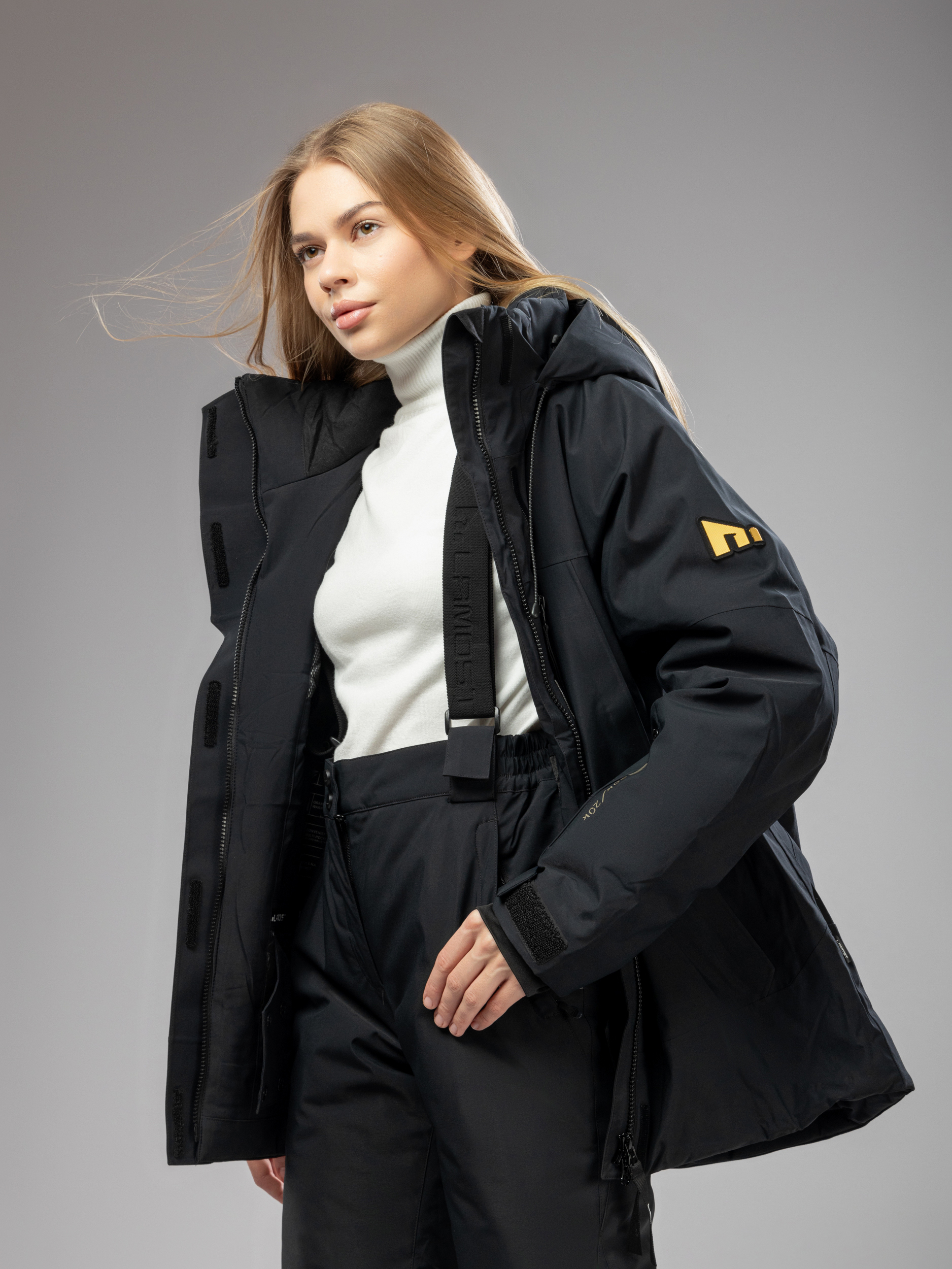 Дополнительные элементы усиливают защиту: прочная молния, высокий ворот и регулируемый капюшон помогают надёжно укрыться от ветра и осадков. Манжеты и функциональные карманы делают зимний женский костюм ещё более удобным. Женские зимние штаны на подтяжках позволяют регулировать их по высоте и надежно фиксировать на теле. В таких деталях проявляется баланс практичности и современного дизайна.