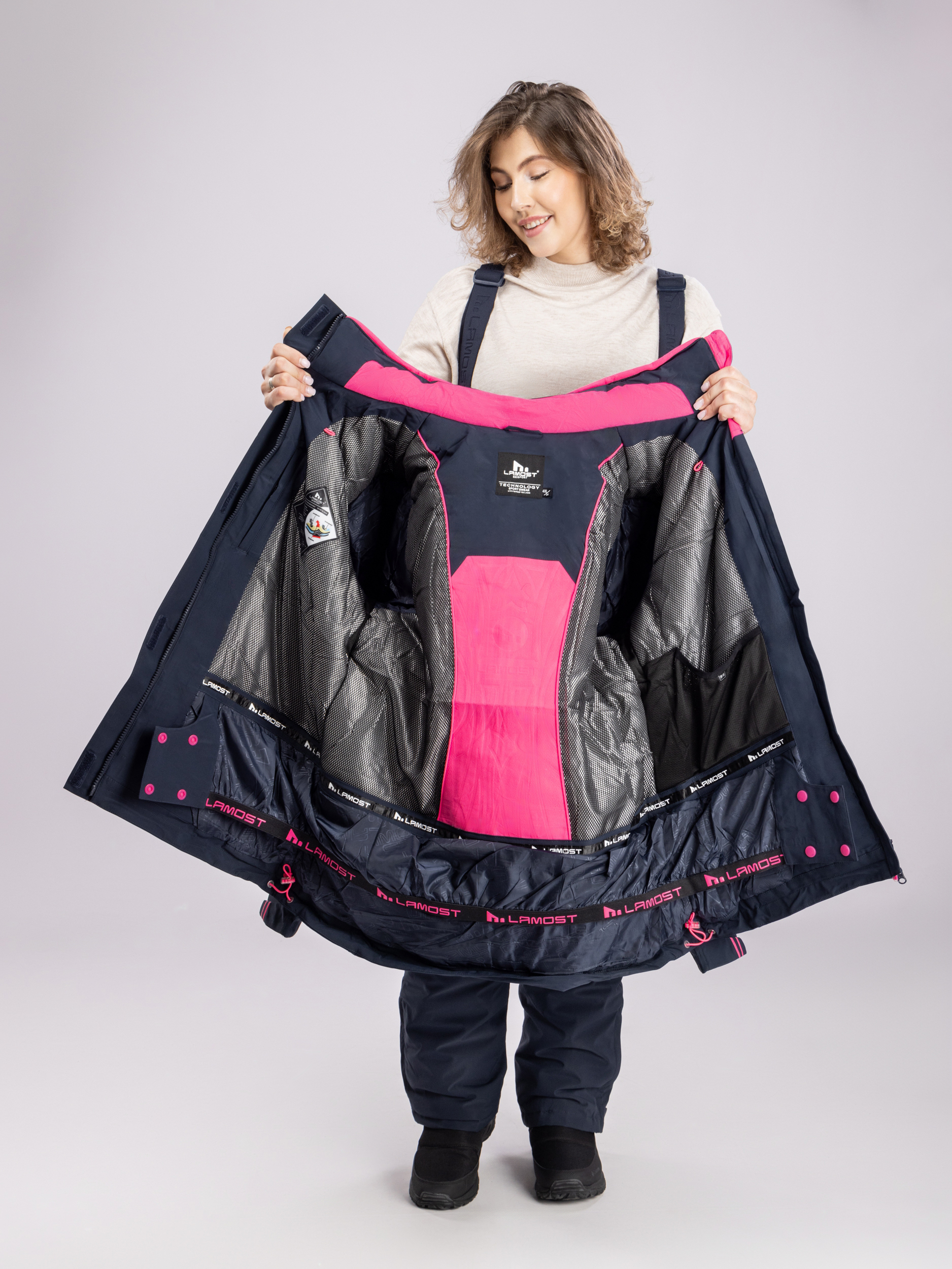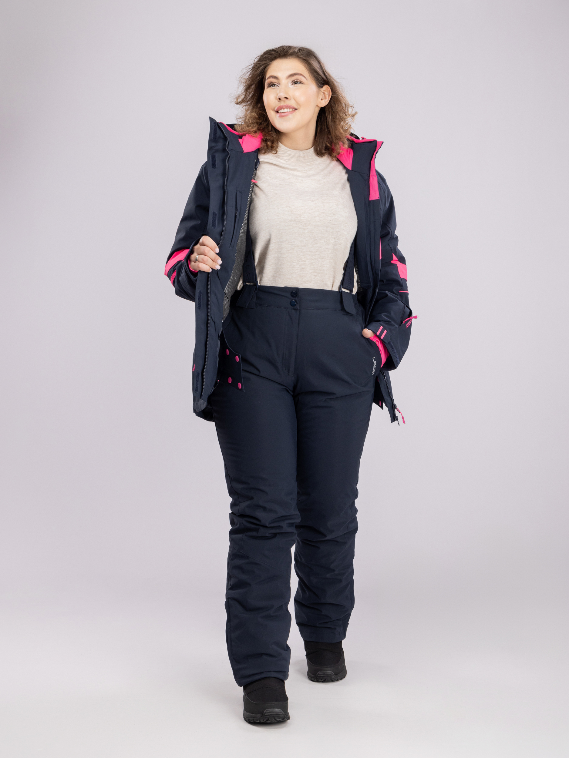 Дополнительные элементы усиливают защиту: прочная молния, высокий ворот и регулируемый капюшон помогают надёжно укрыться от ветра и осадков. Манжеты и функциональные карманы делают зимний женский костюм ещё более удобным. Женские зимние штаны на подтяжках позволяют регулировать их по высоте и надежно фиксировать на теле. В таких деталях проявляется баланс практичности и современного дизайна.