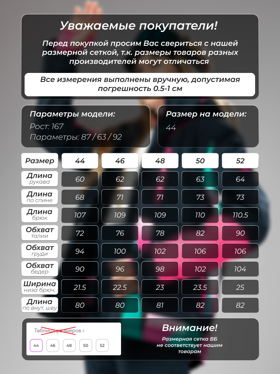 Параметры модели на фото (ОГ-ОТ-ОБ)