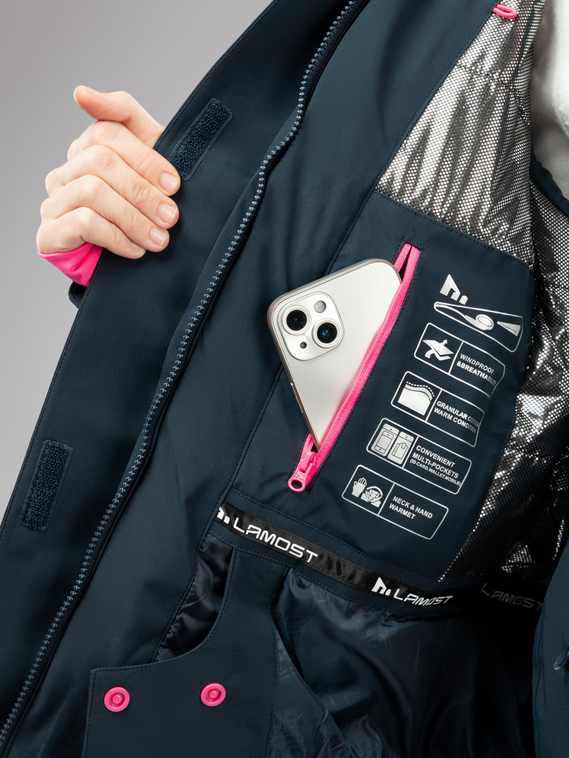 Женский горнолыжный костюм создан для тех, кто ценит комфорт и защиту в холодное время года. Мембранный материал обеспечивает влагозащиту, делая изделие непромокаемым и непродуваемым, а морозостойкий утеплитель хорошо сохраняет тепло до -40 °C и позволяет чувствовать себя уютно даже при сильном ветре и снегопаде.