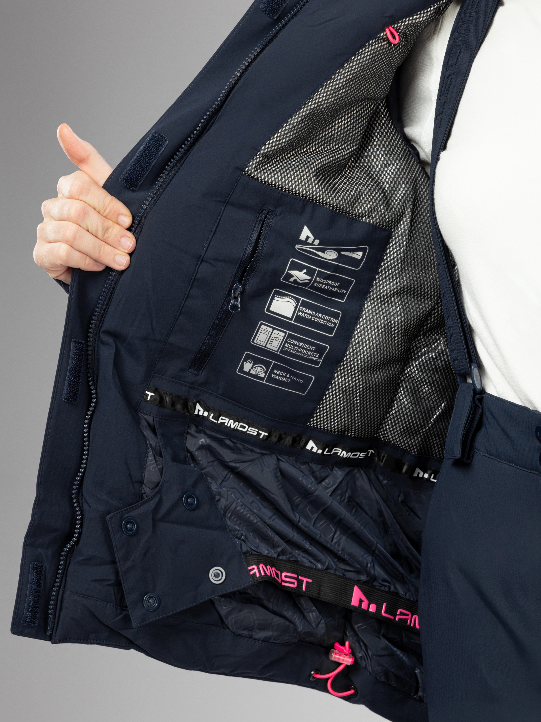 Дополнительные элементы усиливают защиту: прочная молния, высокий ворот и регулируемый капюшон помогают надёжно укрыться от ветра и осадков. Манжеты и функциональные карманы делают зимний женский костюм ещё более удобным. Женские зимние штаны на подтяжках позволяют регулировать их по высоте и надежно фиксировать на теле. В таких деталях проявляется баланс практичности и современного дизайна.