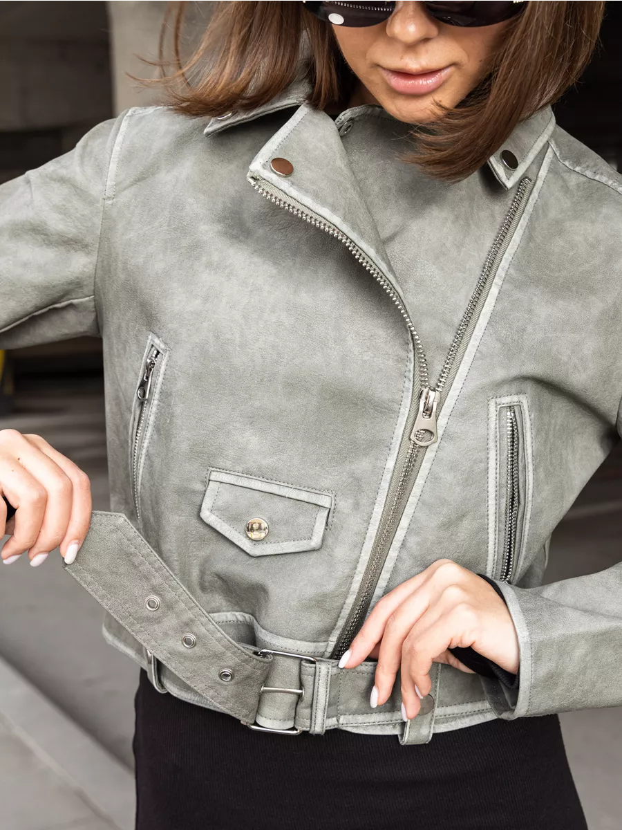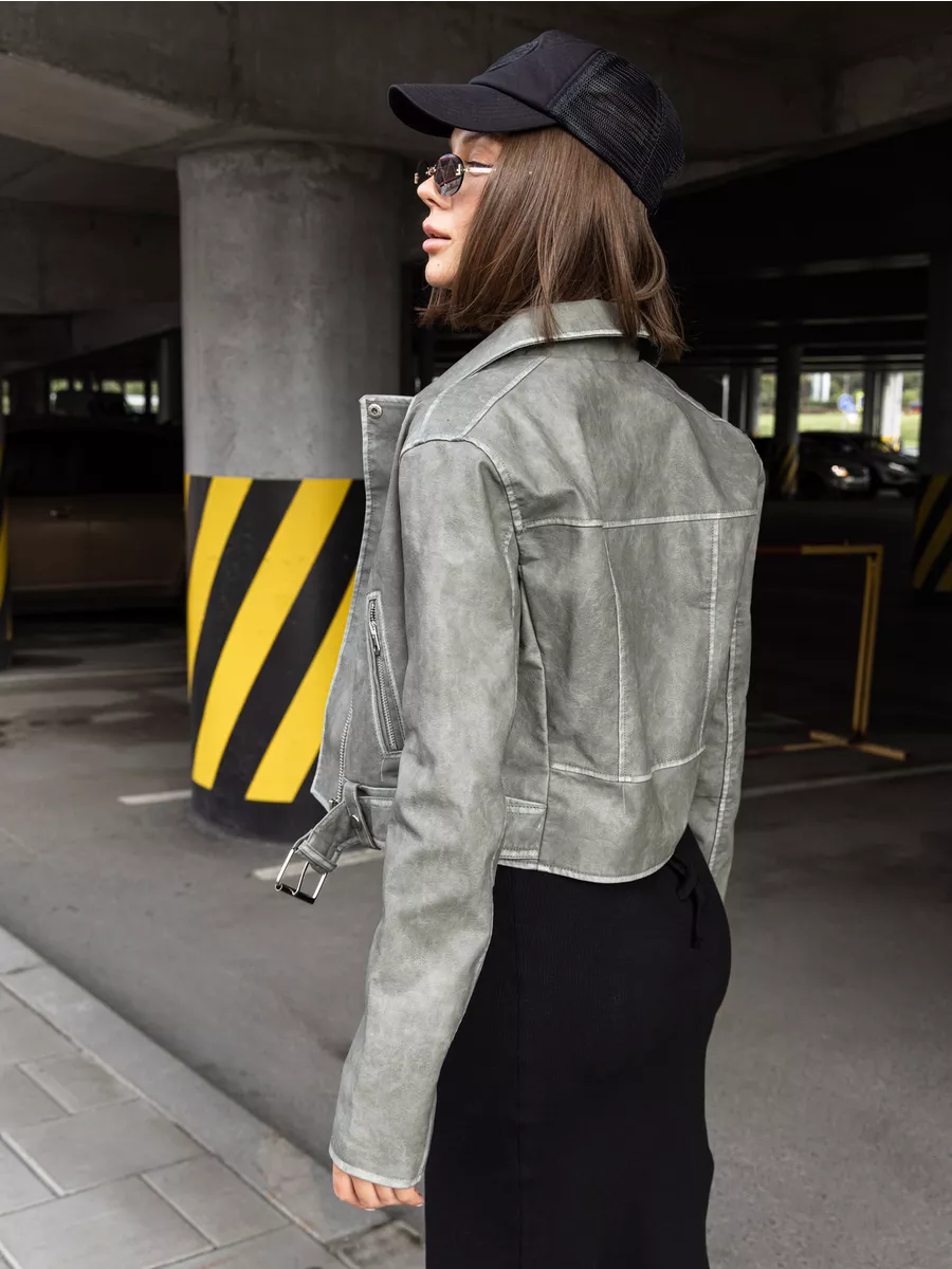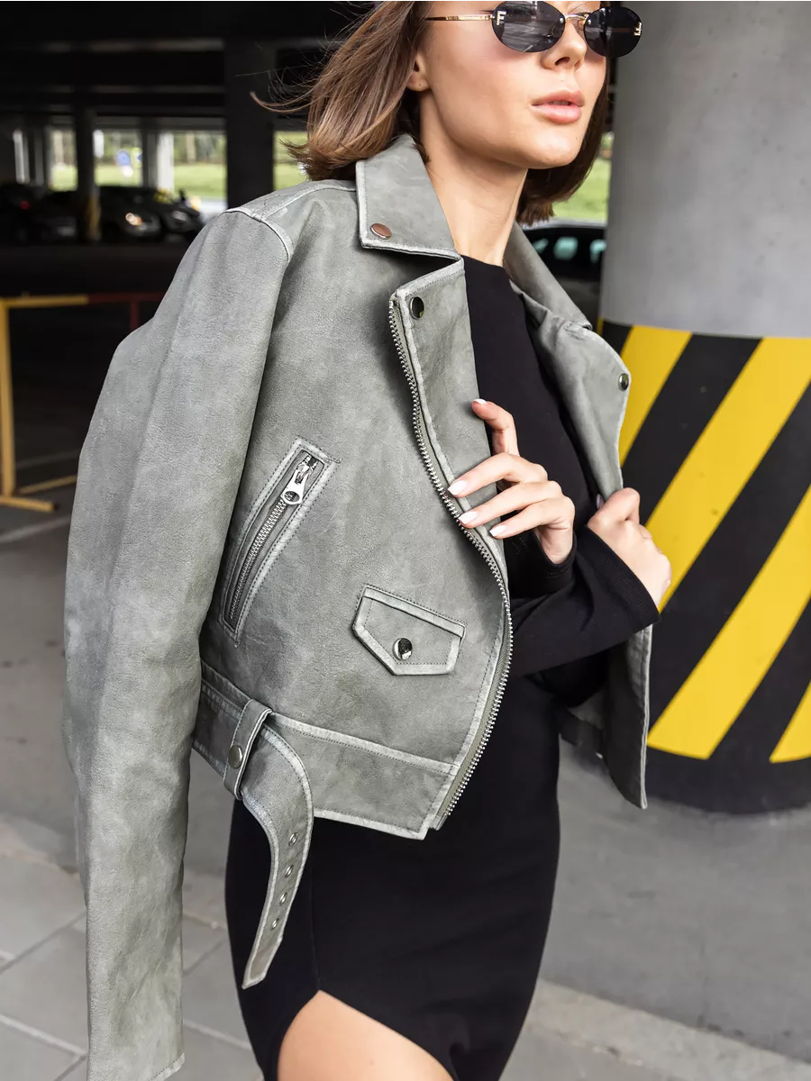 Косуха оверсайз кожаная куртка экокожа арт. 2410-Grey-olive-WJCA1