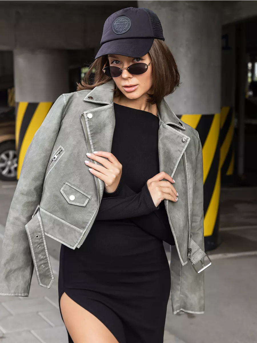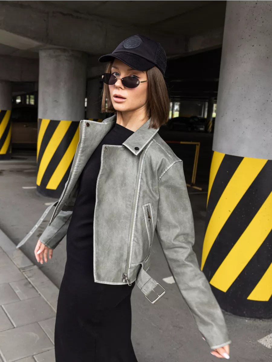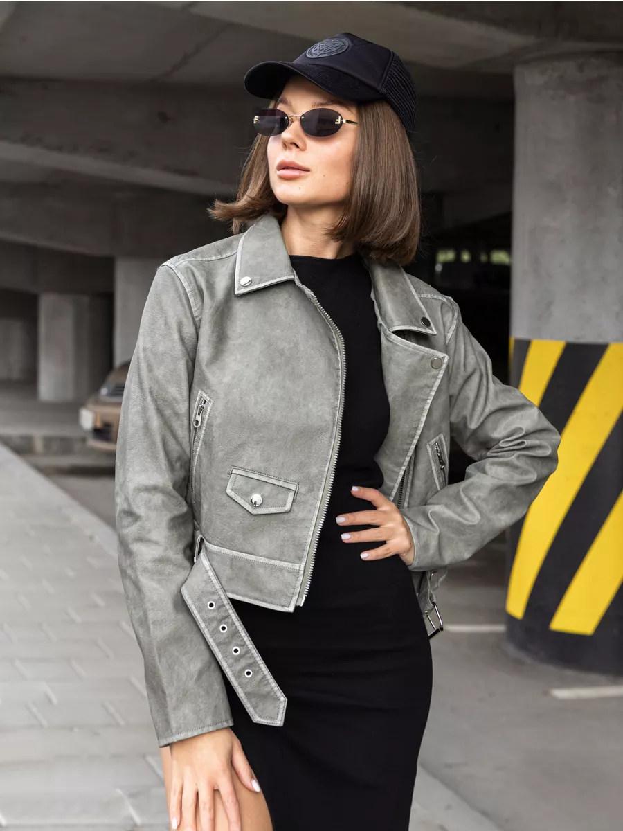 Косуха оверсайз кожаная куртка экокожа арт. 2410-Grey-olive-WJCA1