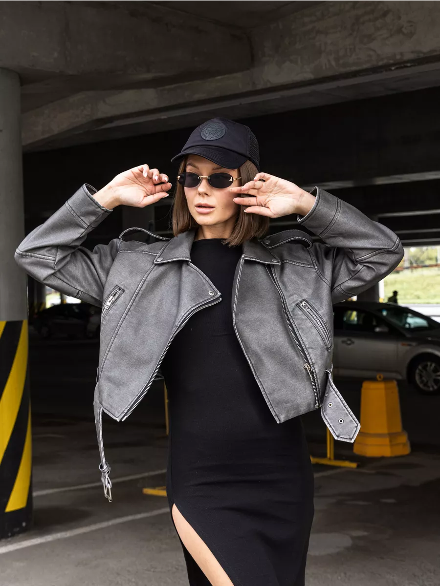 Косуха оверсайз кожаная куртка экокожа арт. 2371-D-Gray-WJCA1