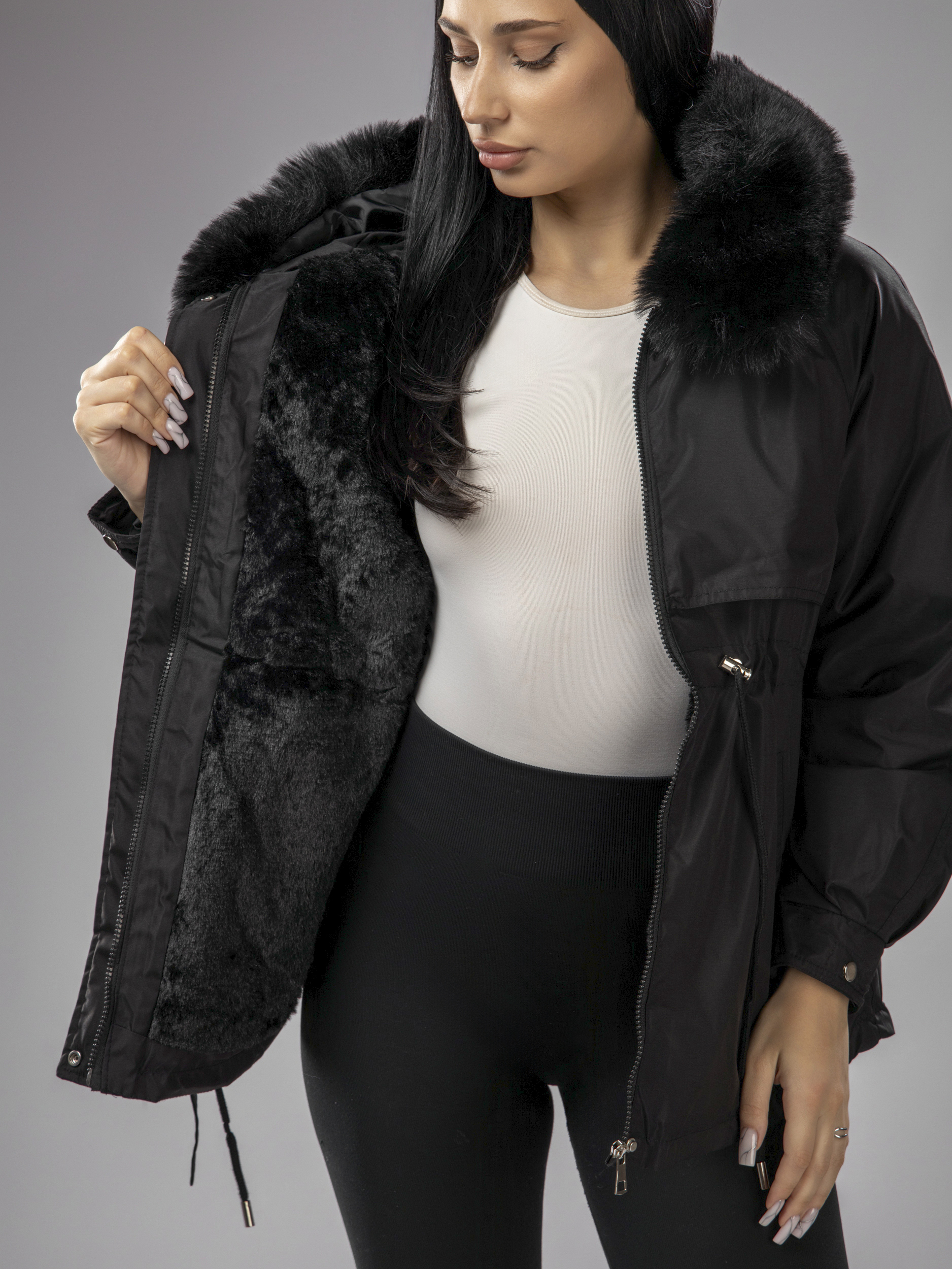 Женская зимняя парка с капюшоном идеально подходит для переменчивой погоды зимой и осенью. Куртка выполнена из непромокаемого материала, что защищает от ветра, снега и дождя, а меховой воротник добавляет стильный акцент. Приталенный крой подчеркивает фигуру, а капюшон с искусственным мехом создает дополнительный уют в прохладные дни. Съемная опушка придает образу элегантность и завершенность.
