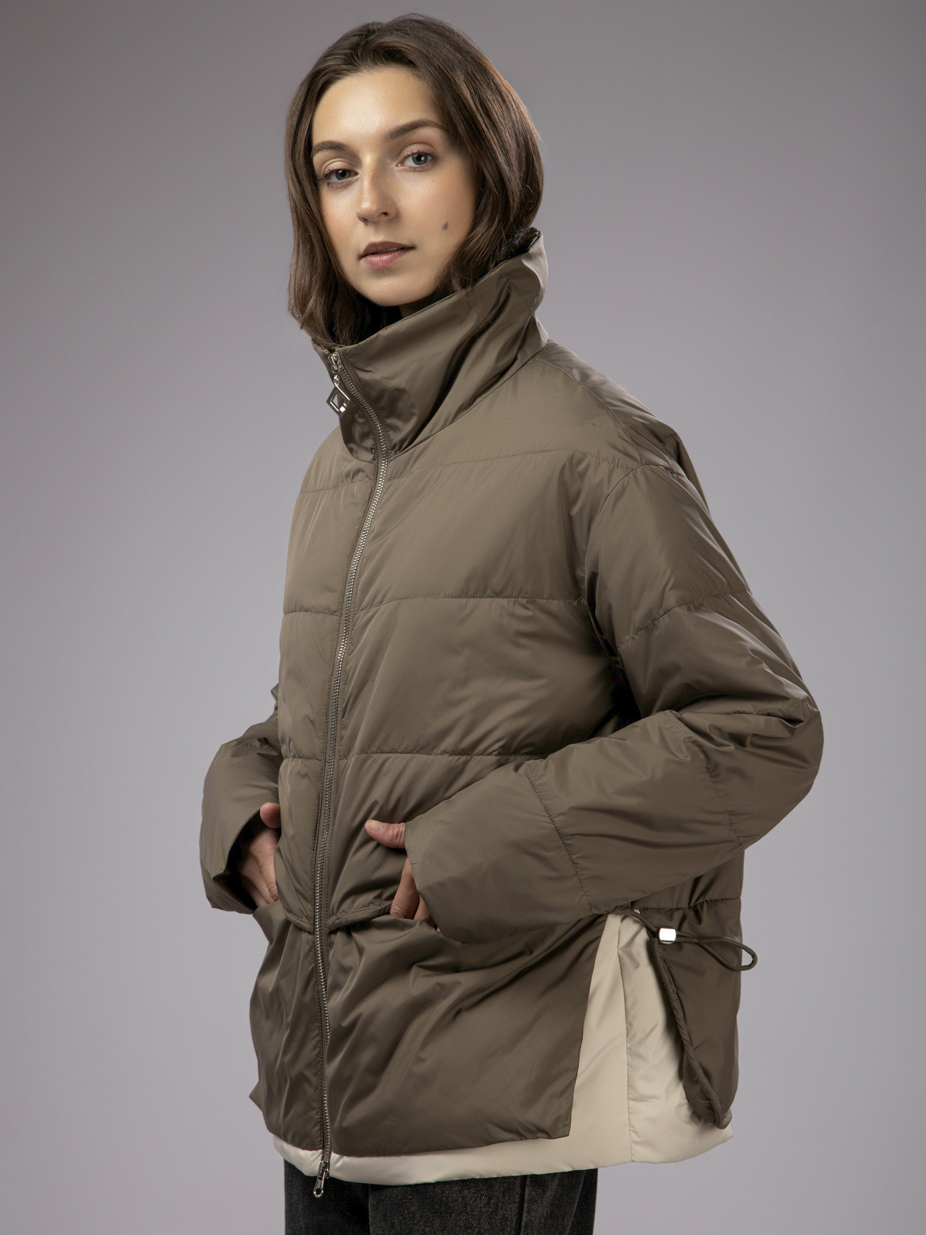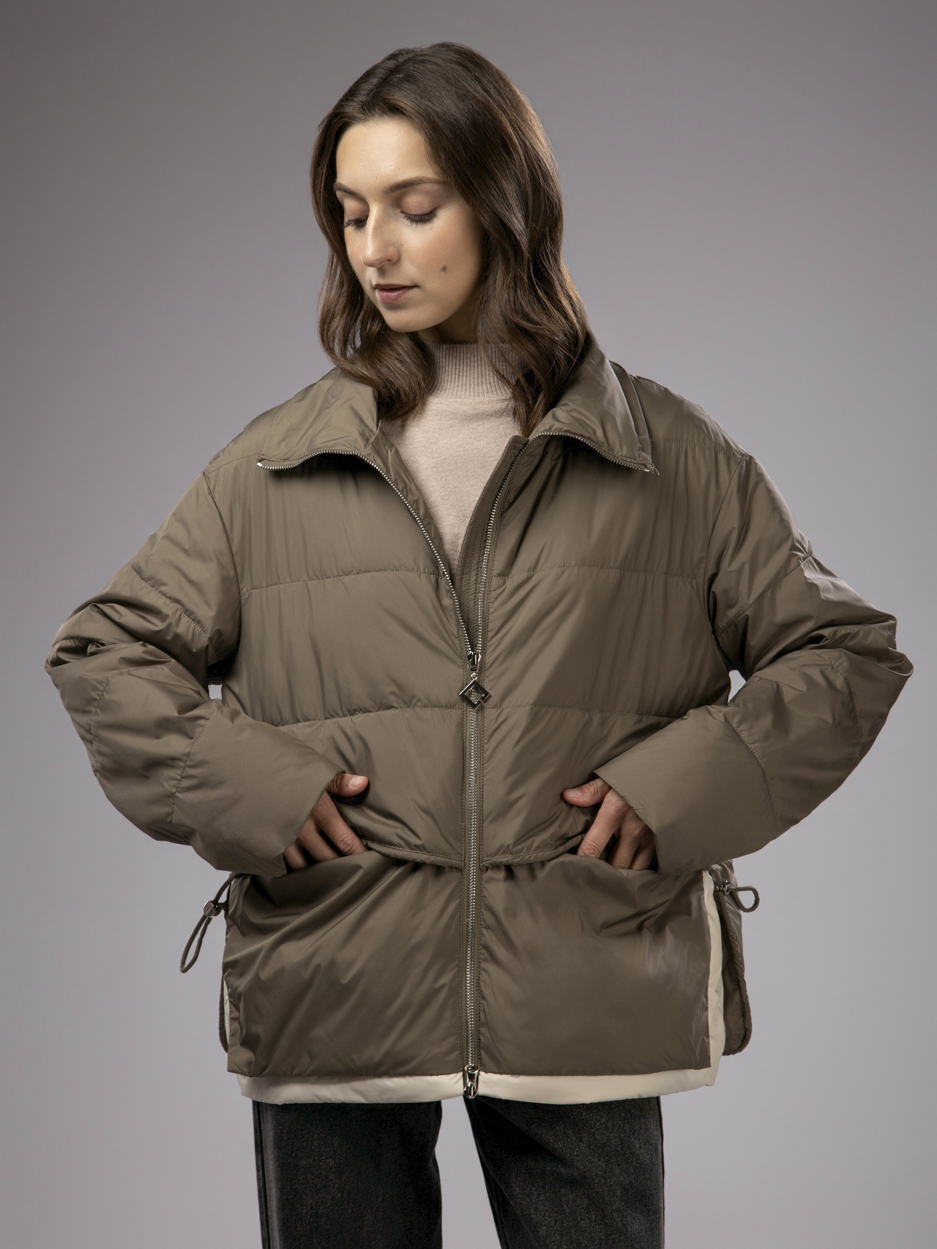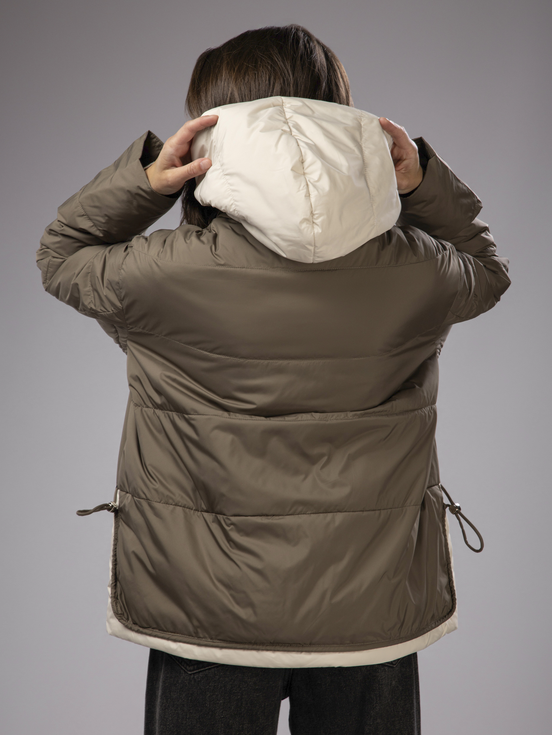 Куртка демисезонная с капюшоном оверсайз арт. 2802-P200-Khaki-SWA1
