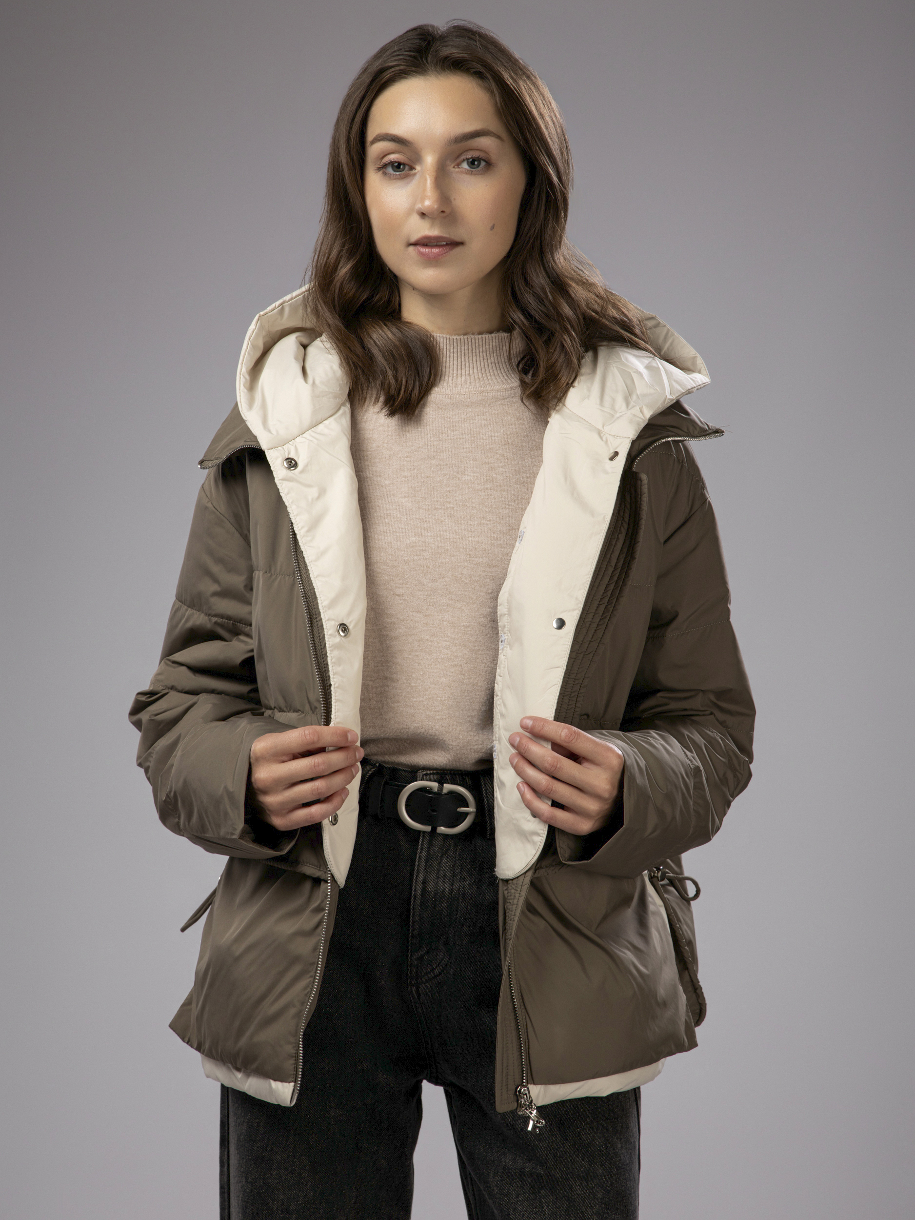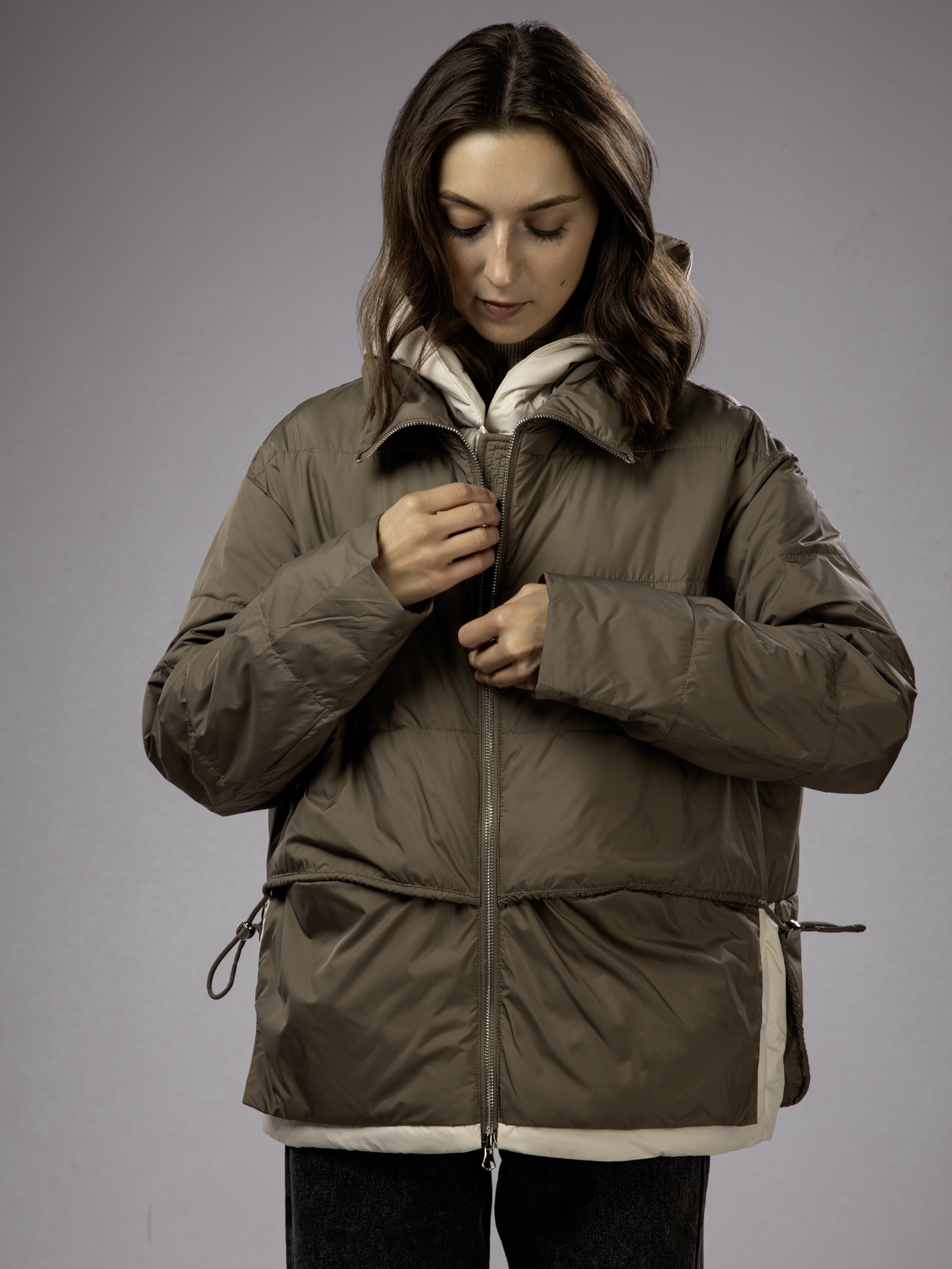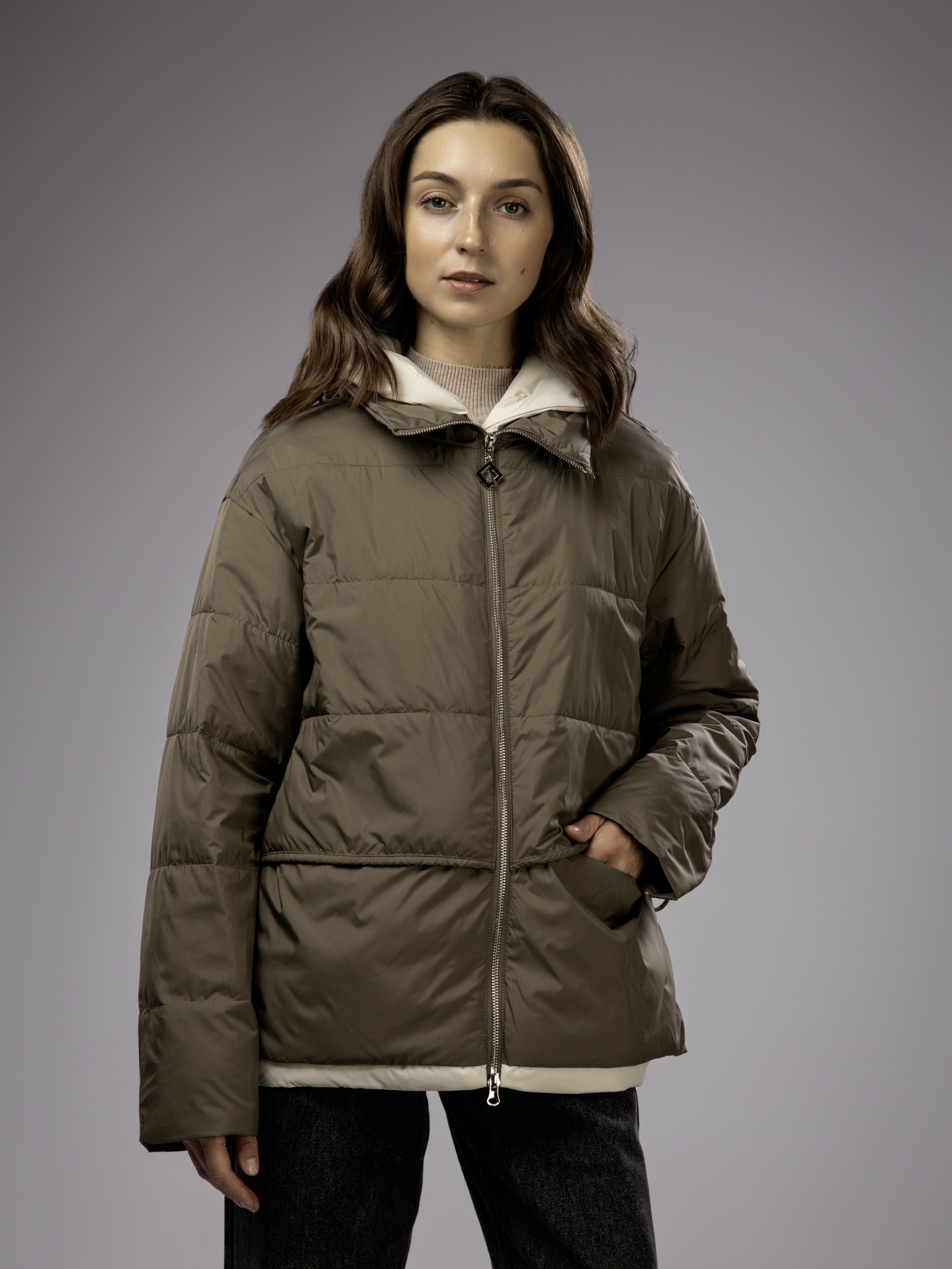 Куртка демисезонная с капюшоном оверсайз арт. 2802-P200-Khaki-SWA1