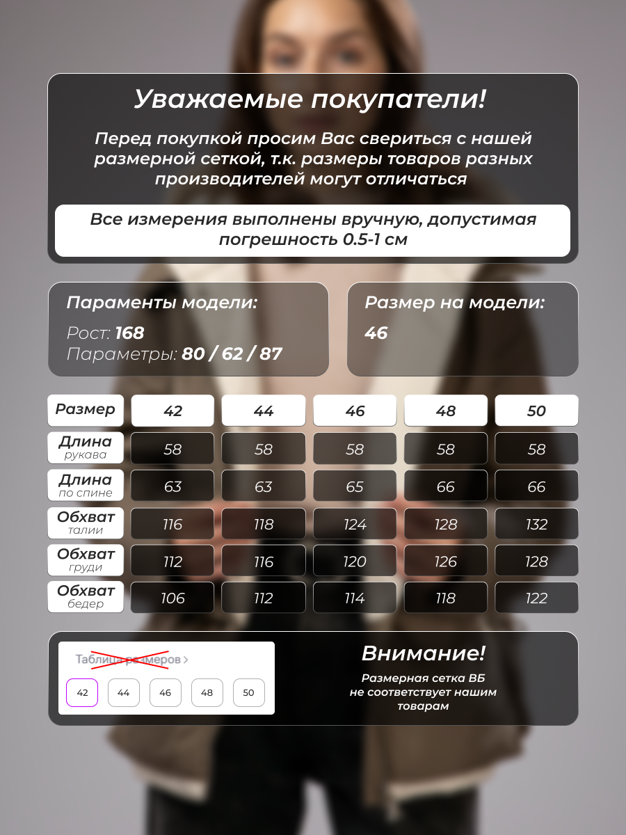 Параметры модели на фото (ОГ-ОТ-ОБ)